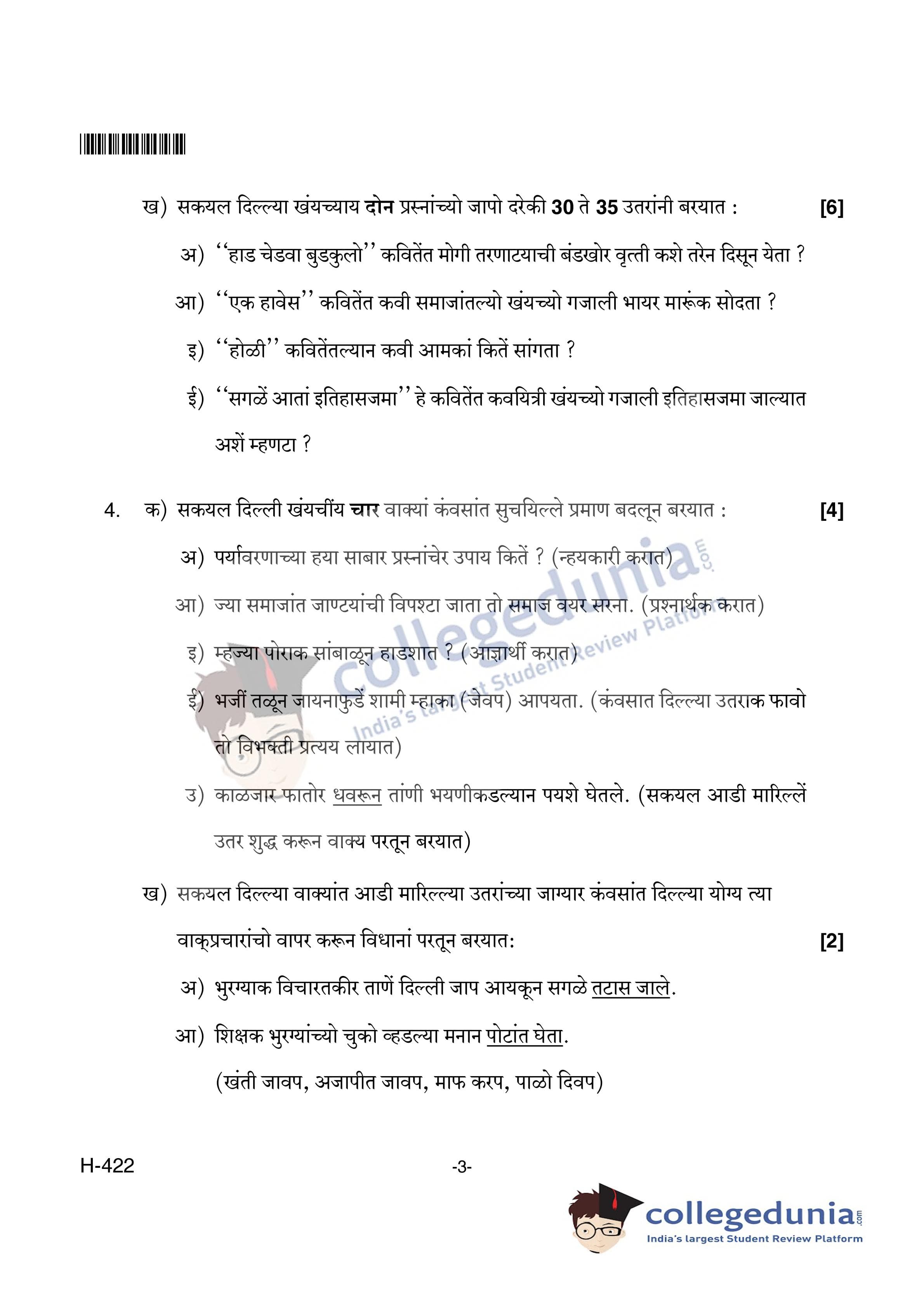 Goa Board HSSC Konkani II Question Paper 2018 with Answer Key (March 19)