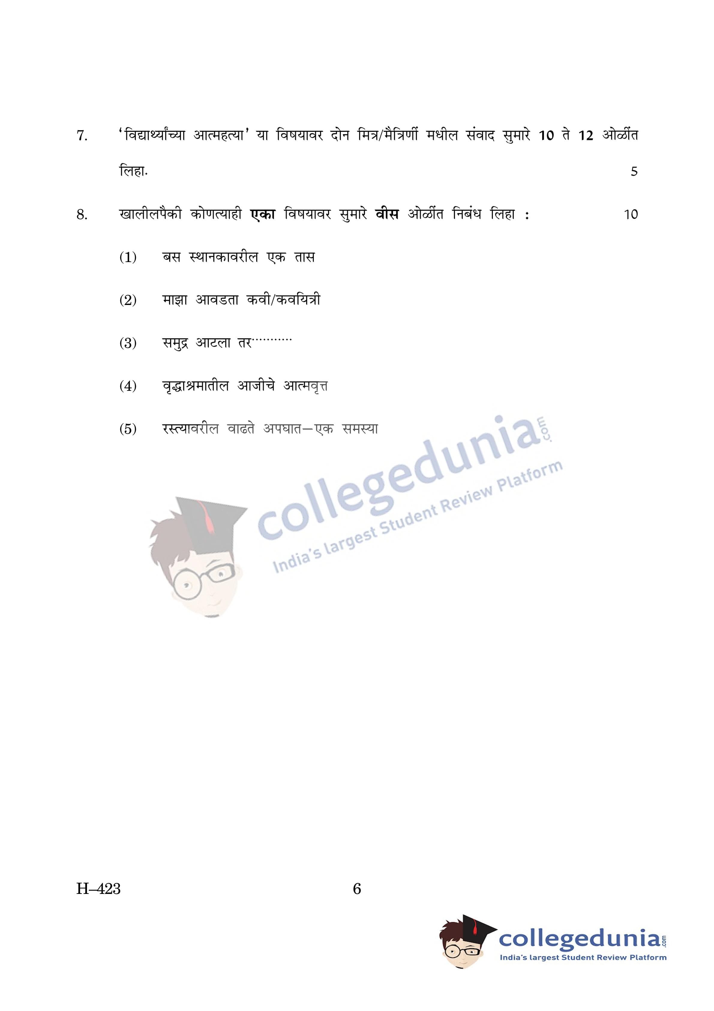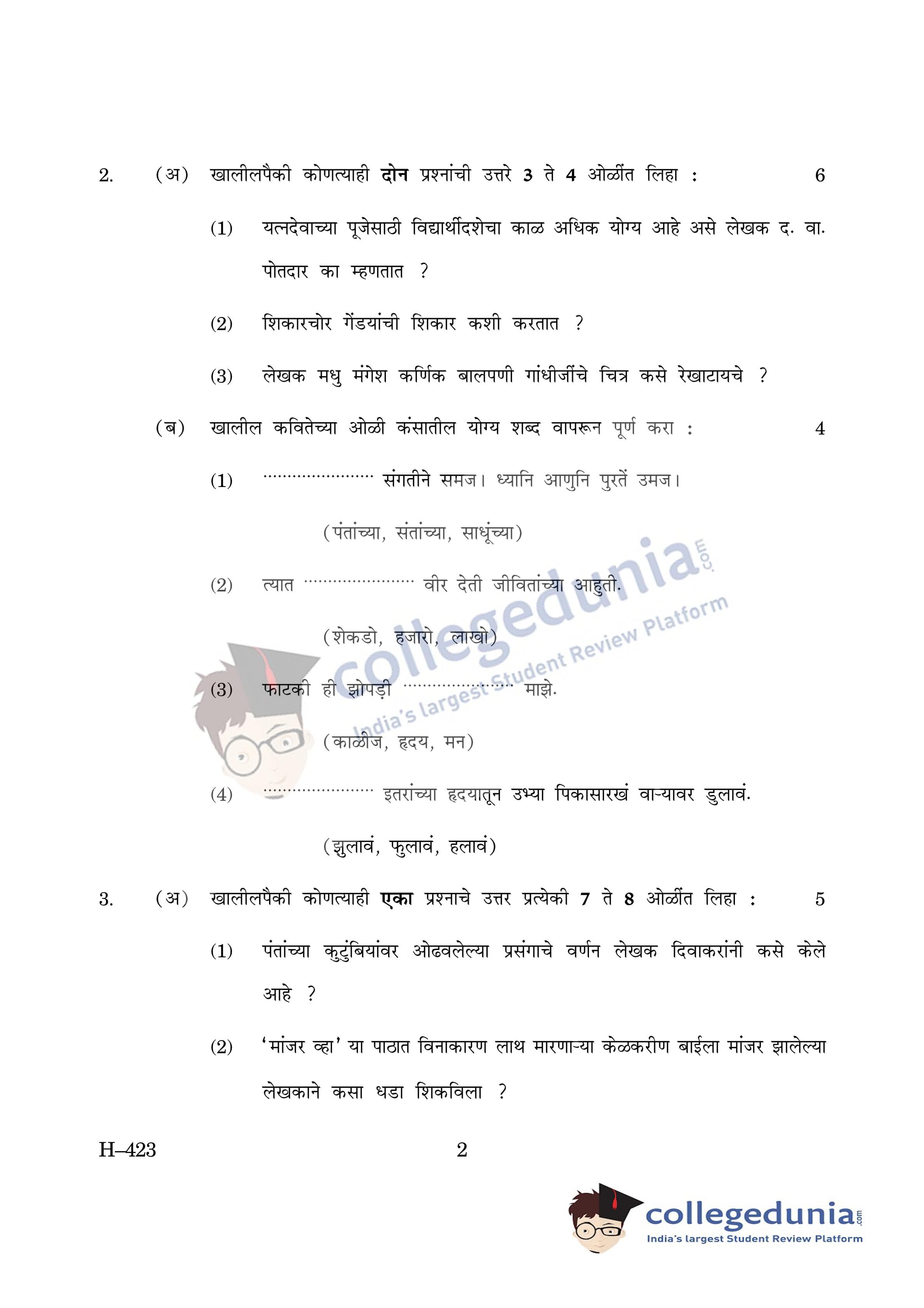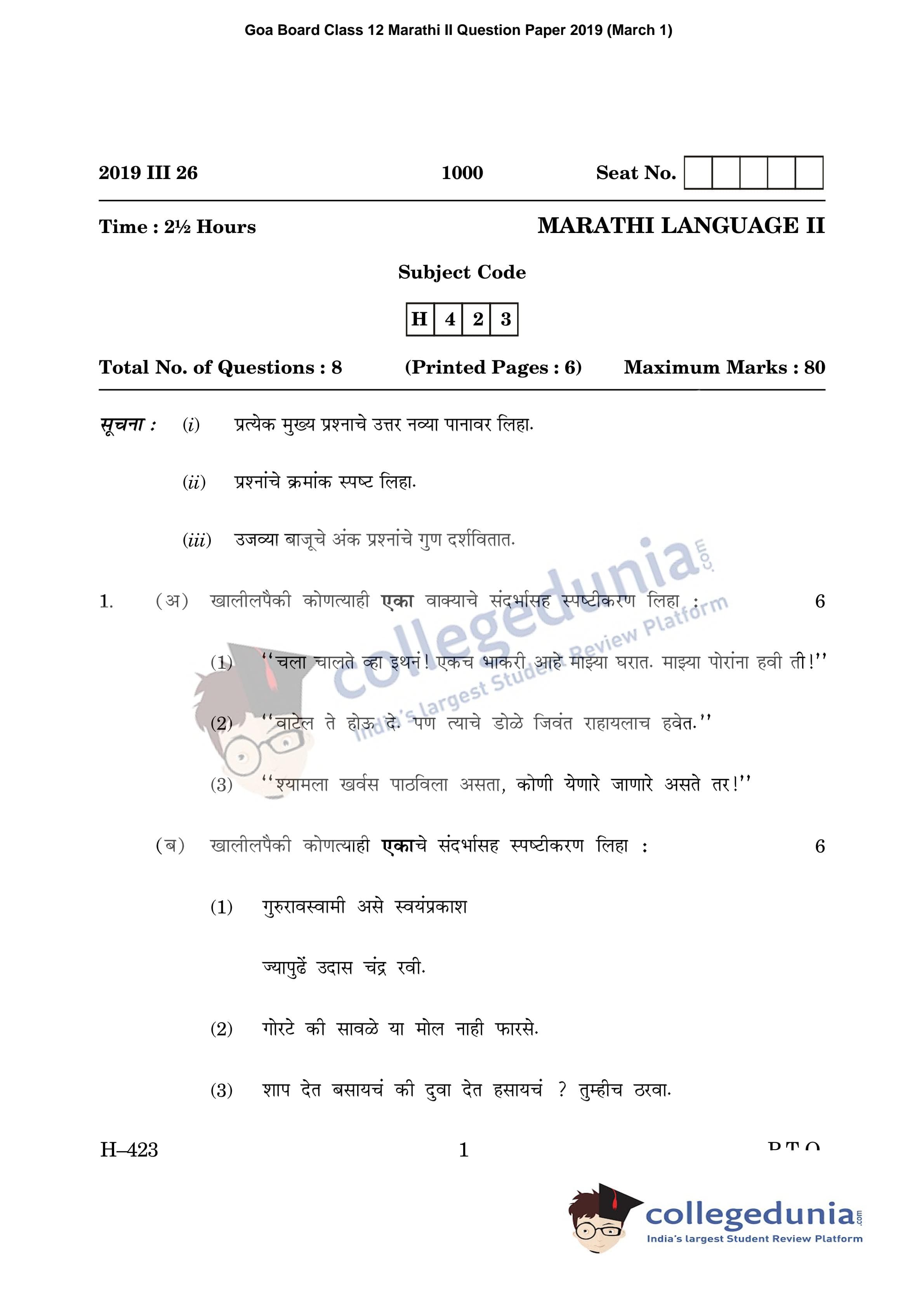 Goa Board HSSC Marathi II Question Paper 2019 with Answer Key (March 1)