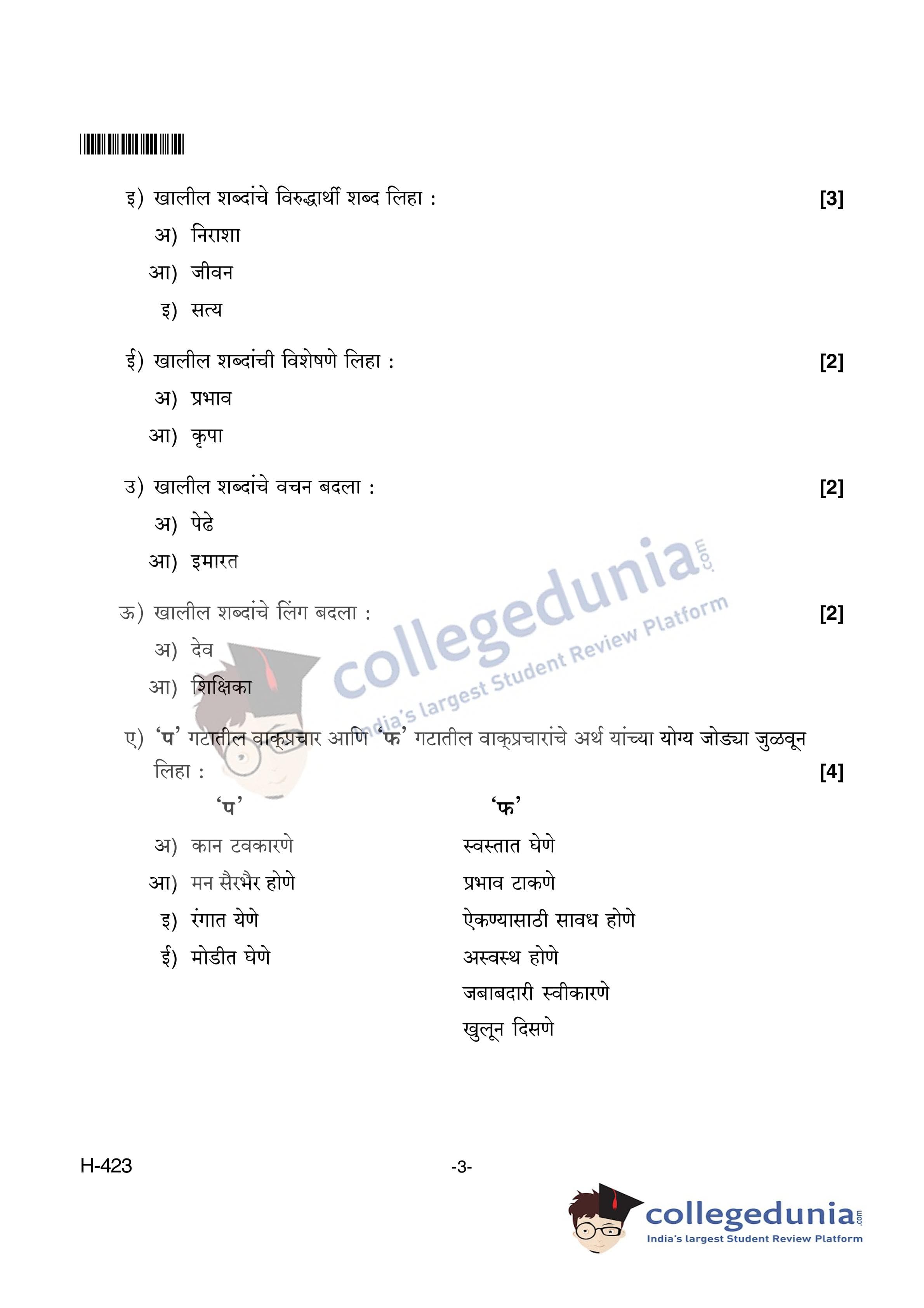 Goa Board HSSC Marathi II Supplementary Question Paper 2018 with Answer Key (June 14)