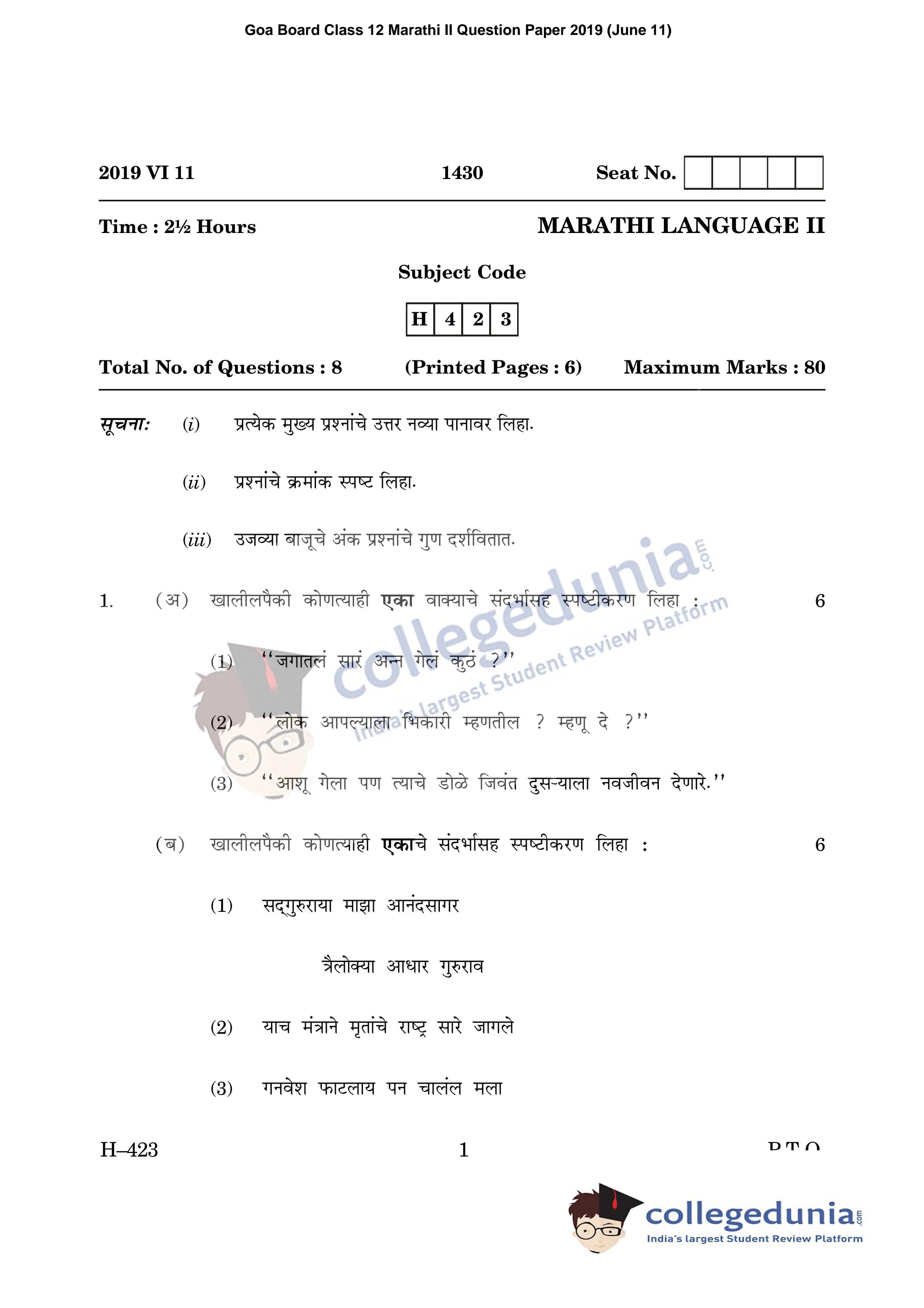 | Goa Board HSSC Marathi II Question Paper 2019 PDF | Goa Board HSSC Marathi II Answer Key 2019 PDF |
