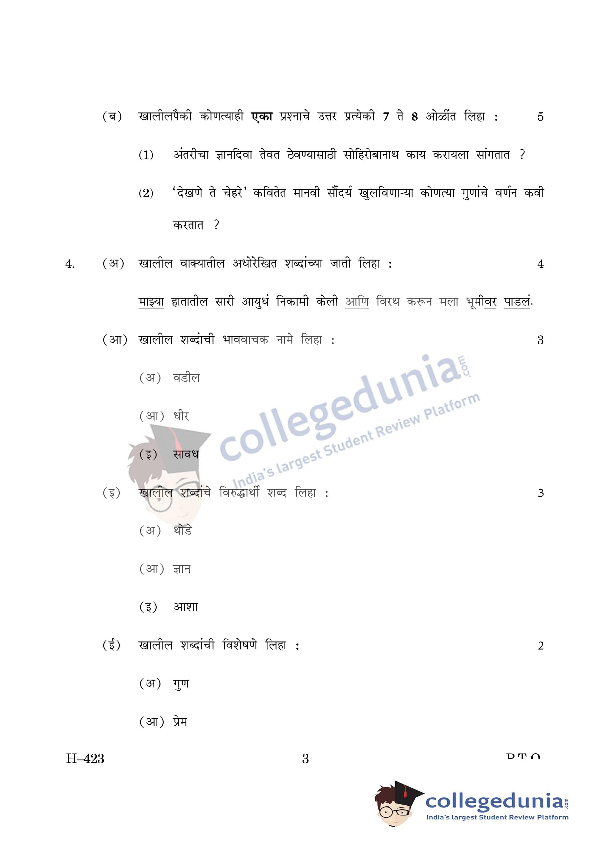 Goa Board HSSC Marathi II Supplementary Question Paper 2019 with Answer Key is available for download. The exam was conducted by the Goa Board of Secondary and Higher Secondary Education (GBSHSE) on June 11, 2019 in the Afternoon Session 2:30 PM to 5 PM. The medium of paper was Marathi. The Supplementary Question Paper comprised a total of 8 questions.