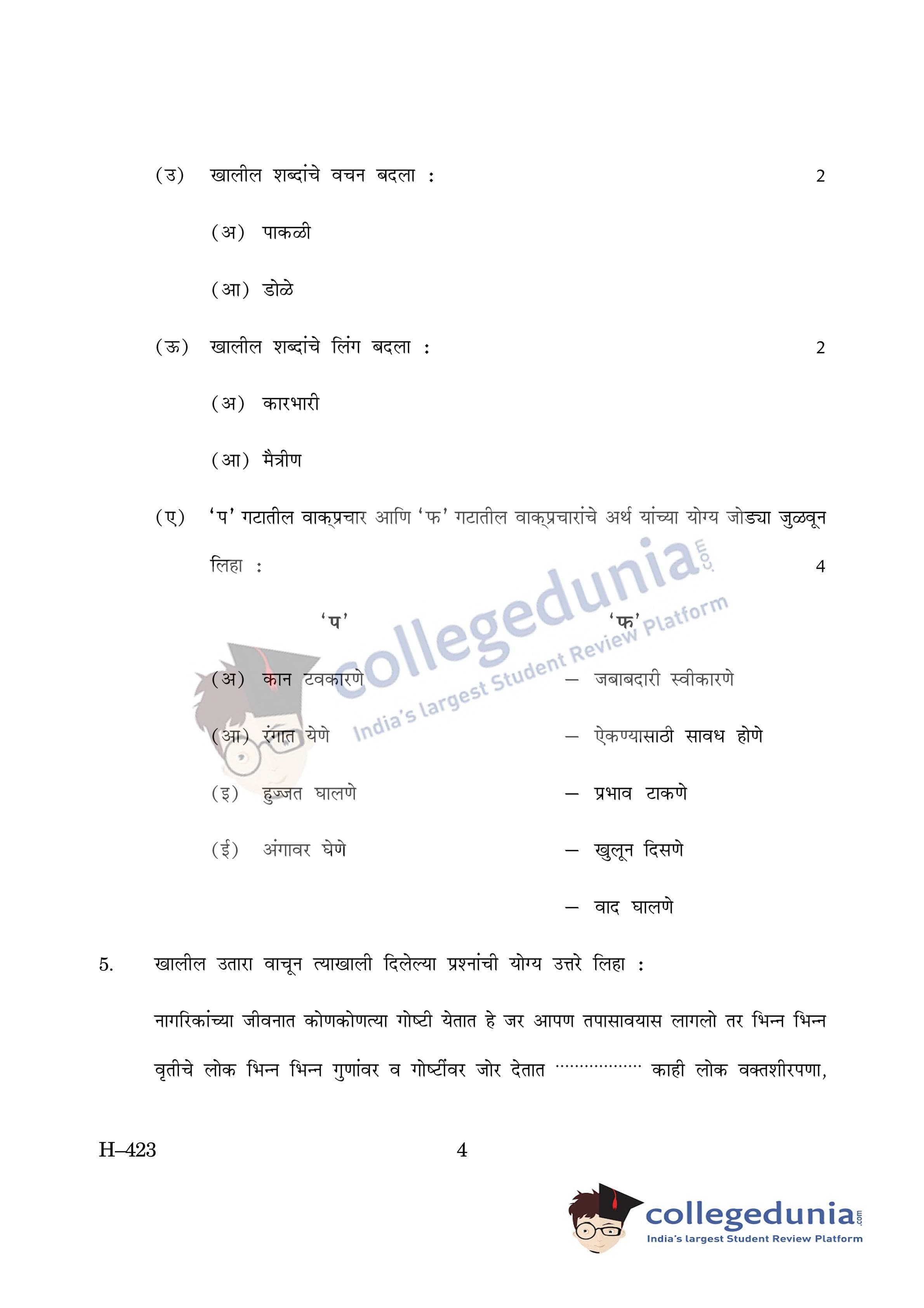 Goa Board HSSC Marathi II Supplementary Question Paper 2019 with Answer Key (June 11)