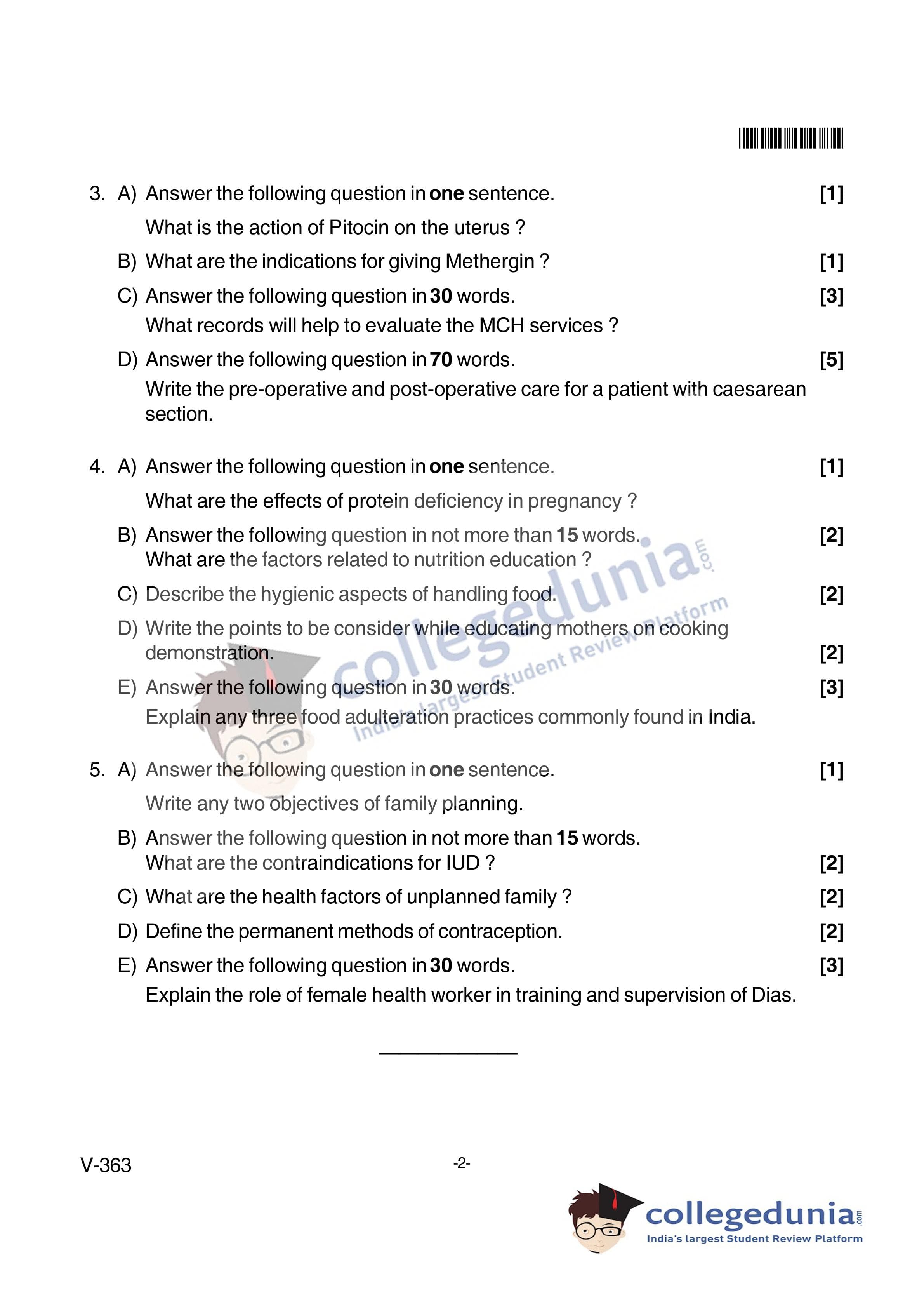 Goa Board HSSC Maternity and Child Health - II Question Paper 2018 with Answer Key (March 15)