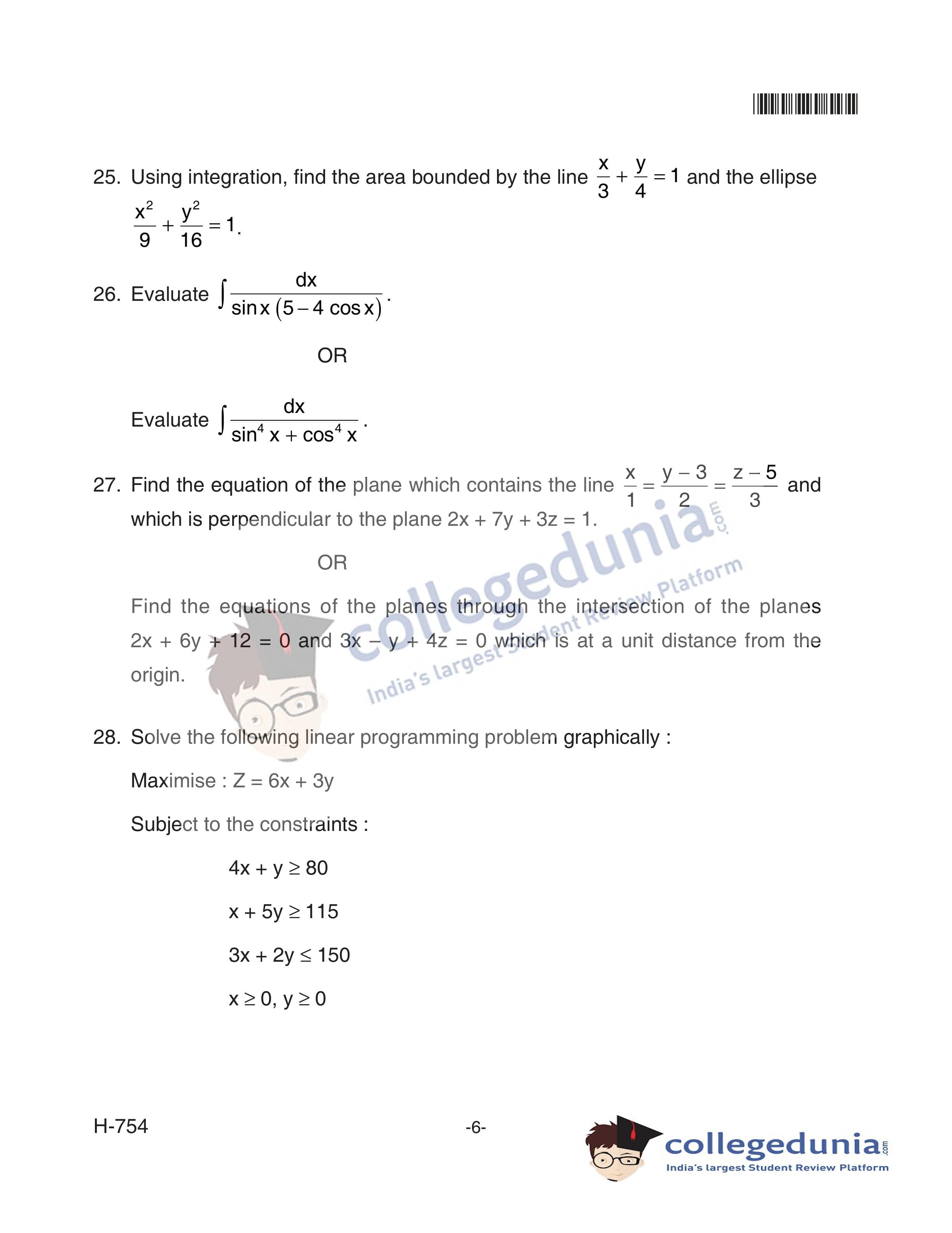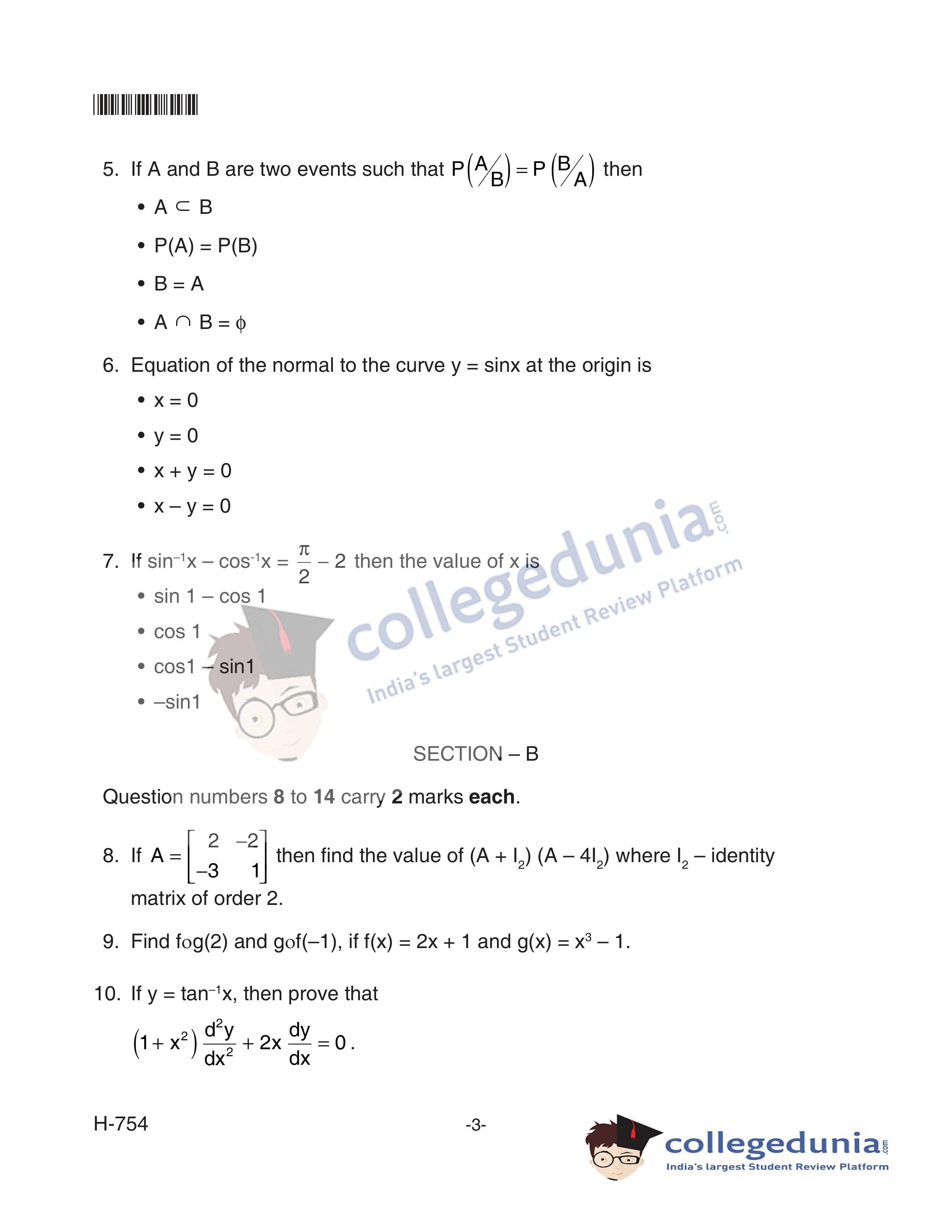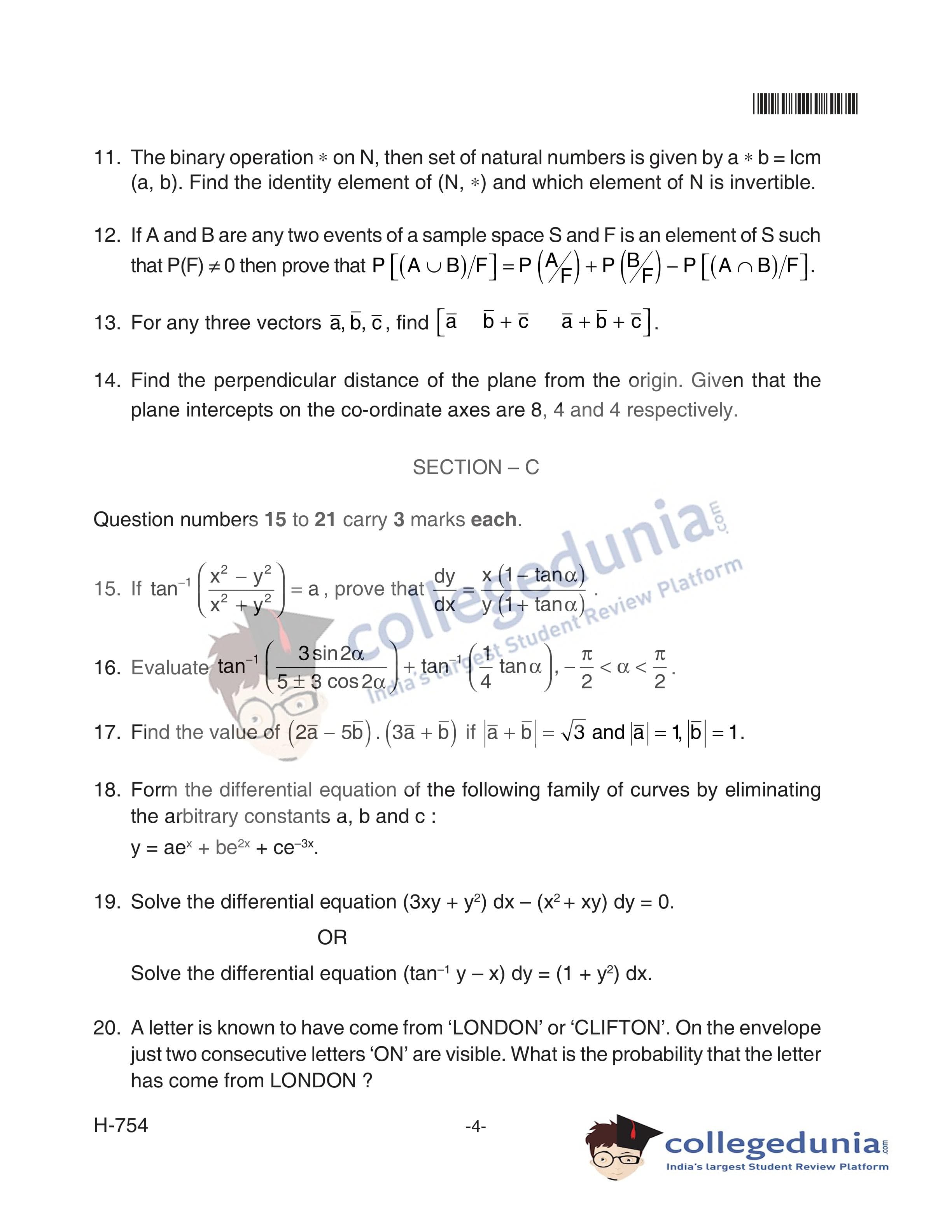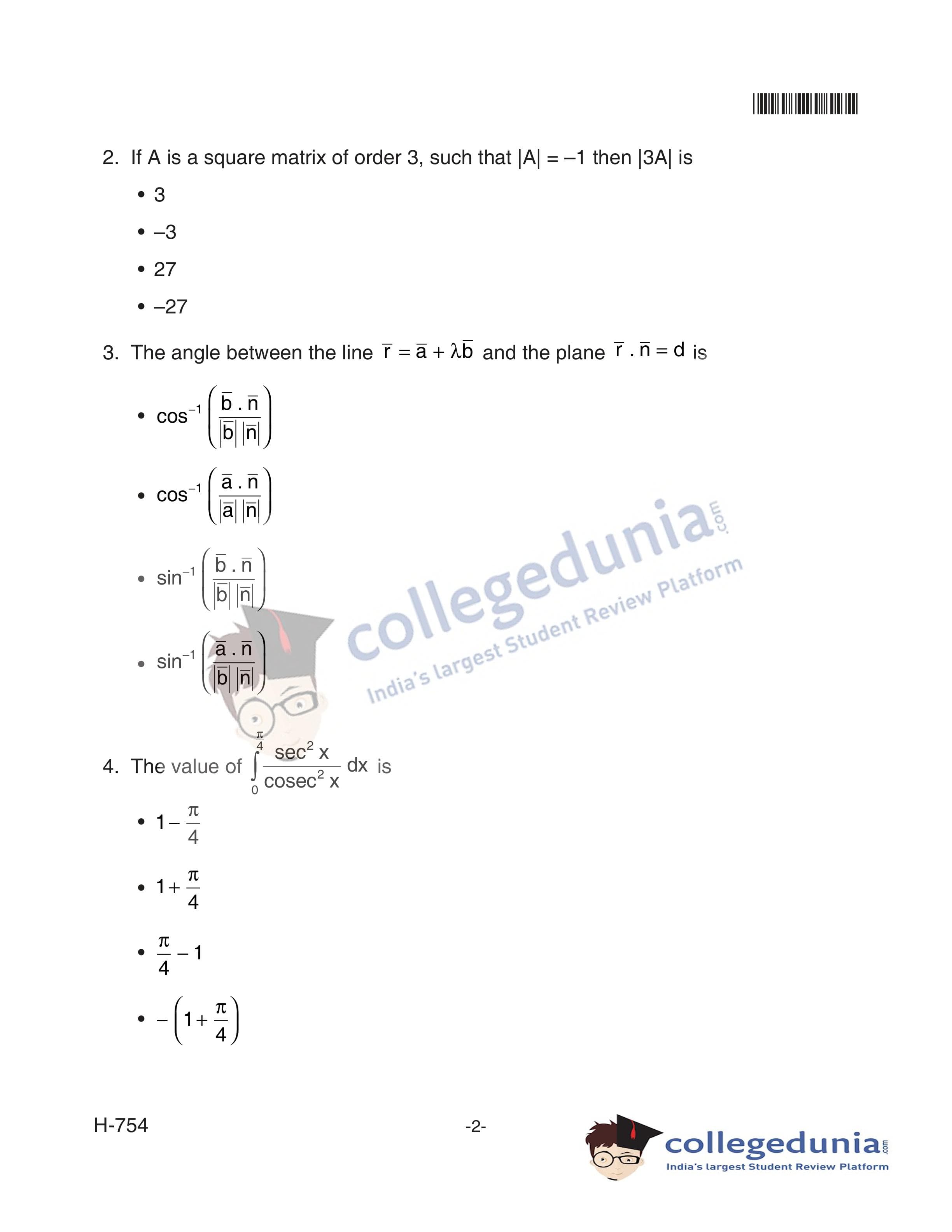 Goa Board HSSC Mathematics (New Pattern) Supplementary Question Paper 2018 with Answer Key (June 12)