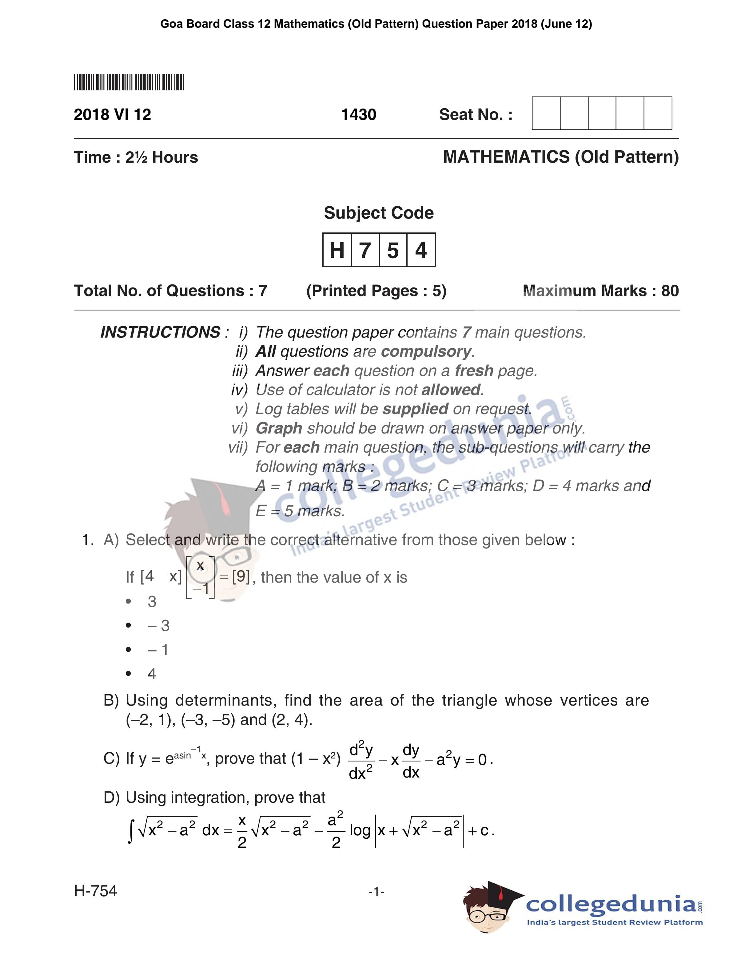 | Goa Board HSSC Mathematics (Old Pattern) Question Paper 2018 PDF | Goa Board HSSC Mathematics (Old Pattern) Answer Key 2018 PDF |