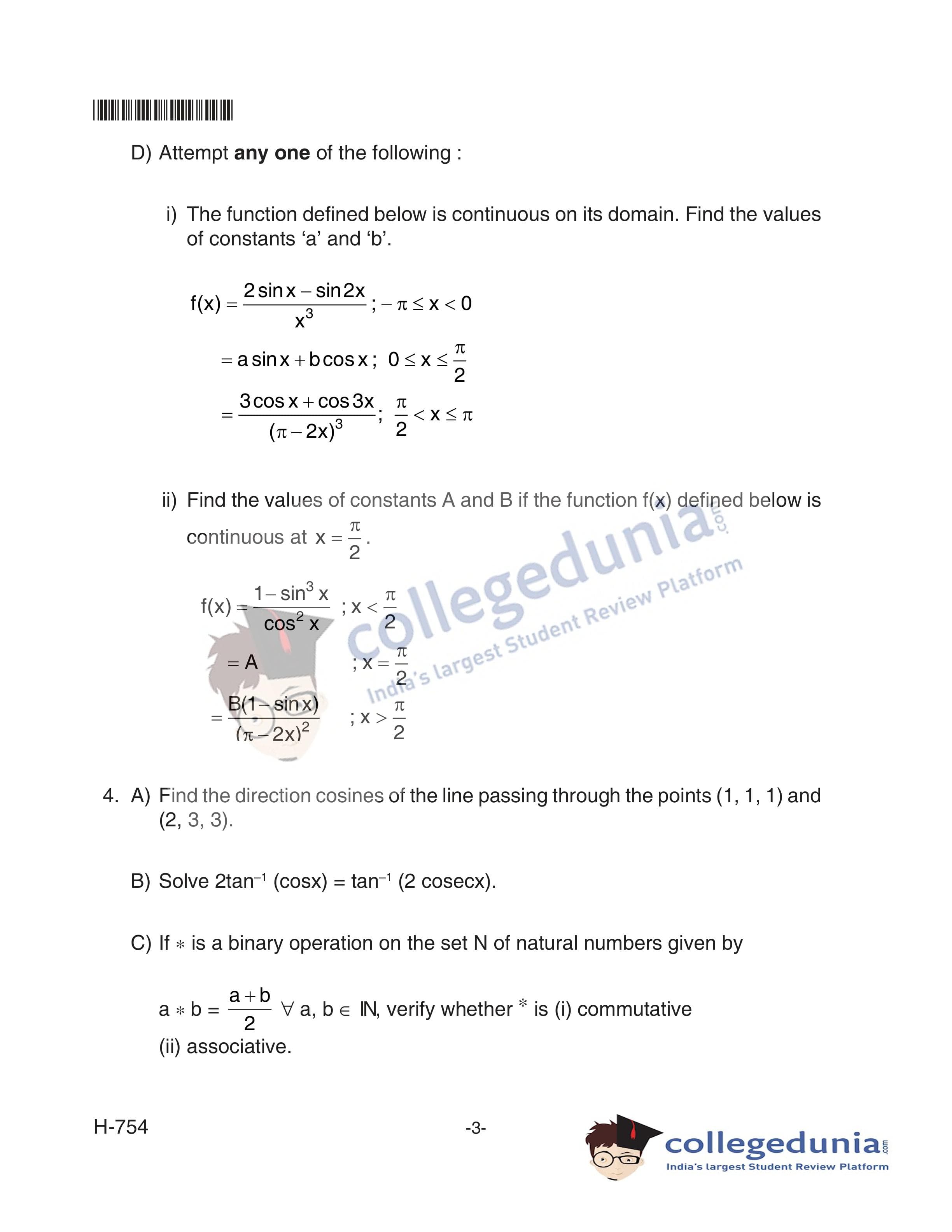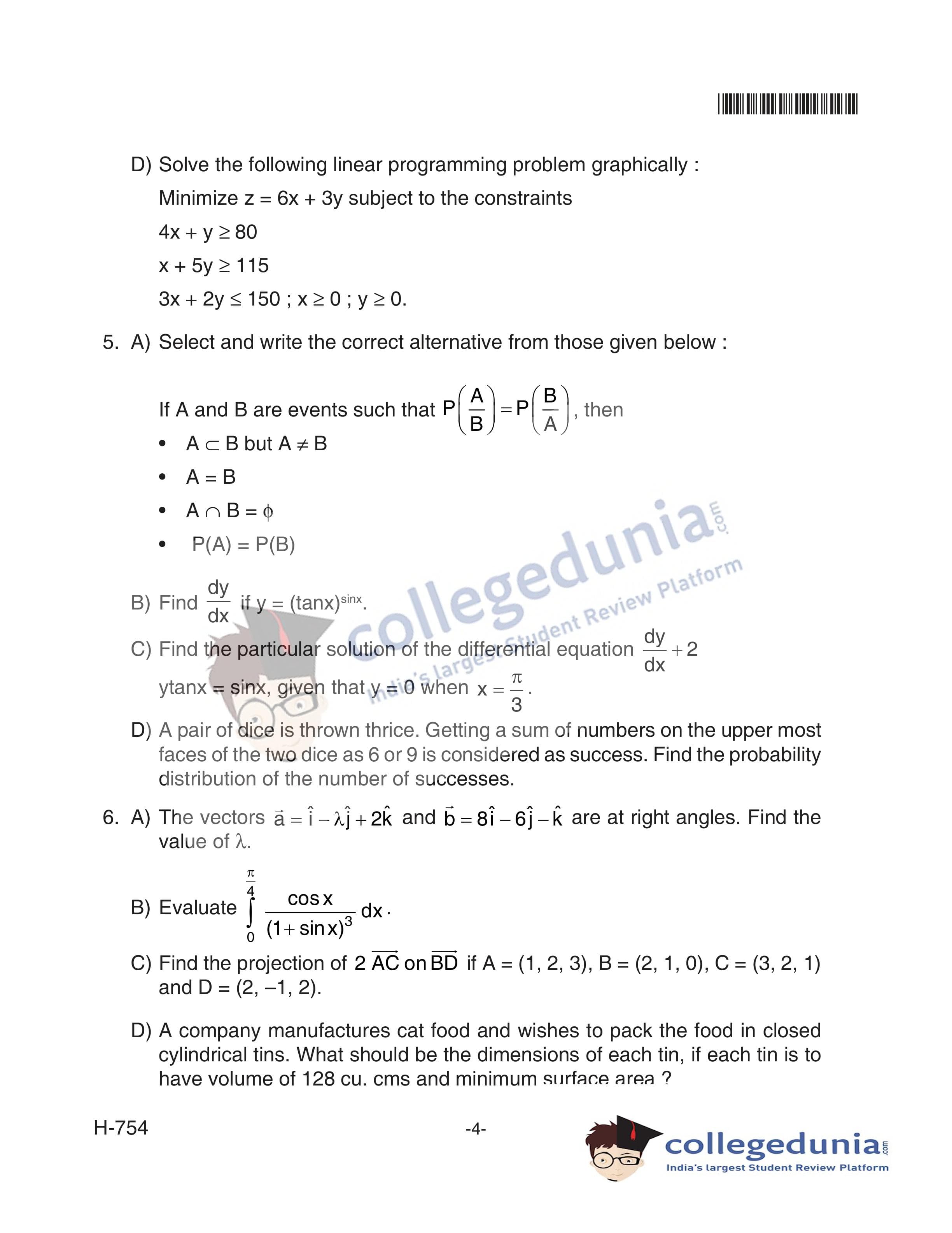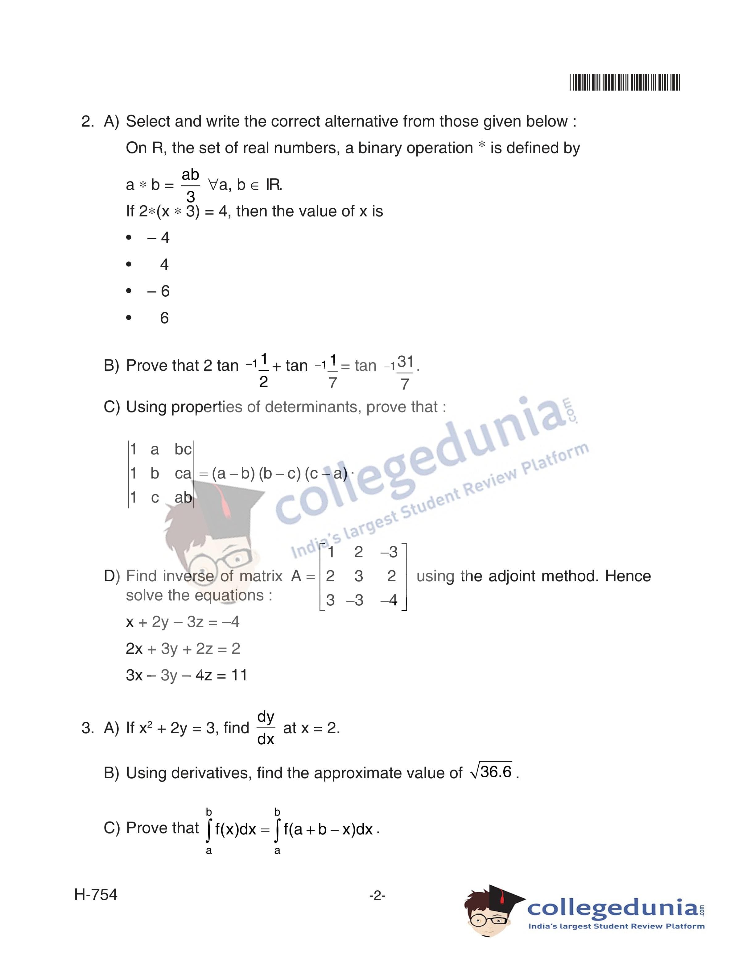Goa Board HSSC Mathematics (Old Pattern) Supplementary Question Paper 2018 with Answer Key (June 12)