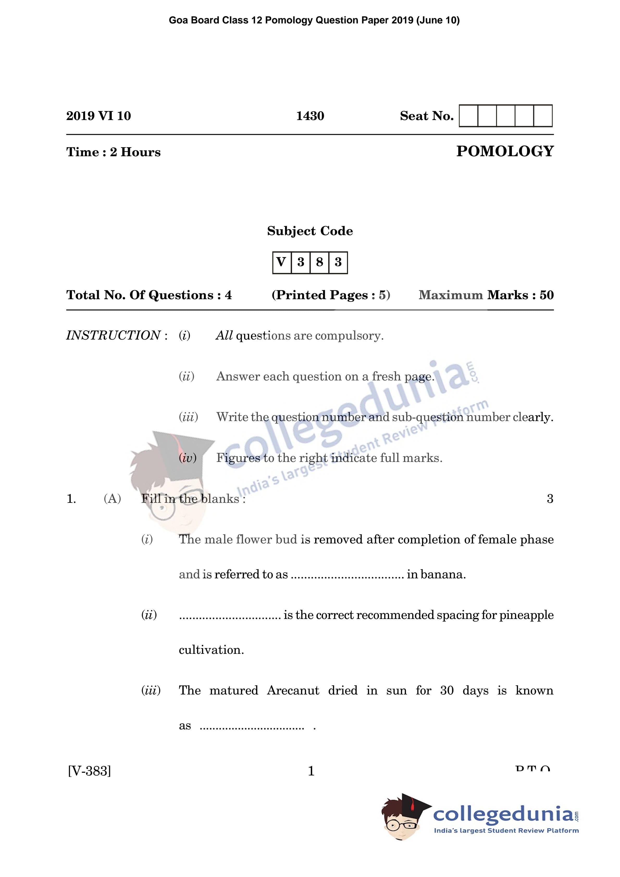 | Goa Board HSSC Pomology Question Paper 2019 PDF | Goa Board HSSC Pomology Answer Key 2019 PDF |