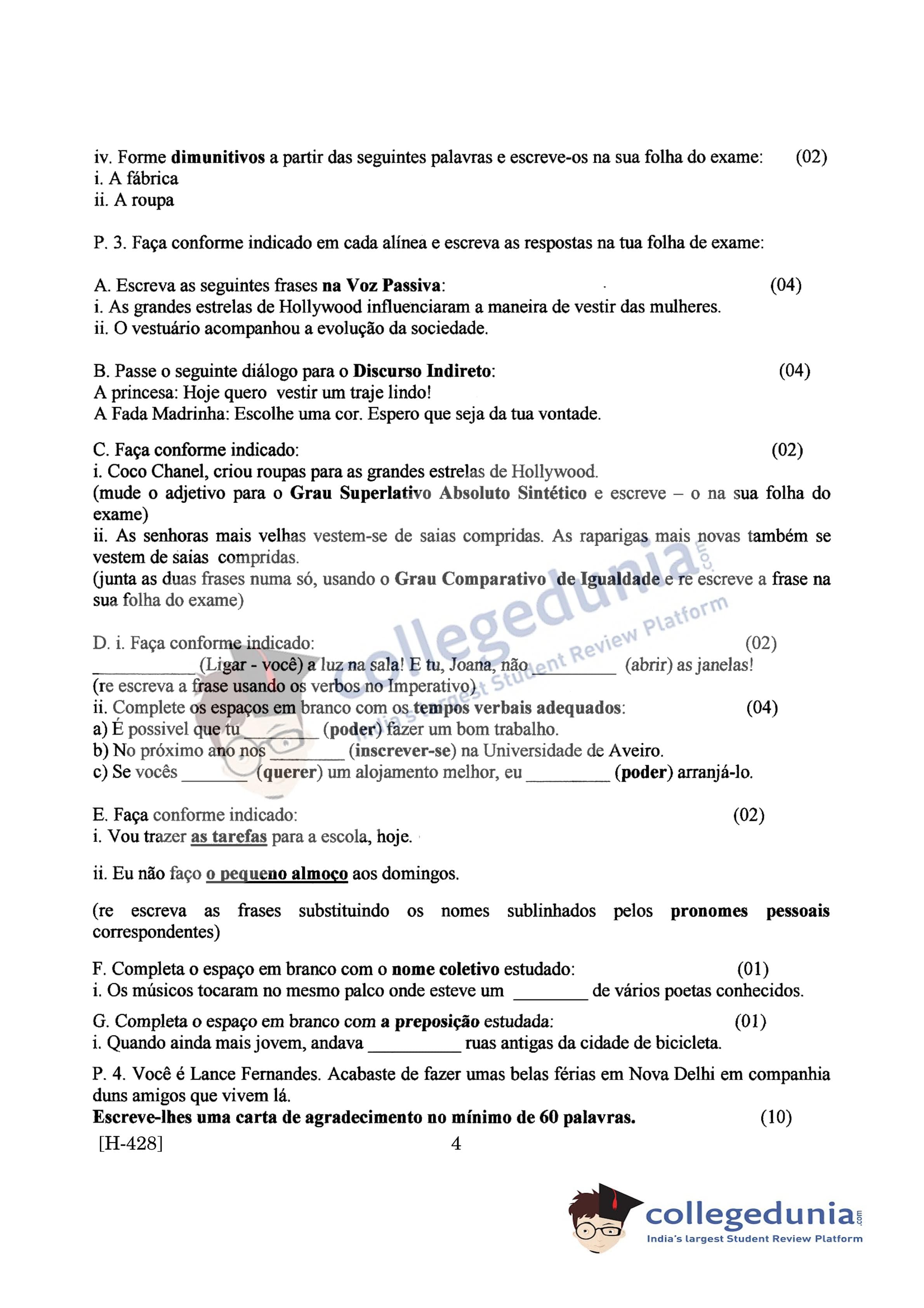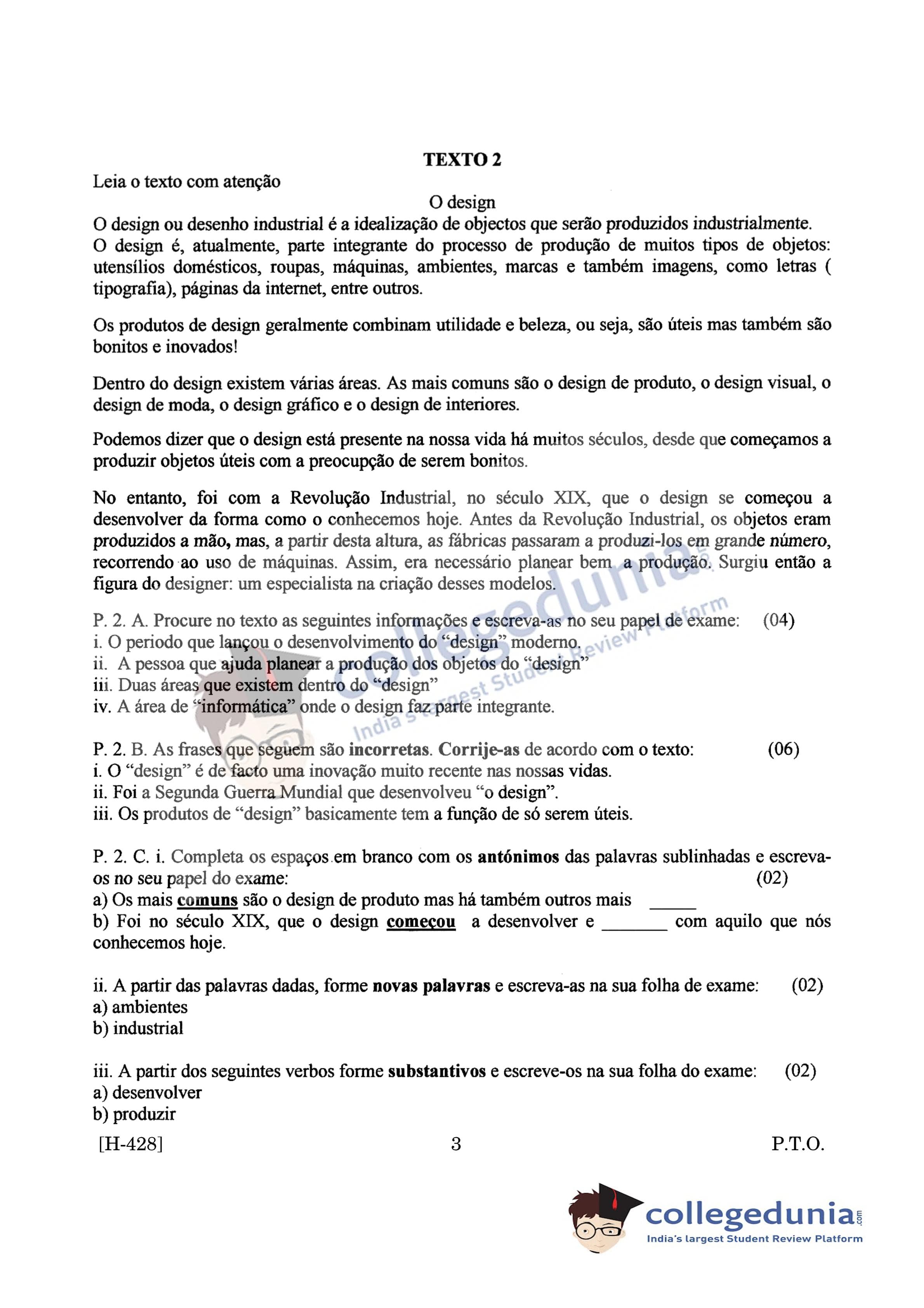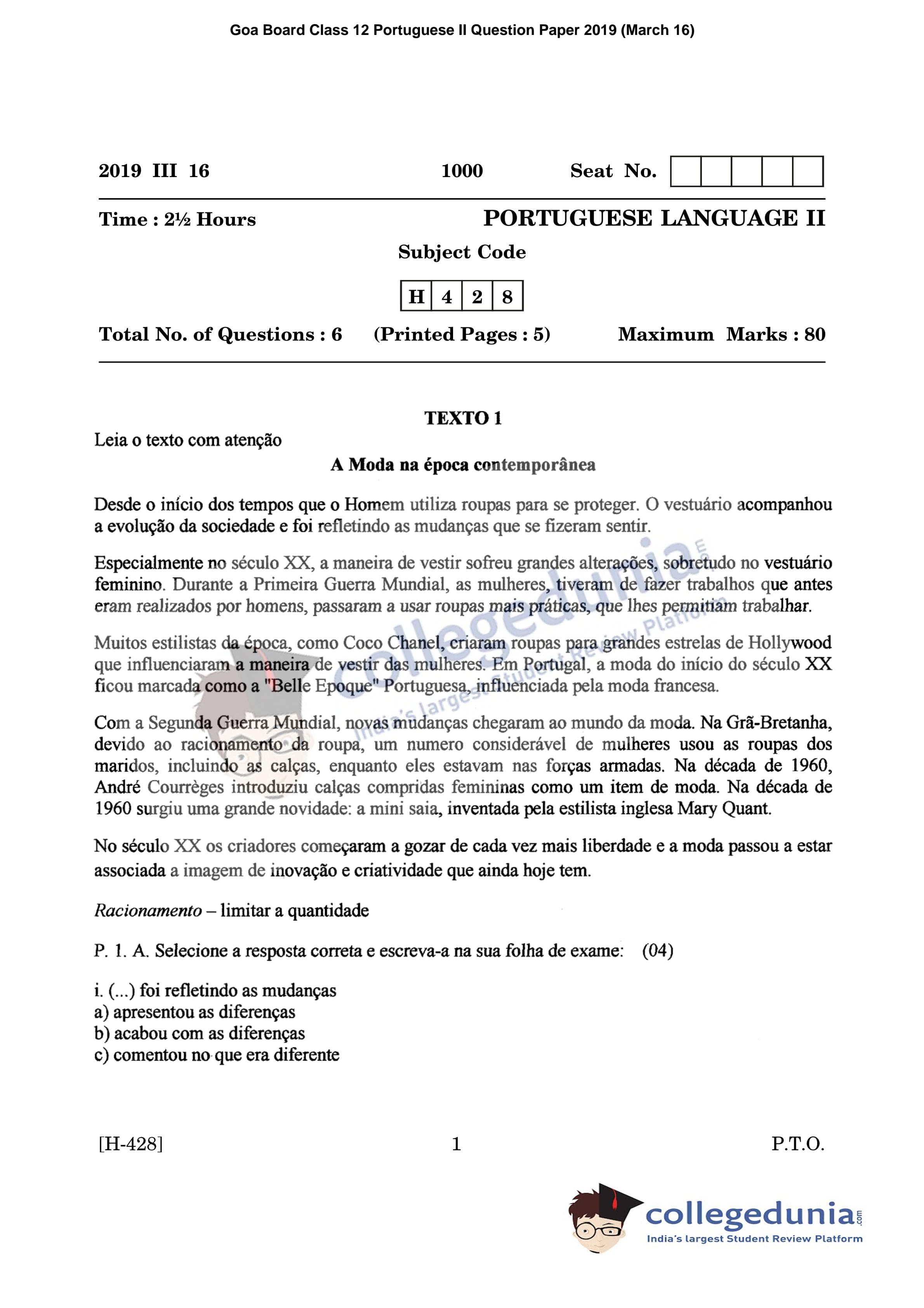 Goa Board HSSC Portuguese II Question Paper 2019 with Answer Key (March 16)