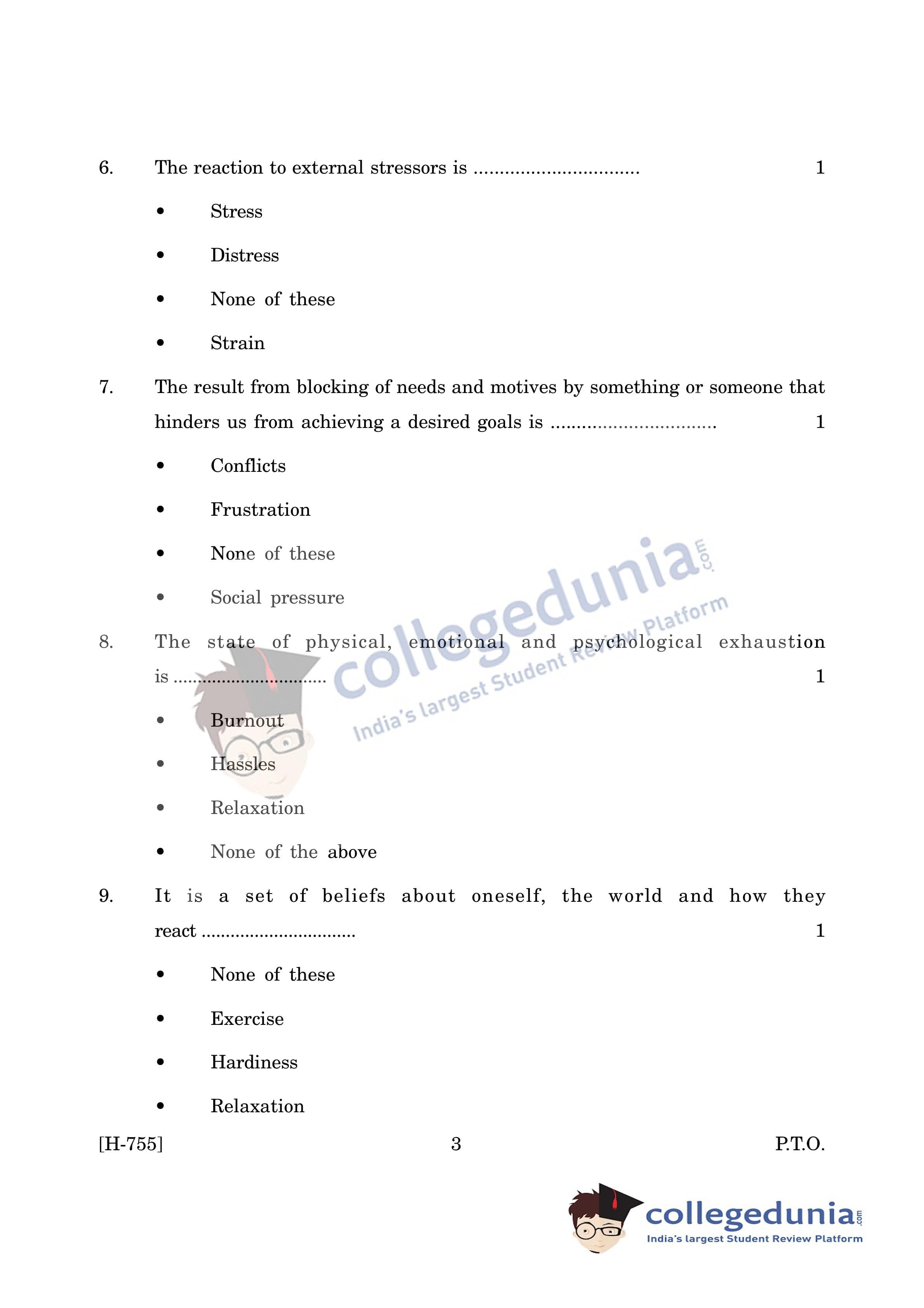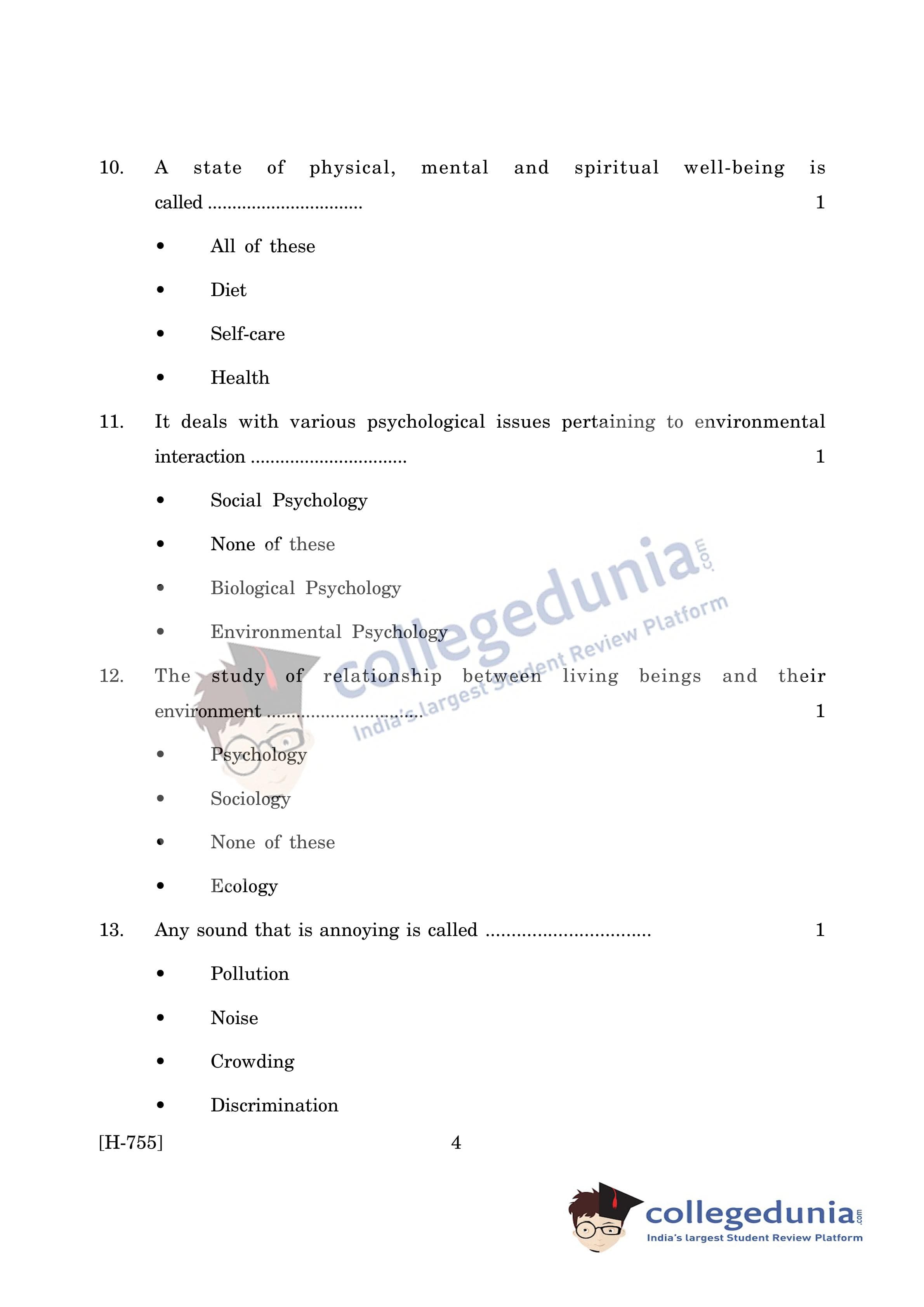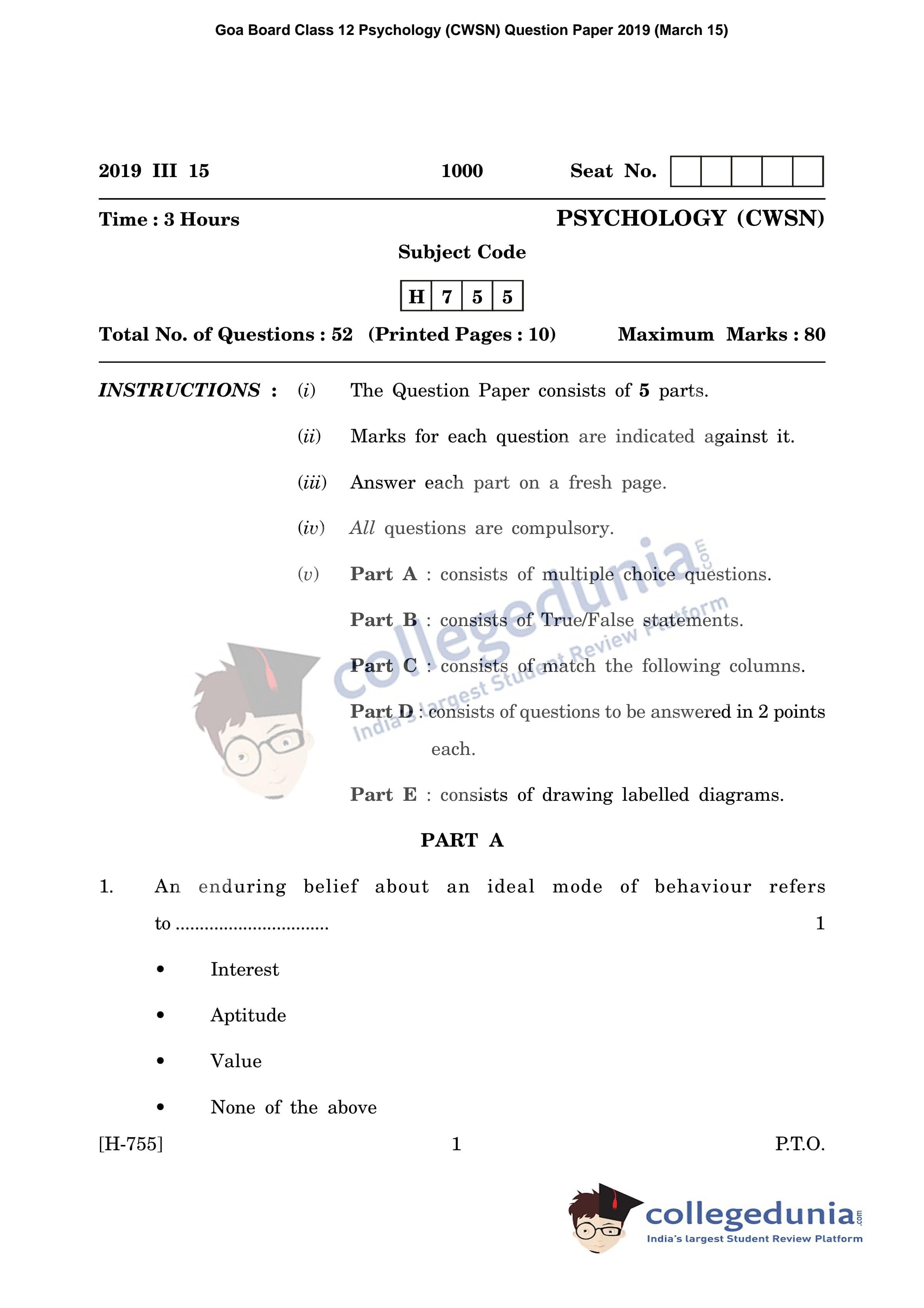 Goa Board HSSC Psychology (CWSN) Question Paper 2019 with Answer Key (March 15)