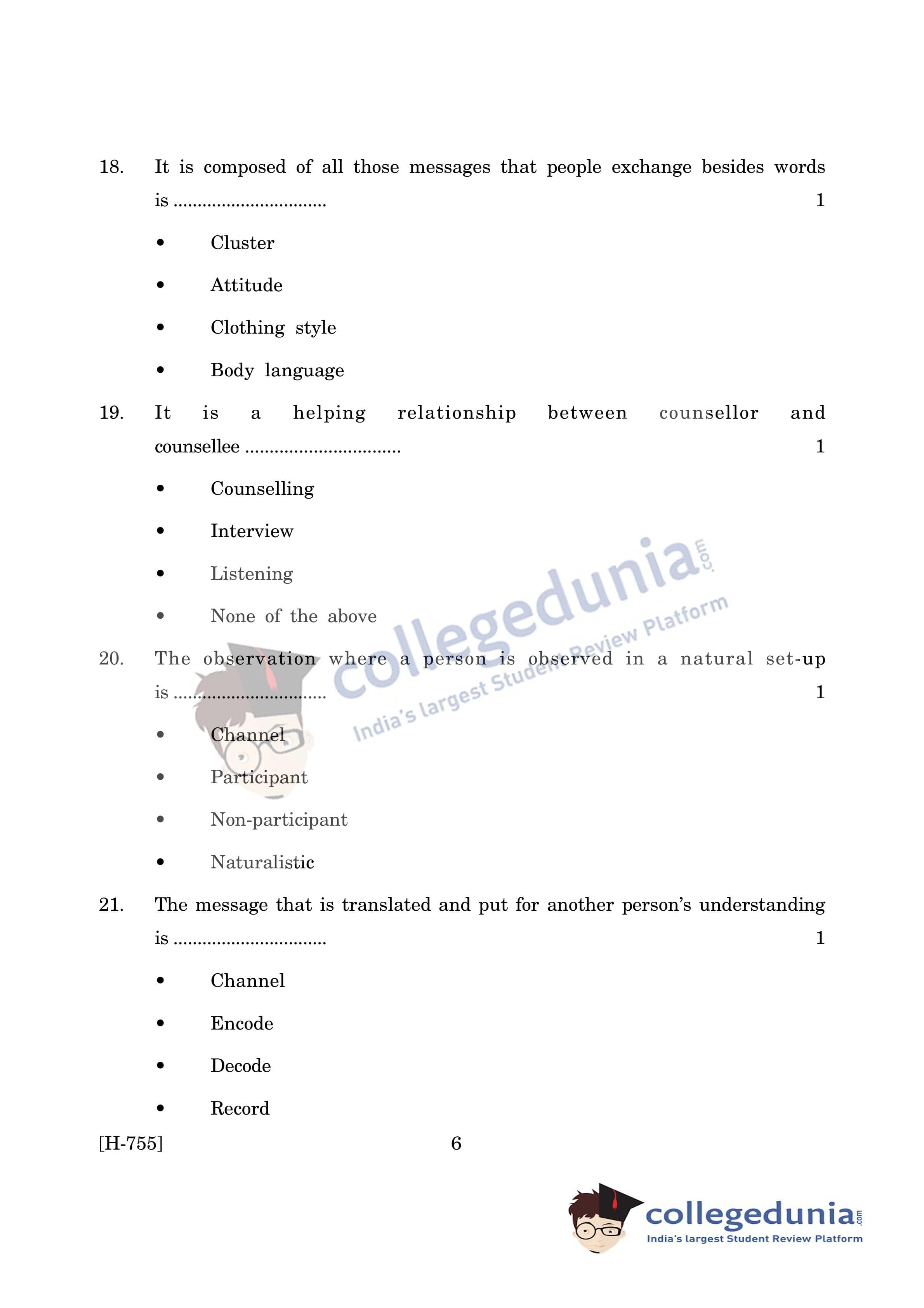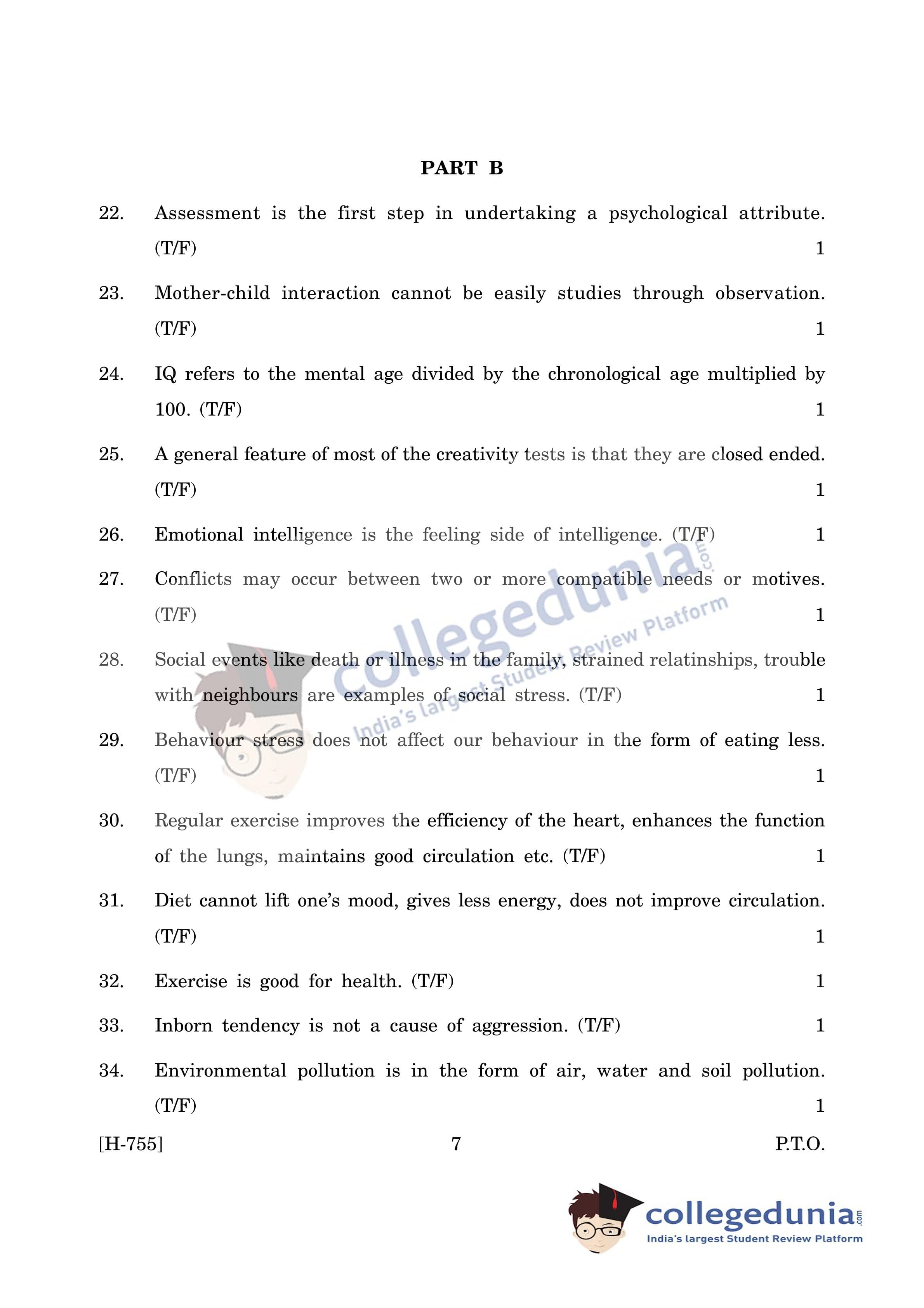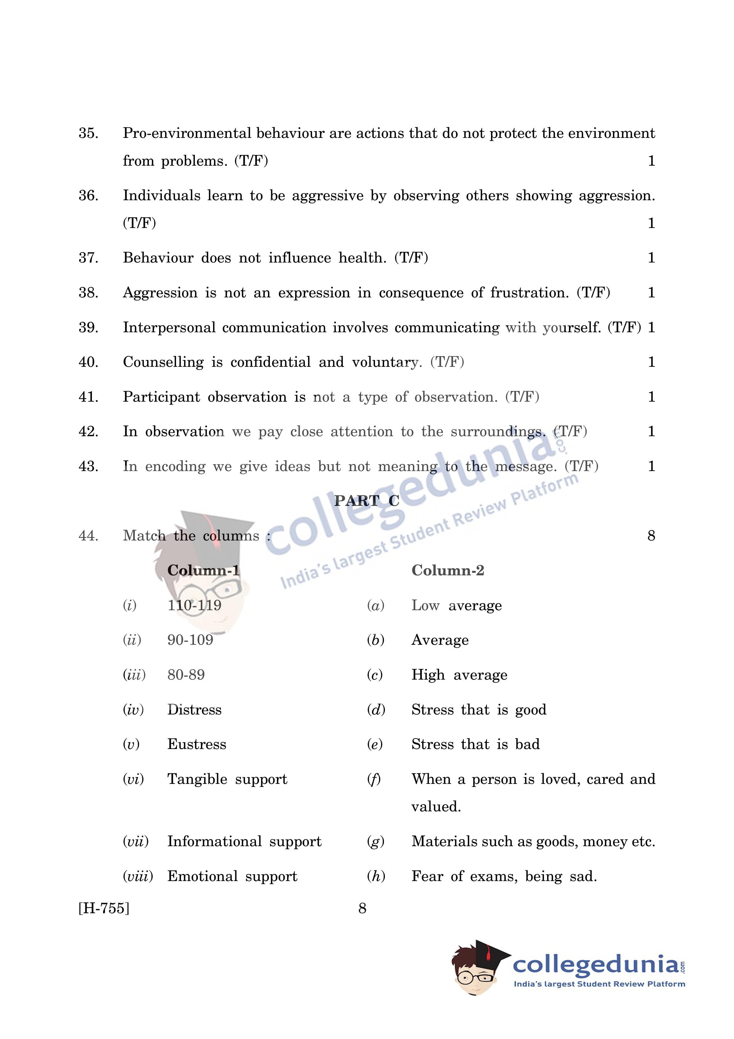Goa Board HSSC Psychology (CWSN) Question Paper 2019 with Answer Key (March 15)