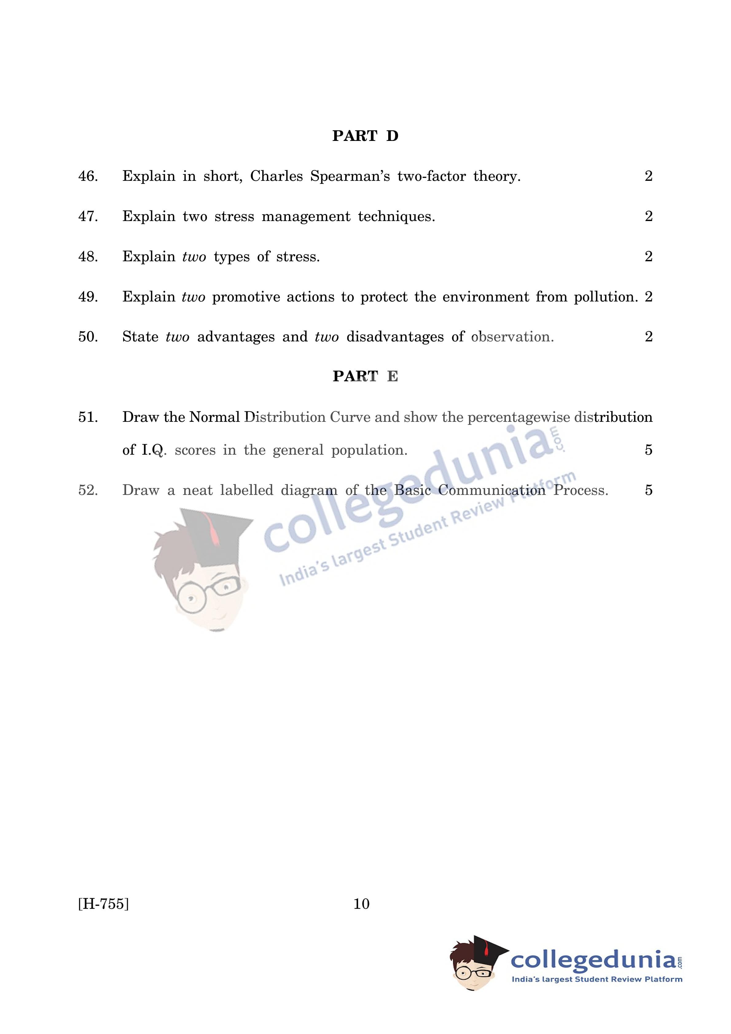 Goa Board HSSC Psychology (CWSN) Question Paper 2019 with Answer Key is available for download. The exam was conducted by the Goa Board of Secondary and Higher Secondary Education (GBSHSE) on March 15, 2019 in the Morning Session 10 AM to 1 PM. The medium of paper was English. The question paper comprised a total of 52 questions.