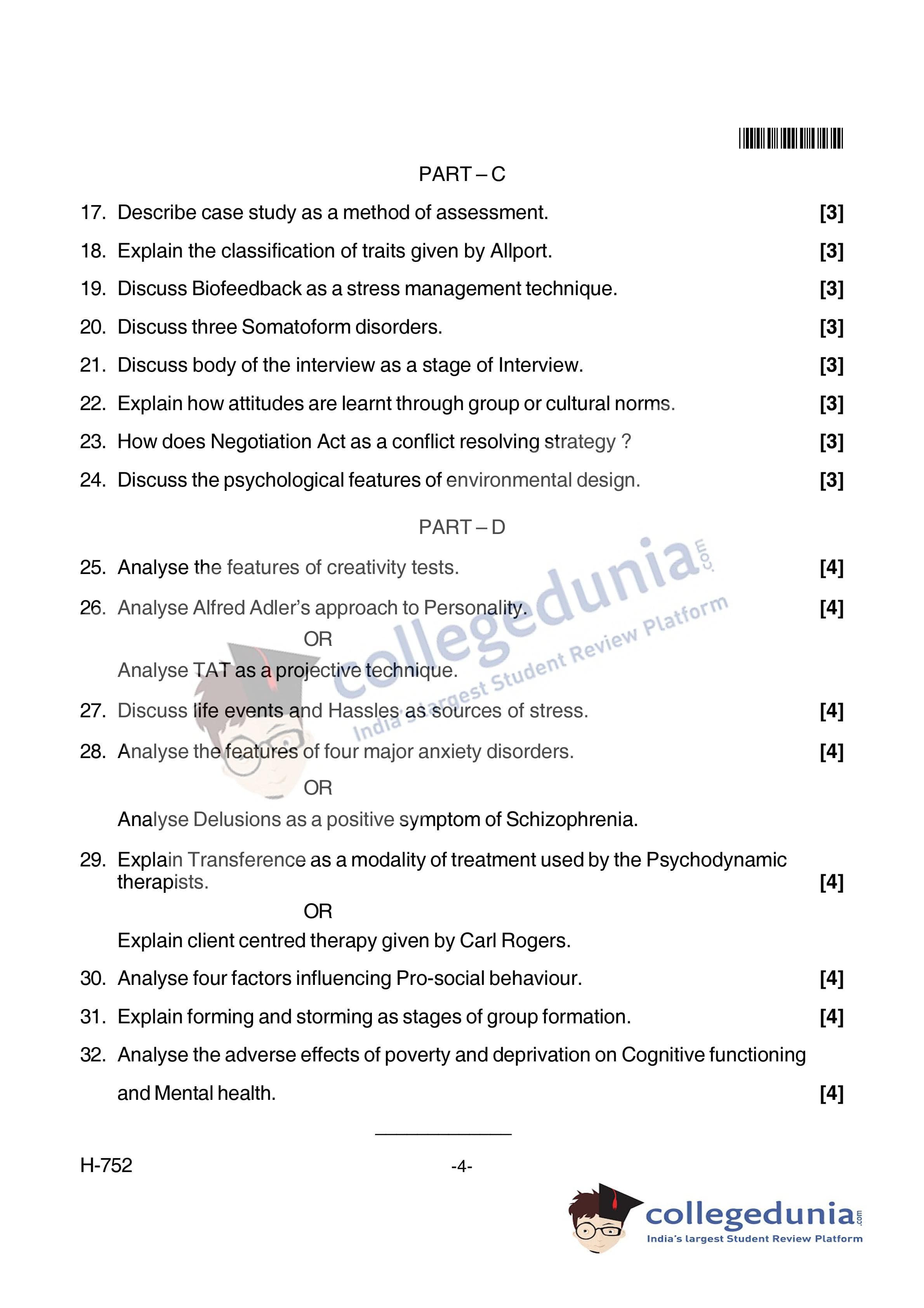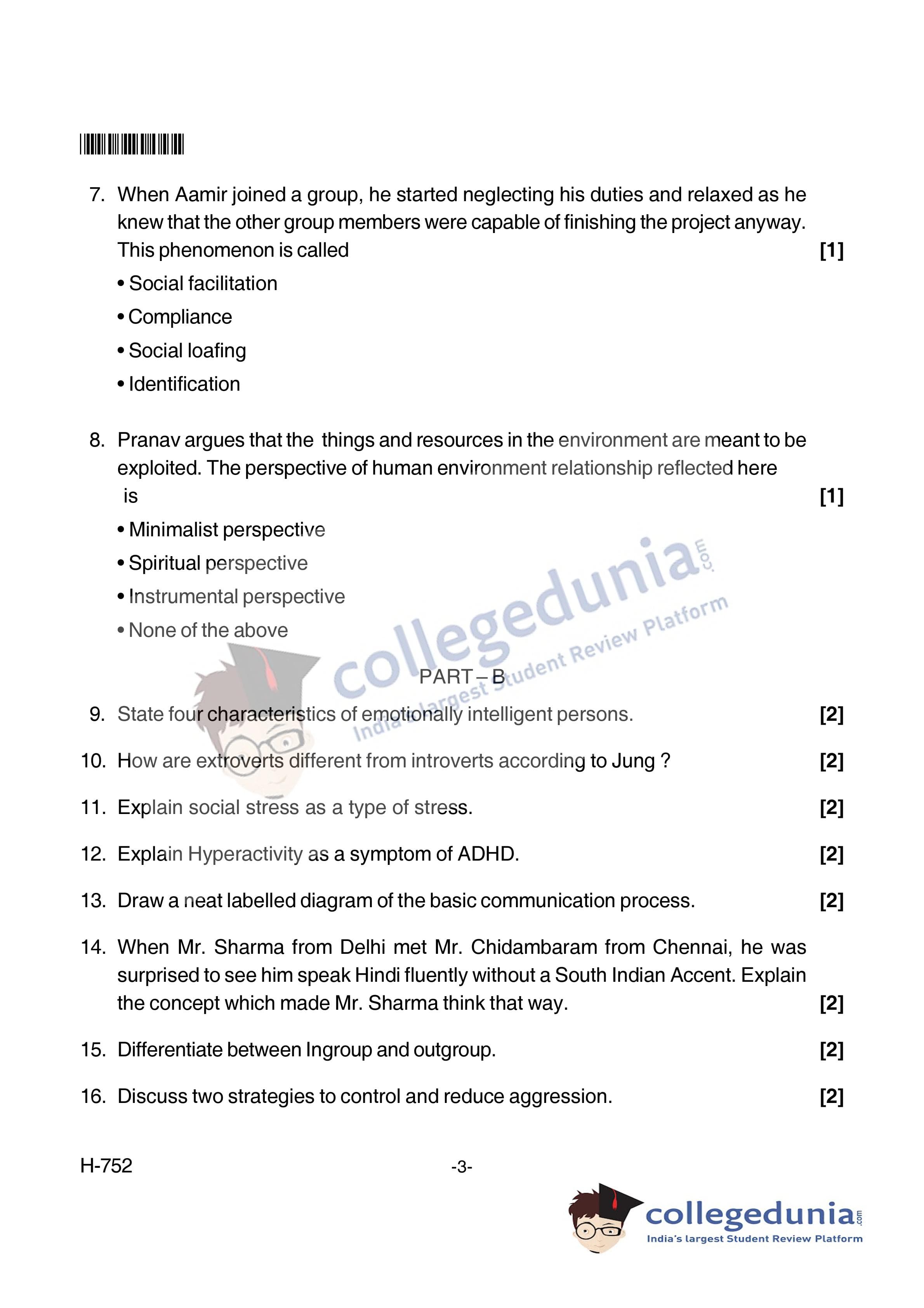 Goa Board HSSC Psychology Question Paper 2018 with Answer Key (March 16)