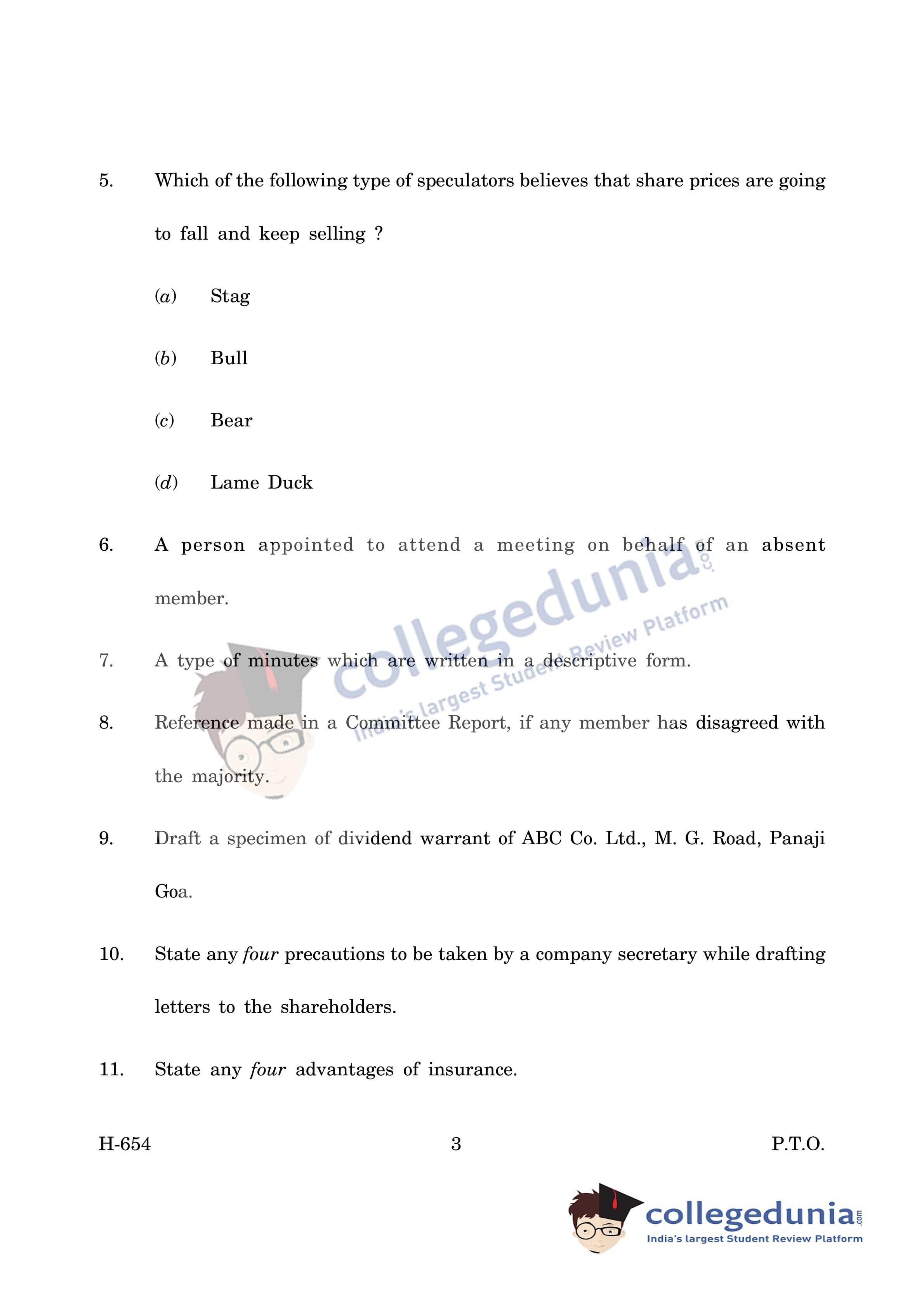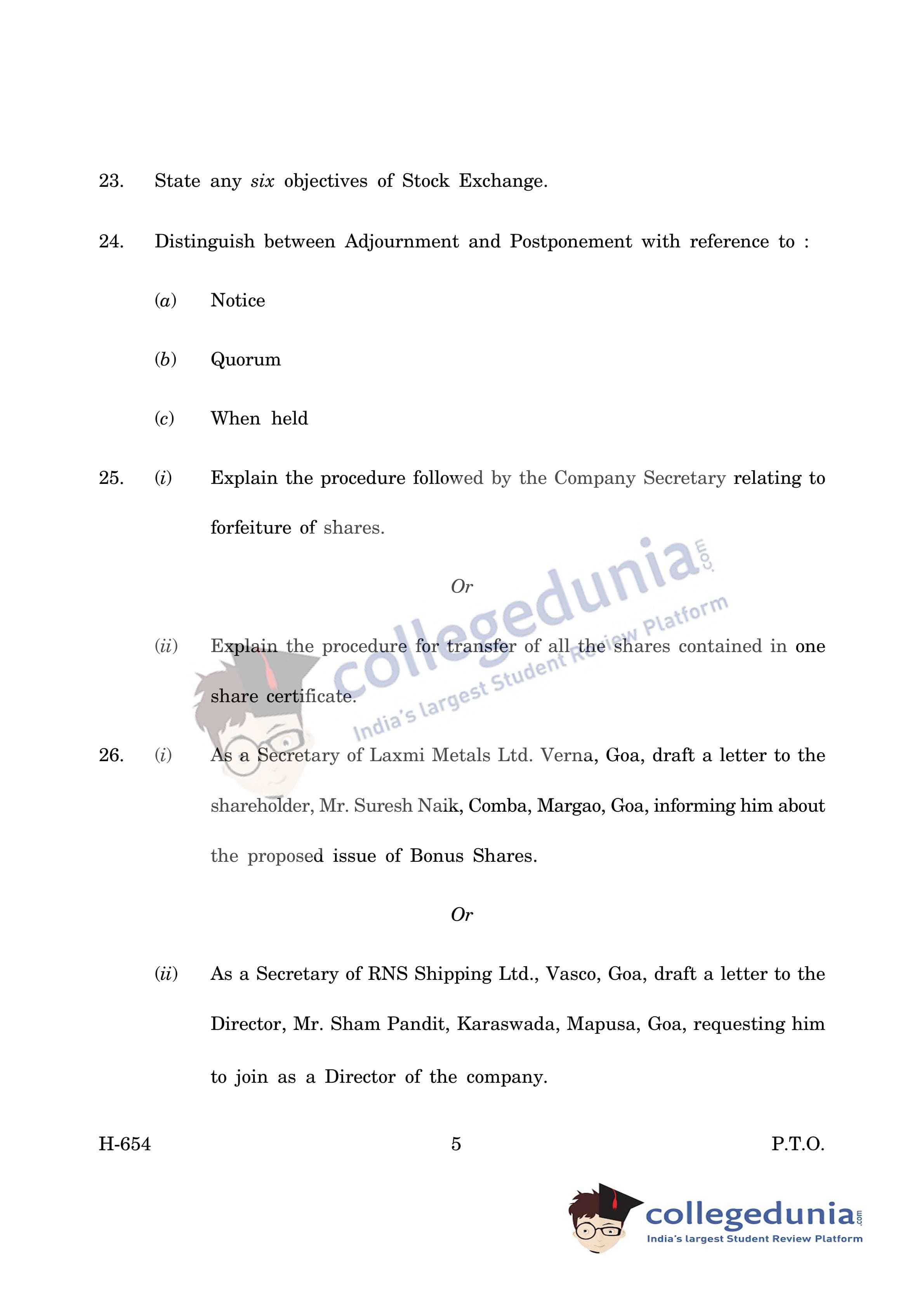 Goa Board HSSC Secretarial Practice Question Paper 2019 with Answer Key (March 22)