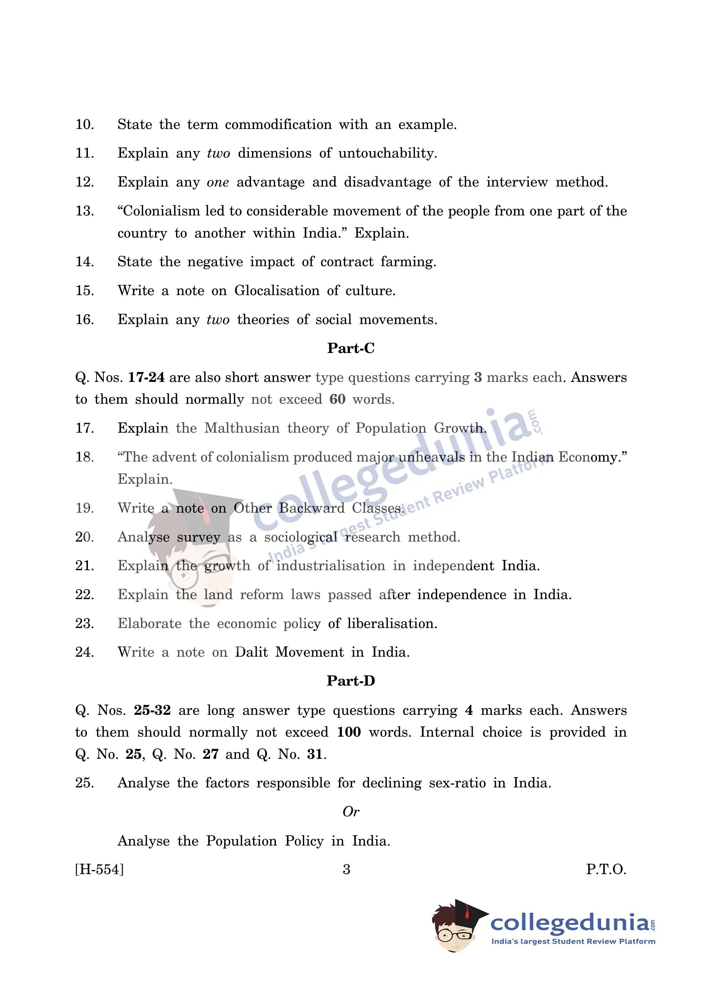Goa Board HSSC Sociology Question Paper 2019 with Answer Key (March 25)