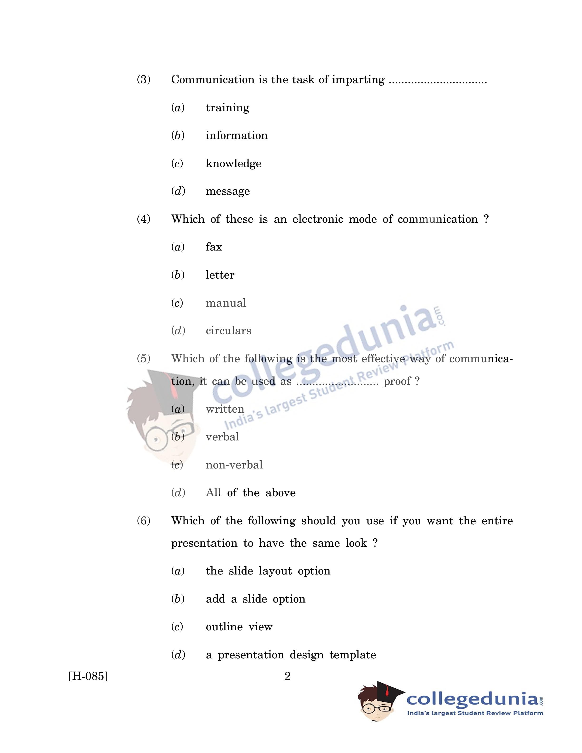 Goa Board HSSC Telecommunication Question Paper 2019 with Answer Key (March 20)