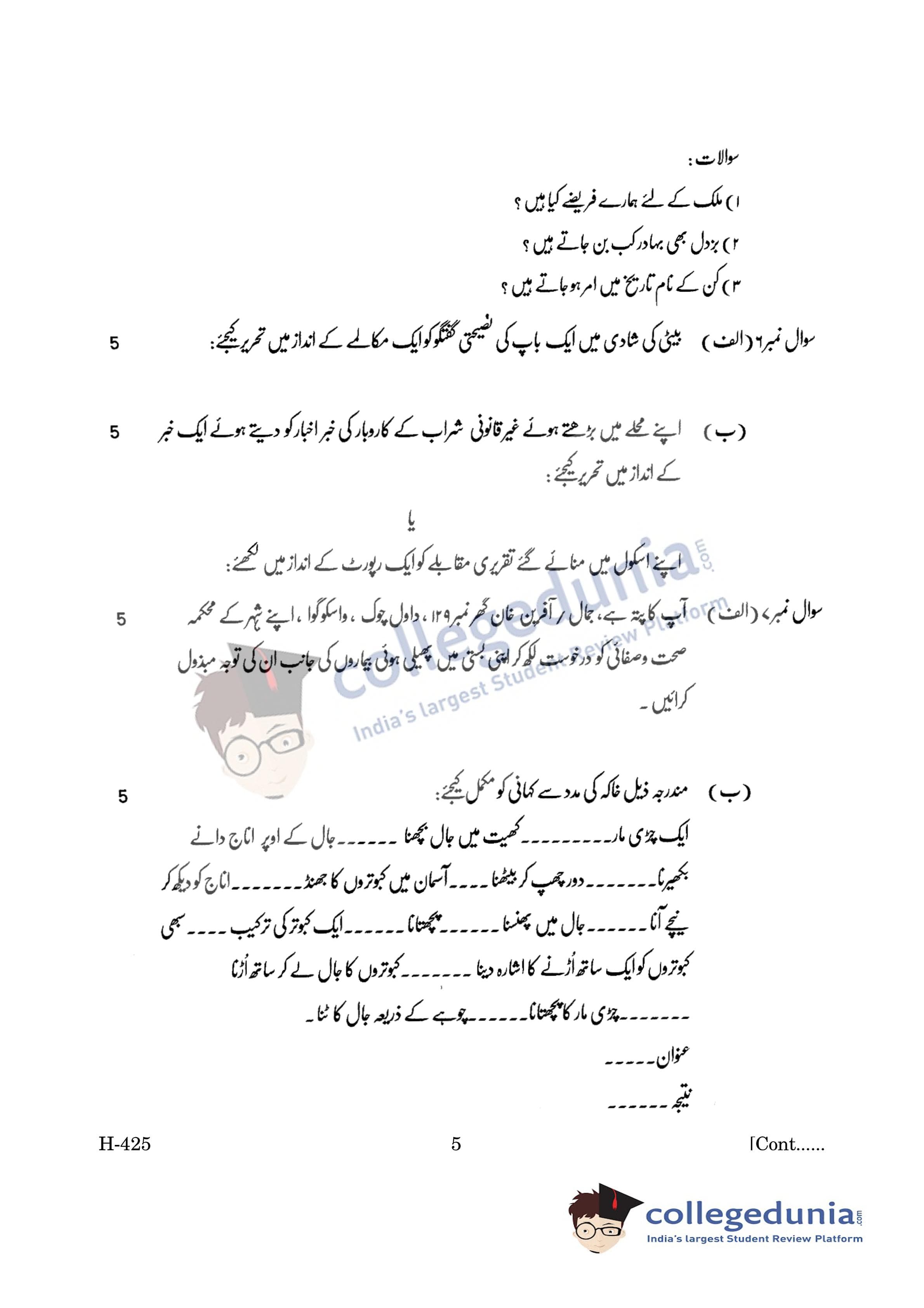 Goa Board HSSC Urdu II Question Paper 2019 with Answer Key (March 19)