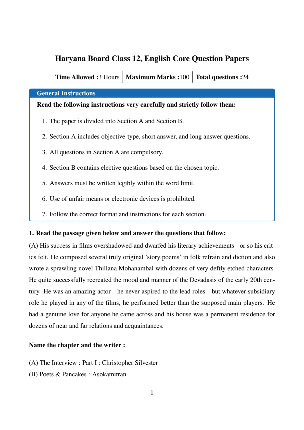 The official question paper of Haryana Board Class 12 English Core Board Exam 2026 is provided below. Students can download the official paper in PDF format for reference.