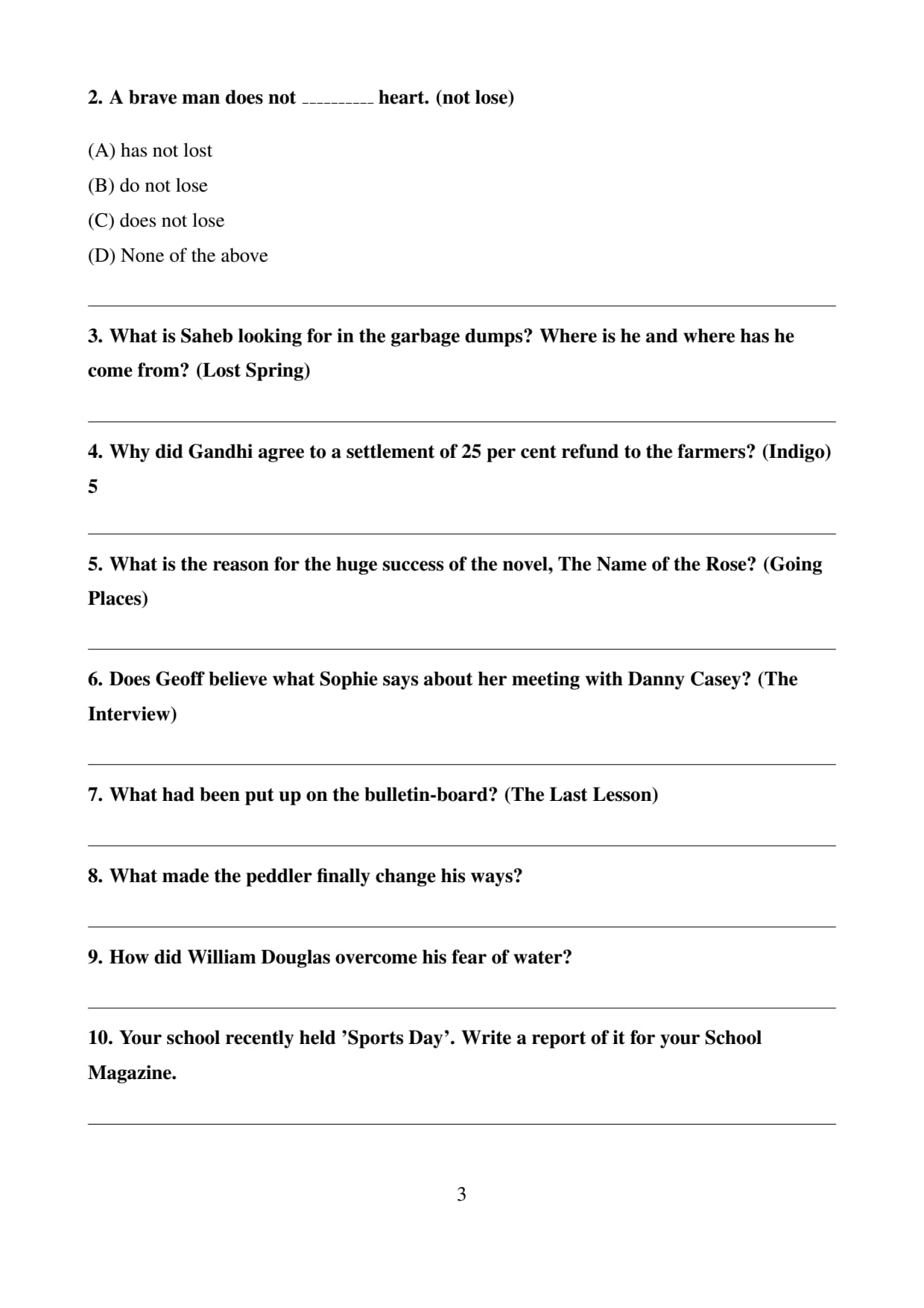 Your school recently held 'Sports Day'. Write a report of it for your School Magazine. \hfill 5