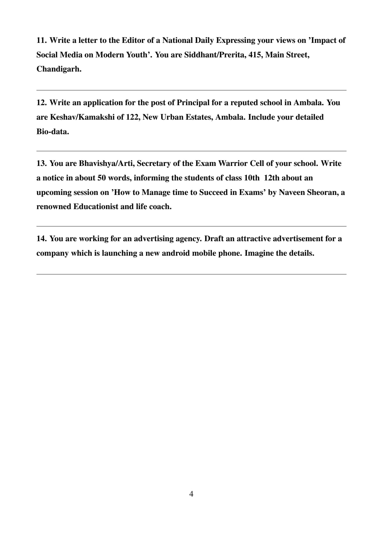 Write an application for the post of Principal for a reputed school in Ambala. You are Keshav/Kamakshi of 122, New Urban Estates, Ambala. Include your detailed Bio-data.