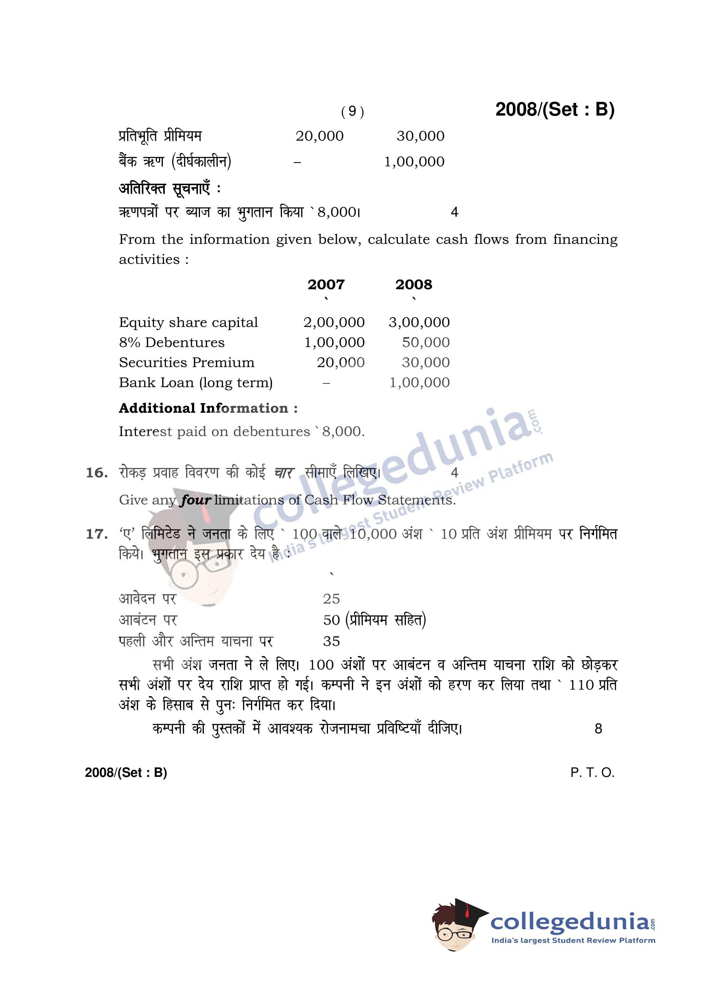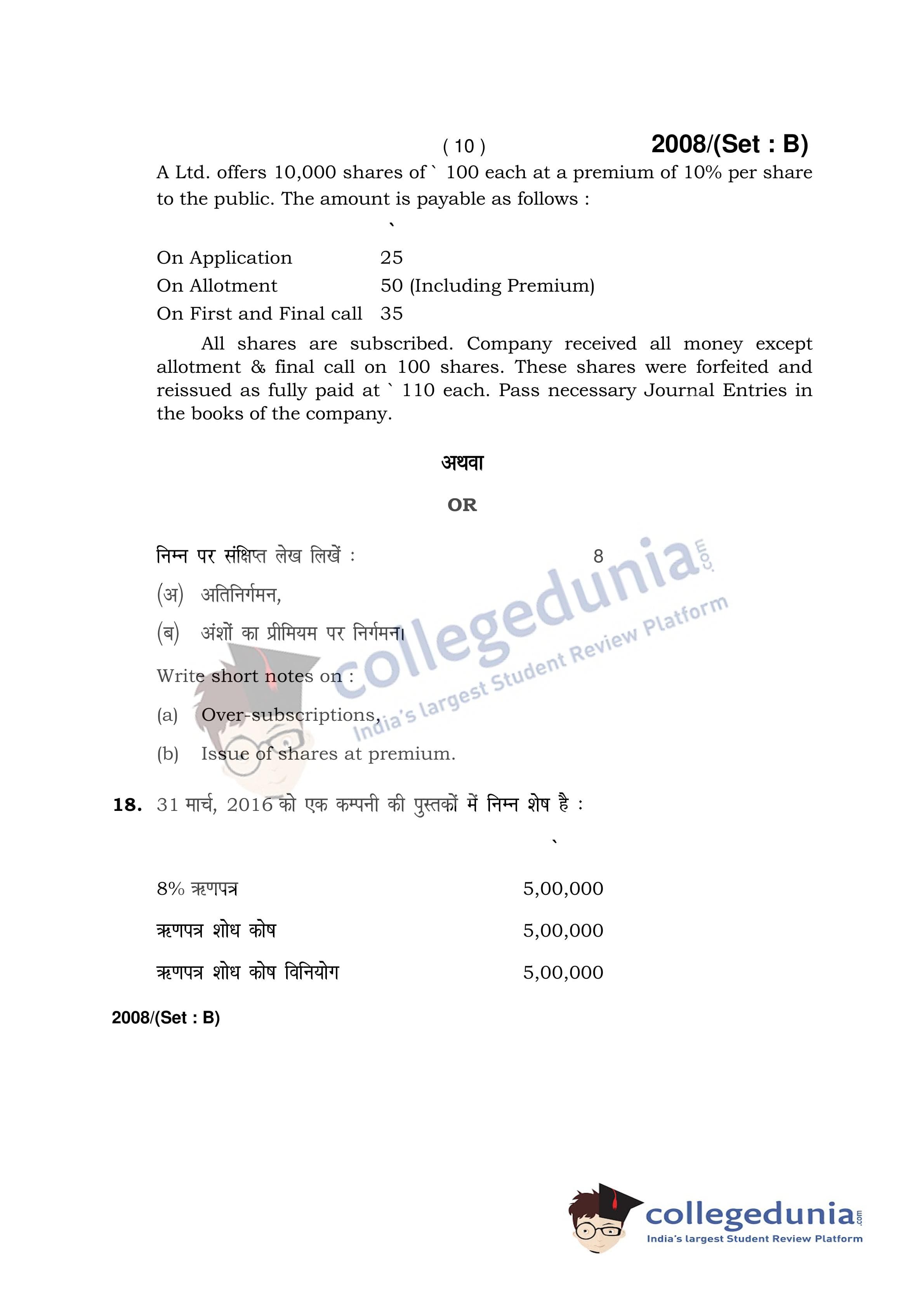 HBSE Class 12 Accountancy Set B Question Paper 2017 with Answer Key (March 31)