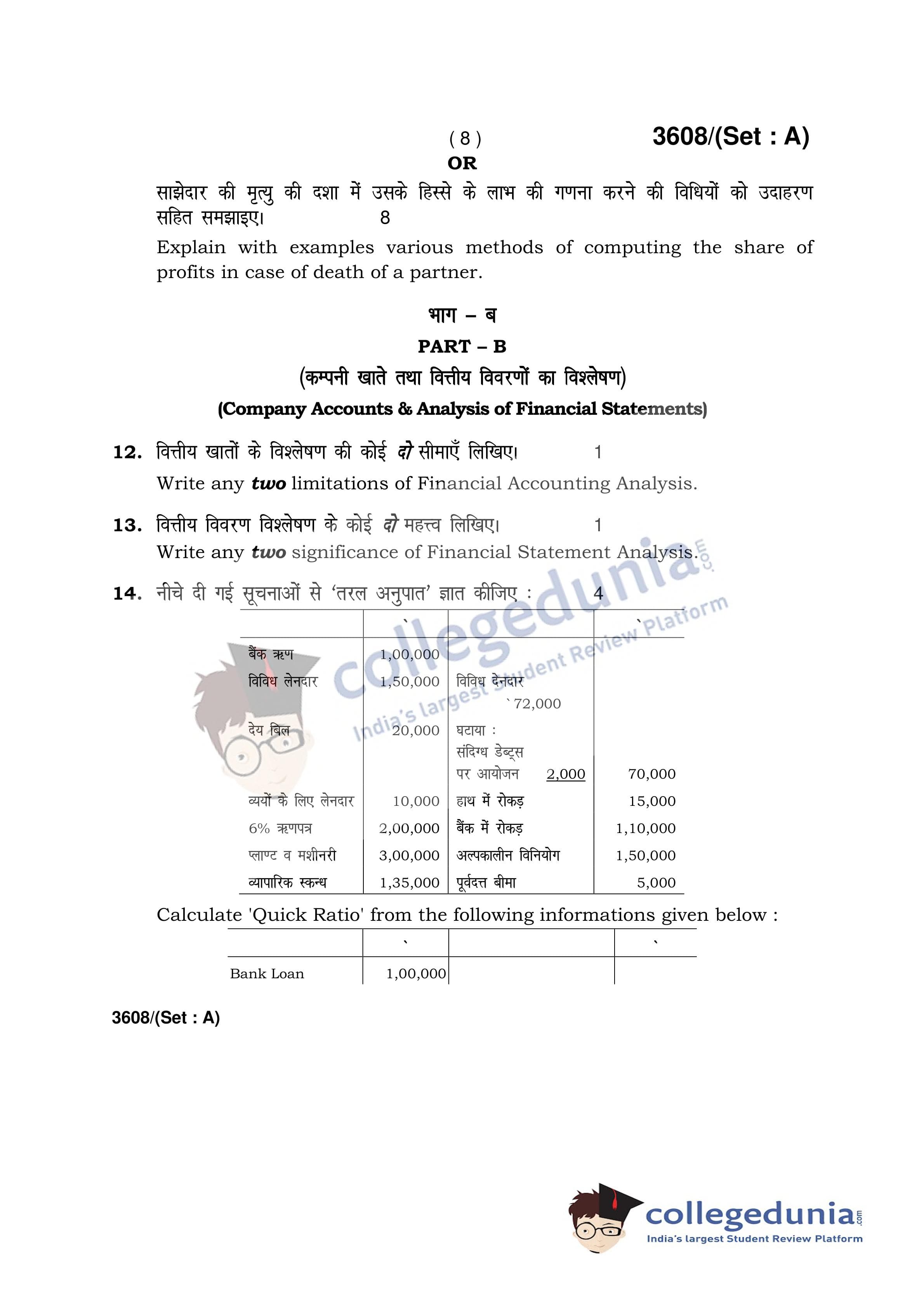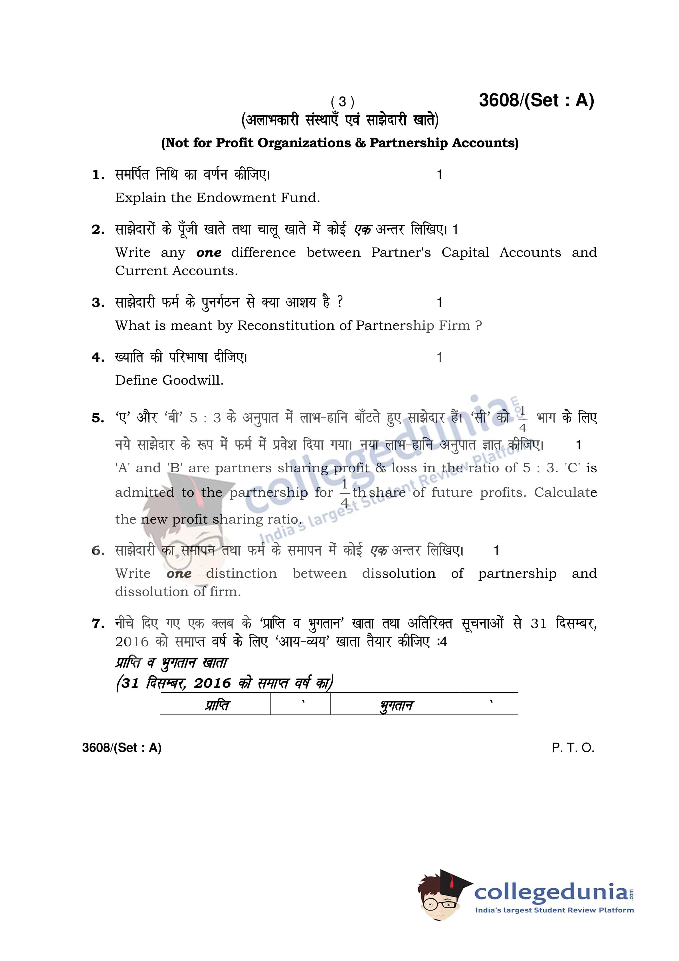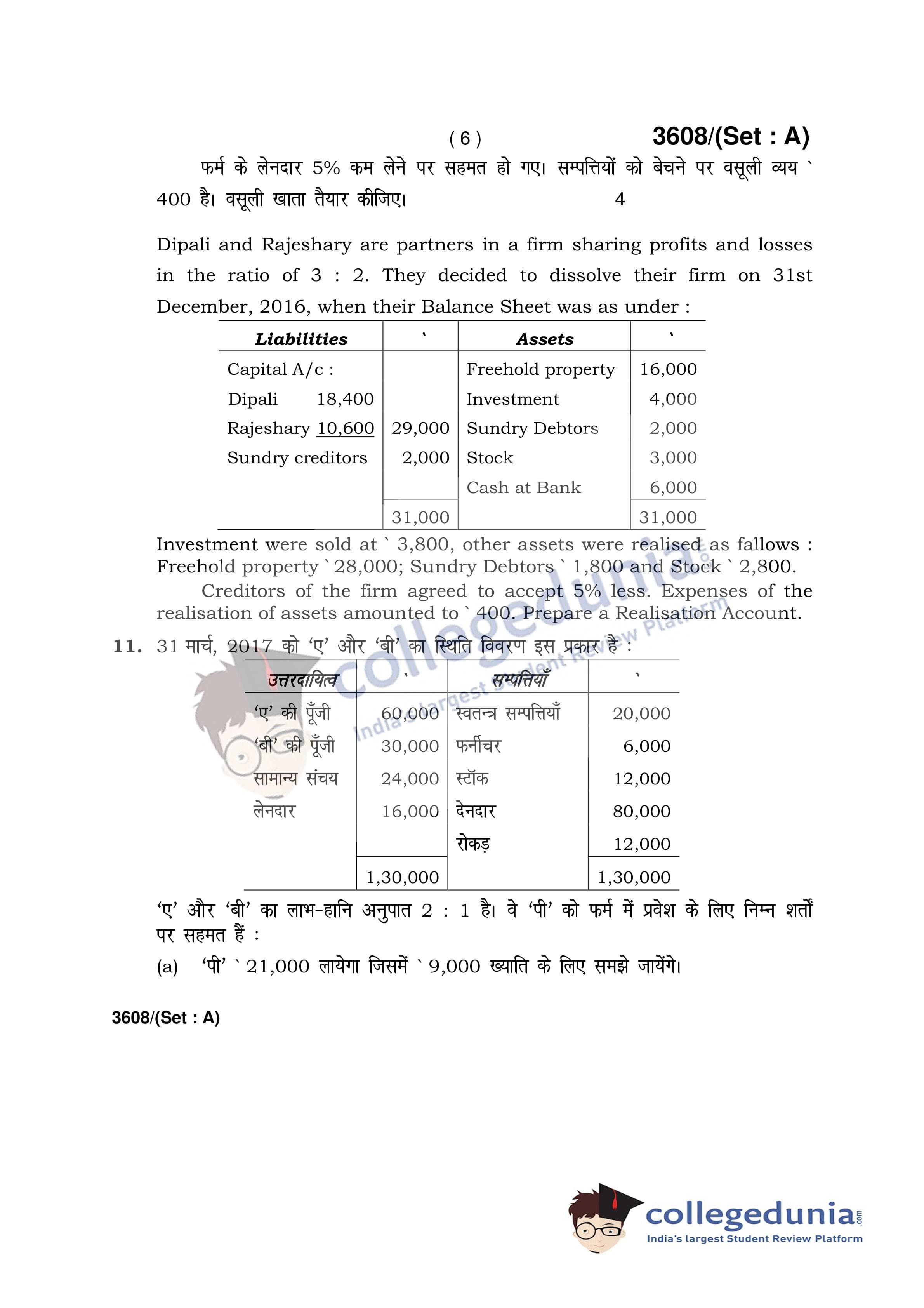 HBSE Class 12 Accountancy Set A Question Paper 2018 with Answer Key (March 15)