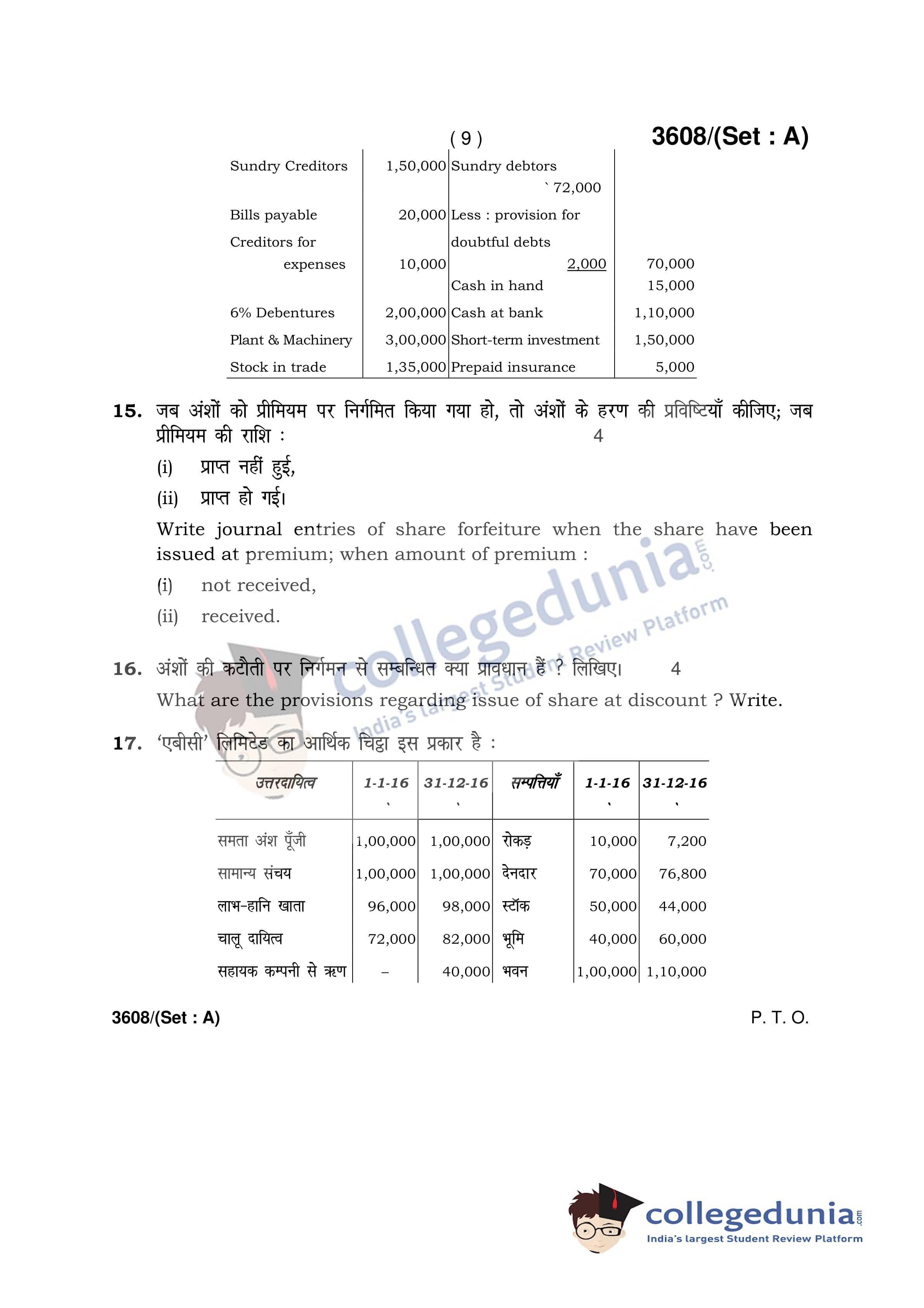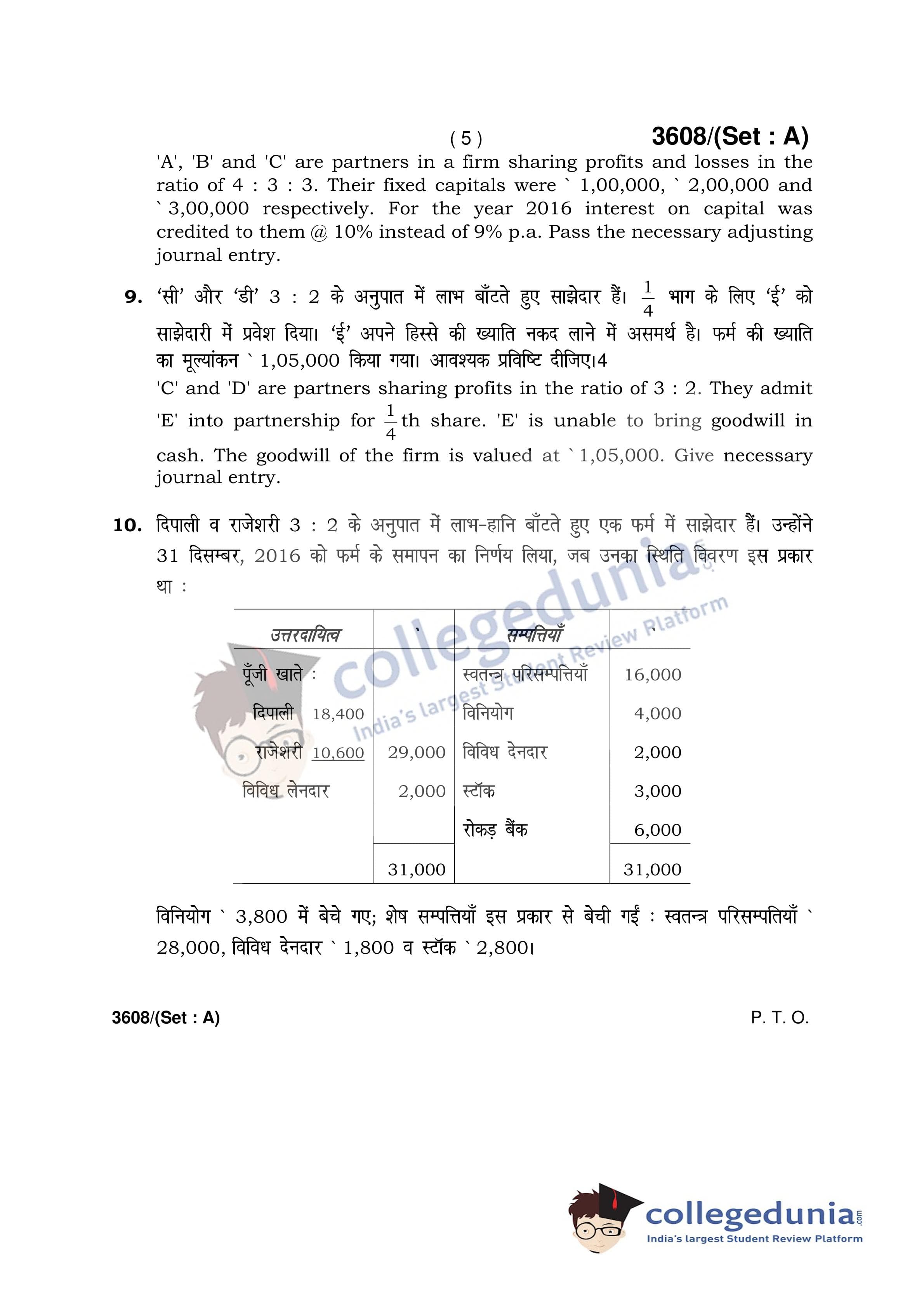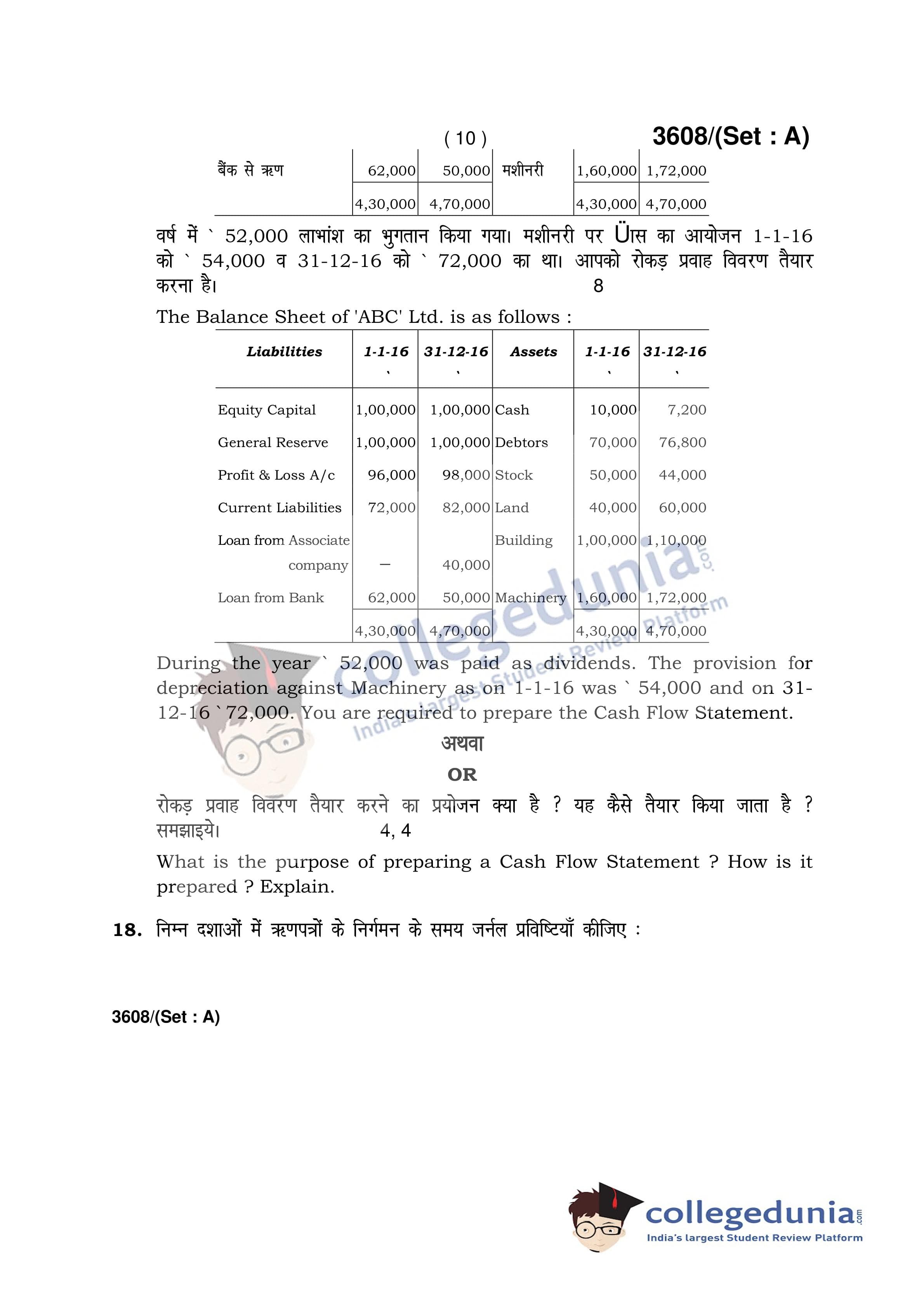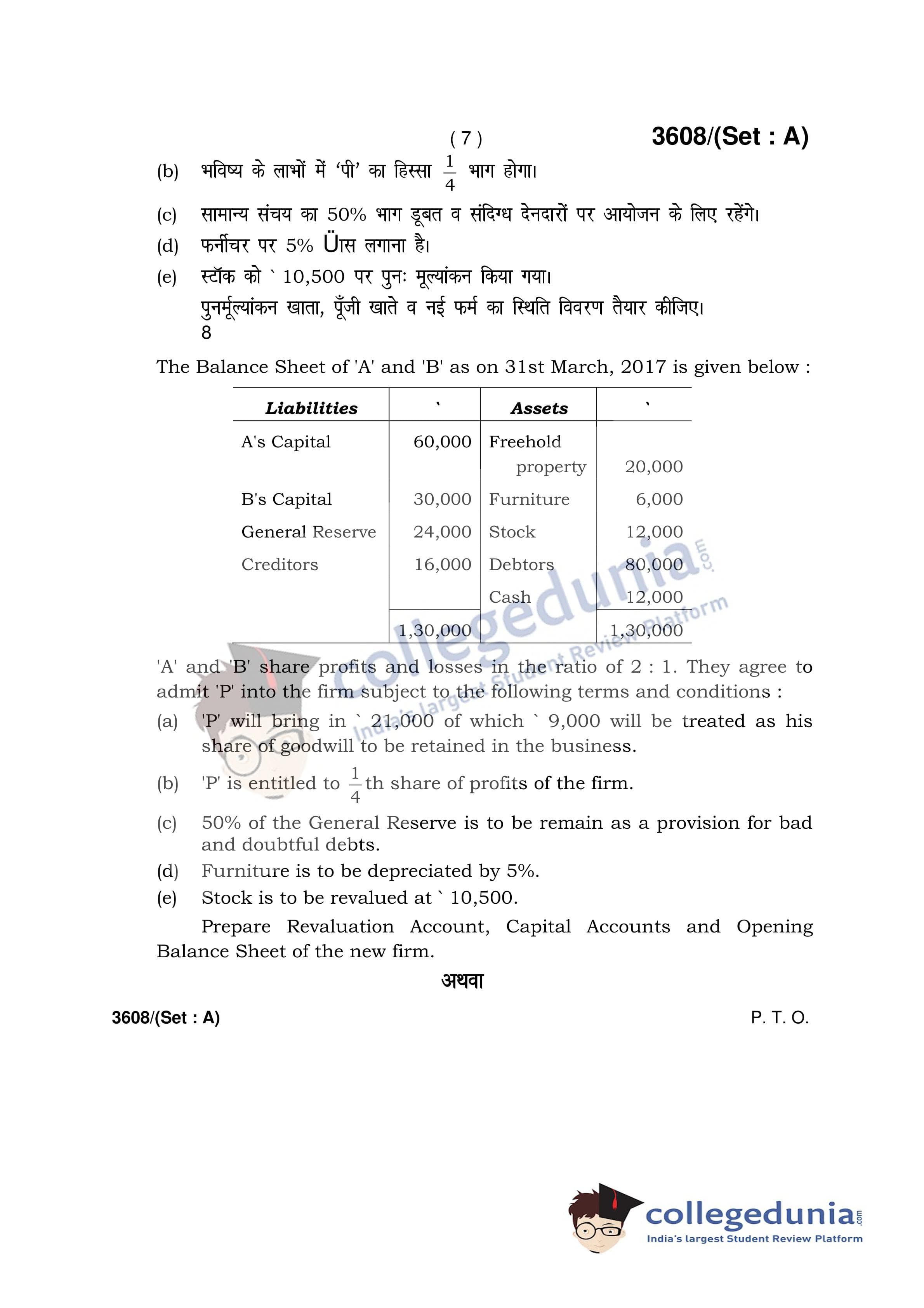 HBSE Class 12 Accountancy Set A Question Paper 2018 with Answer Key (March 15)
