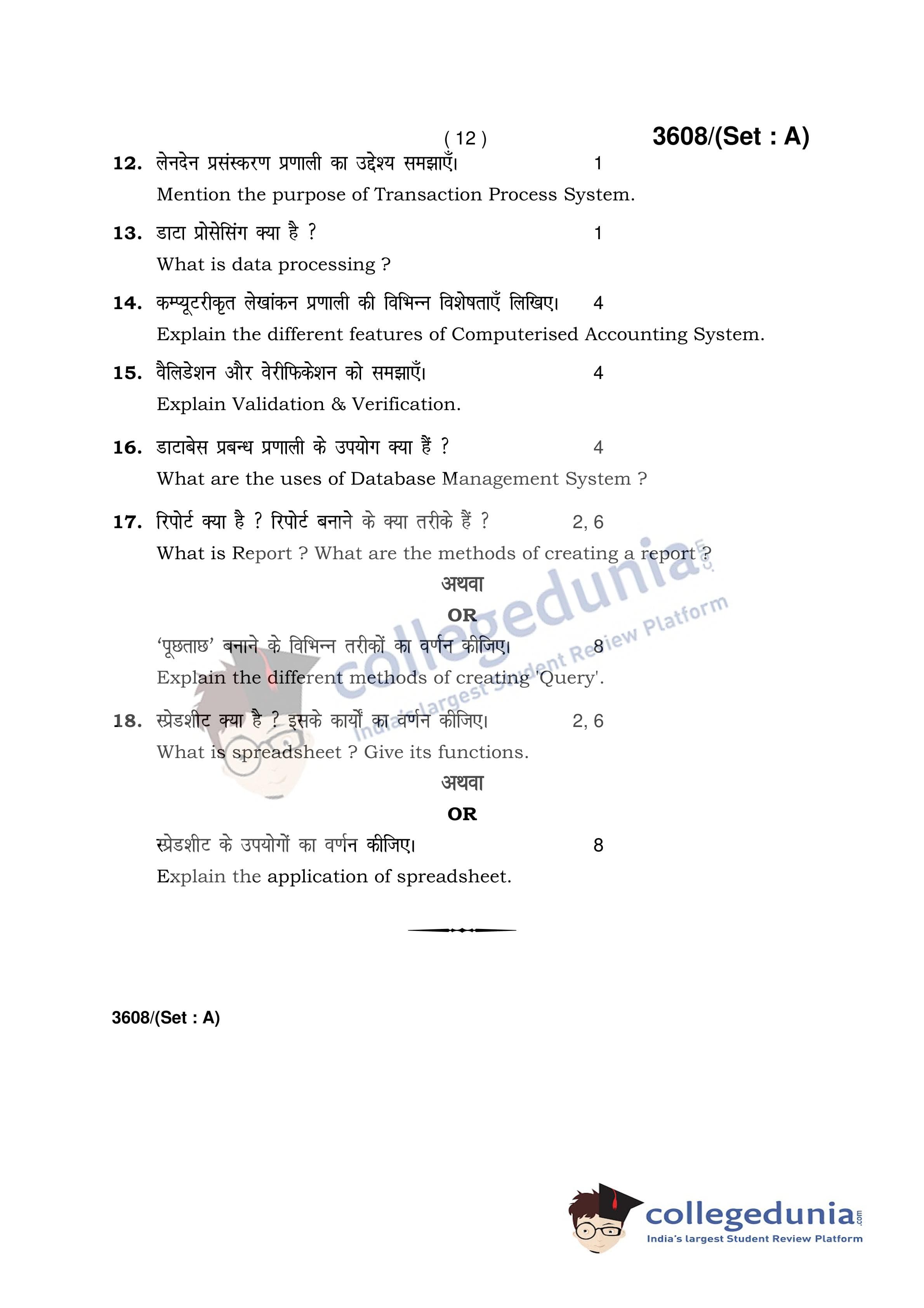 HBSE Class 12 Accountancy Question Paper 2018 with Answer Key Set A is available for download. The exam was conducted by the Board of School Education Haryana on March 15, 2018 in the Afternoon Session 12:30 PM to 3:30 PM. The medium of paper was English and Hindi. The question paper comprised a total of 25 questions.