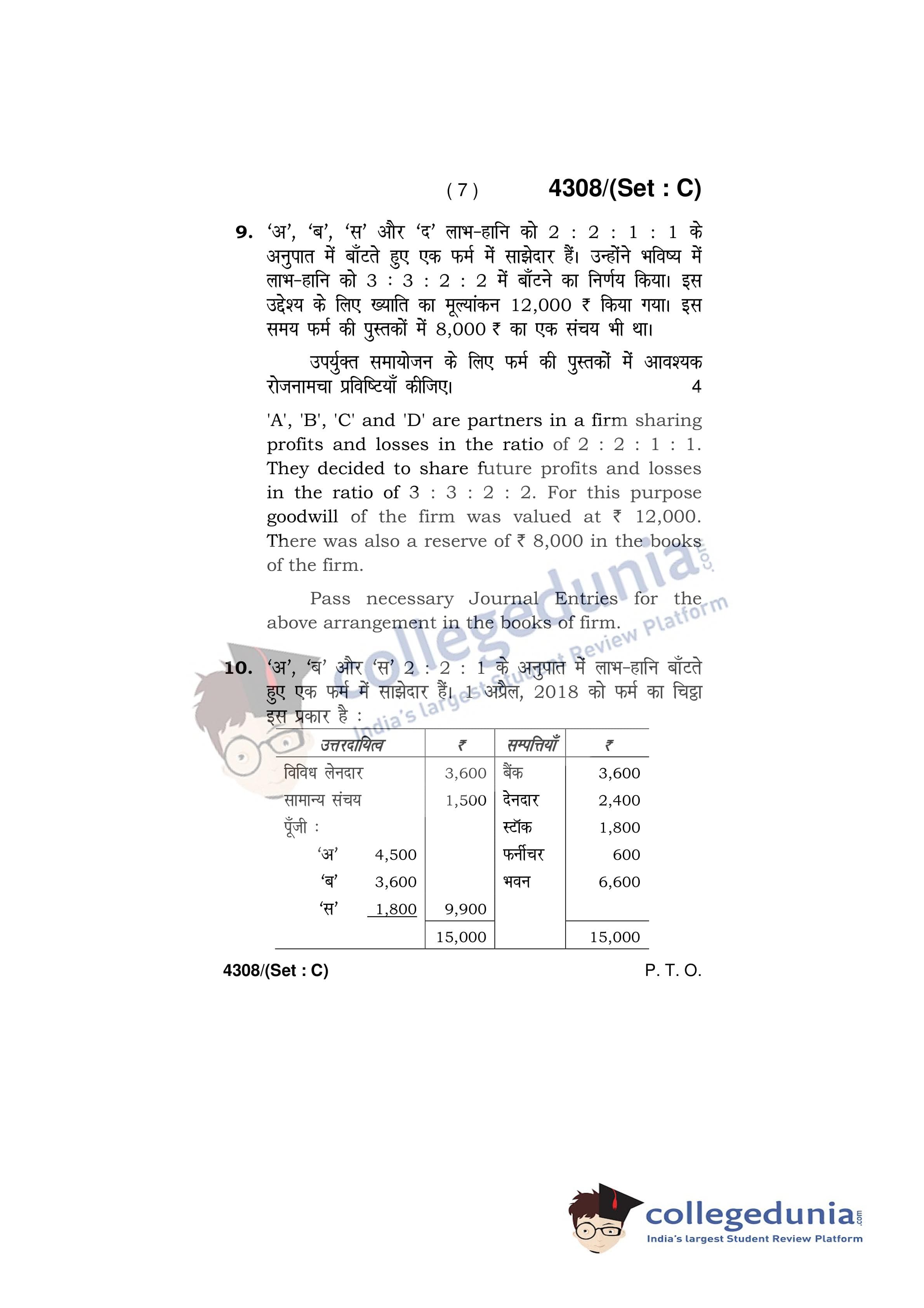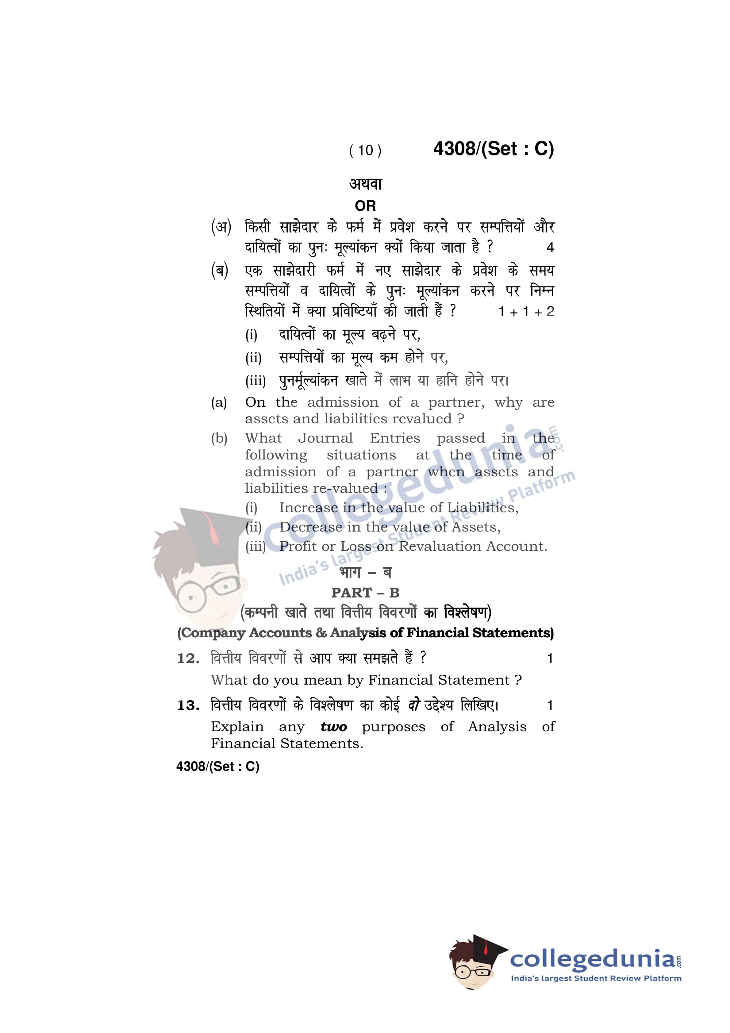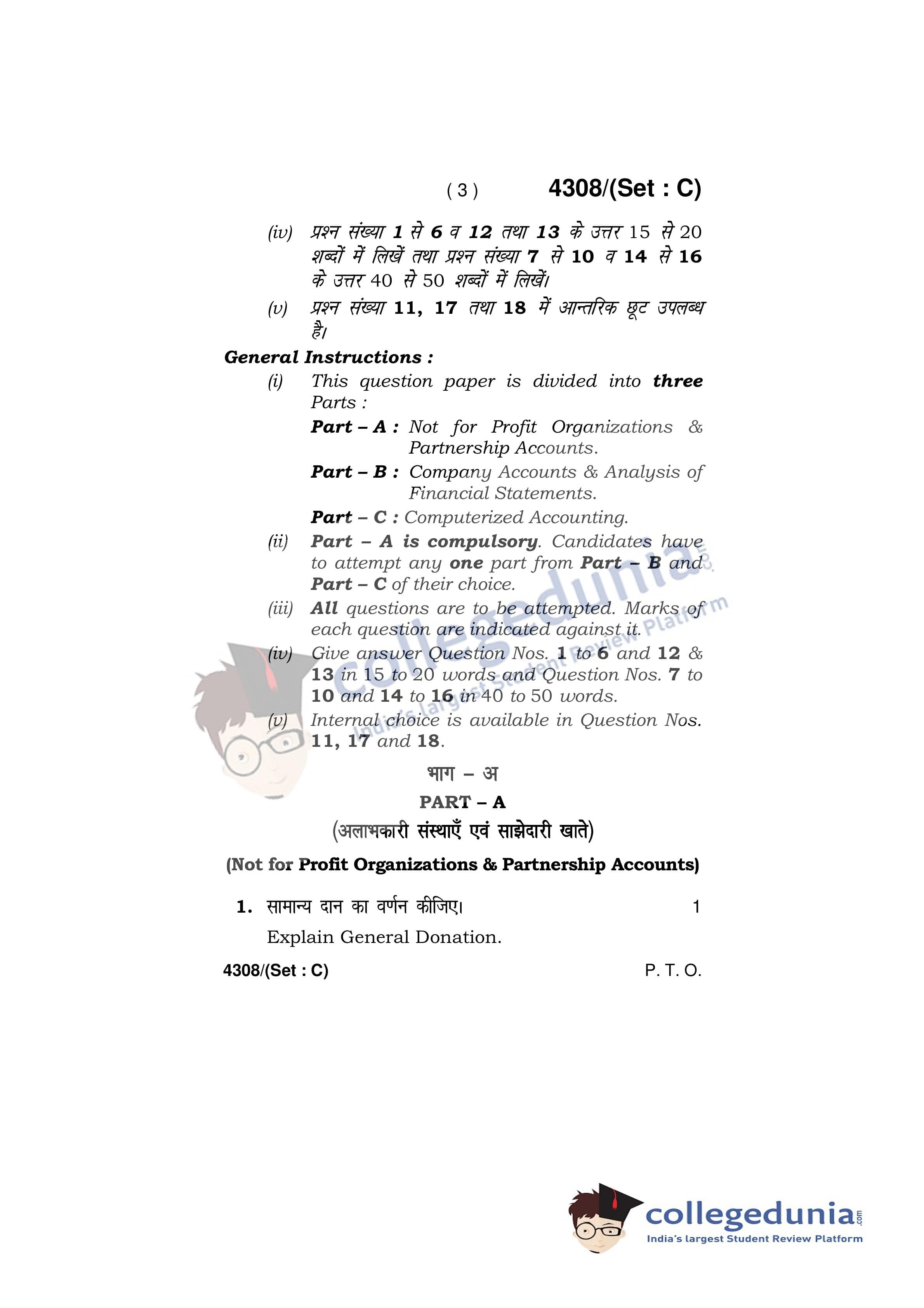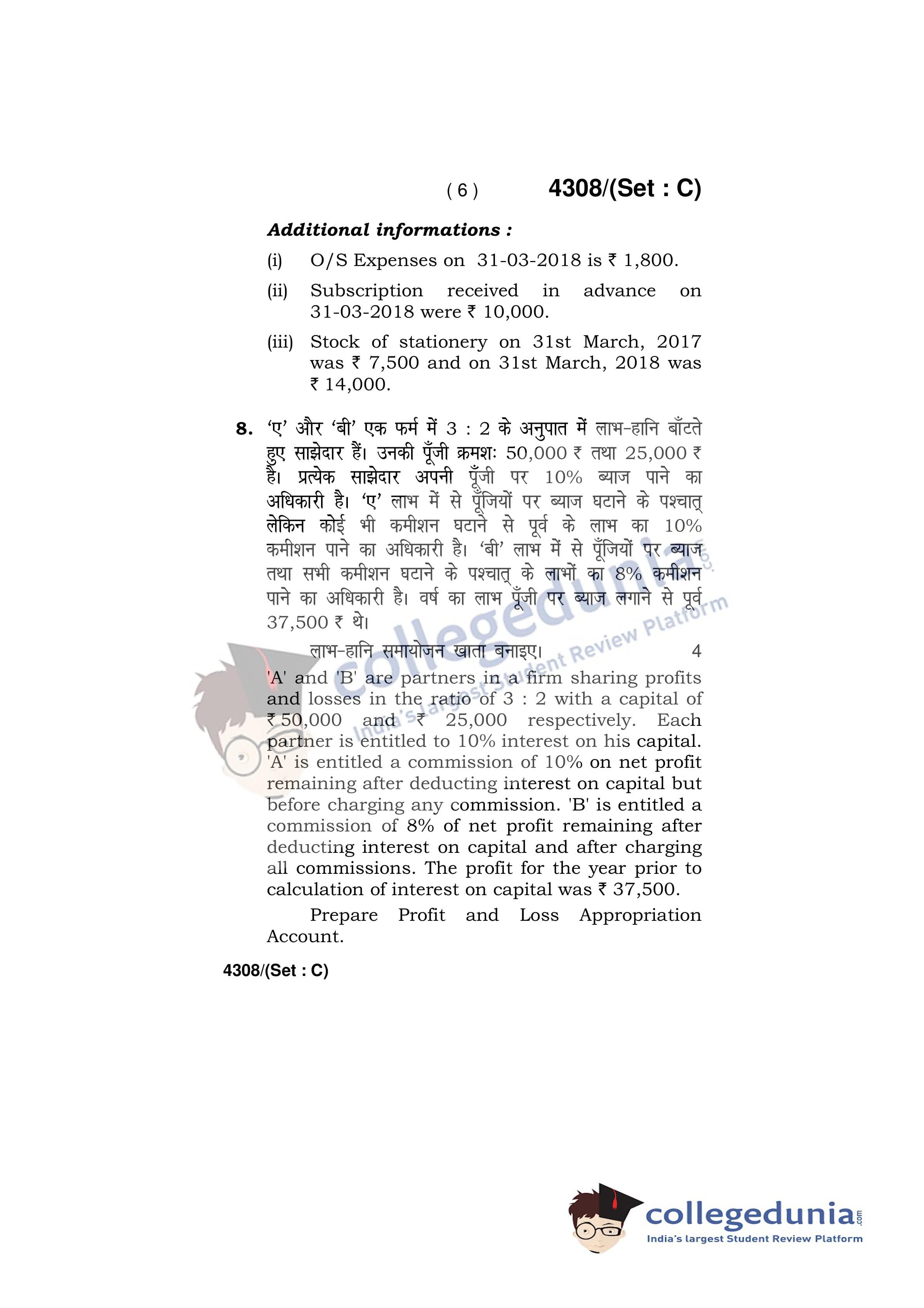 HBSE Class 12 Accountancy Set C Question Paper 2019 with Answer Key (March 27)