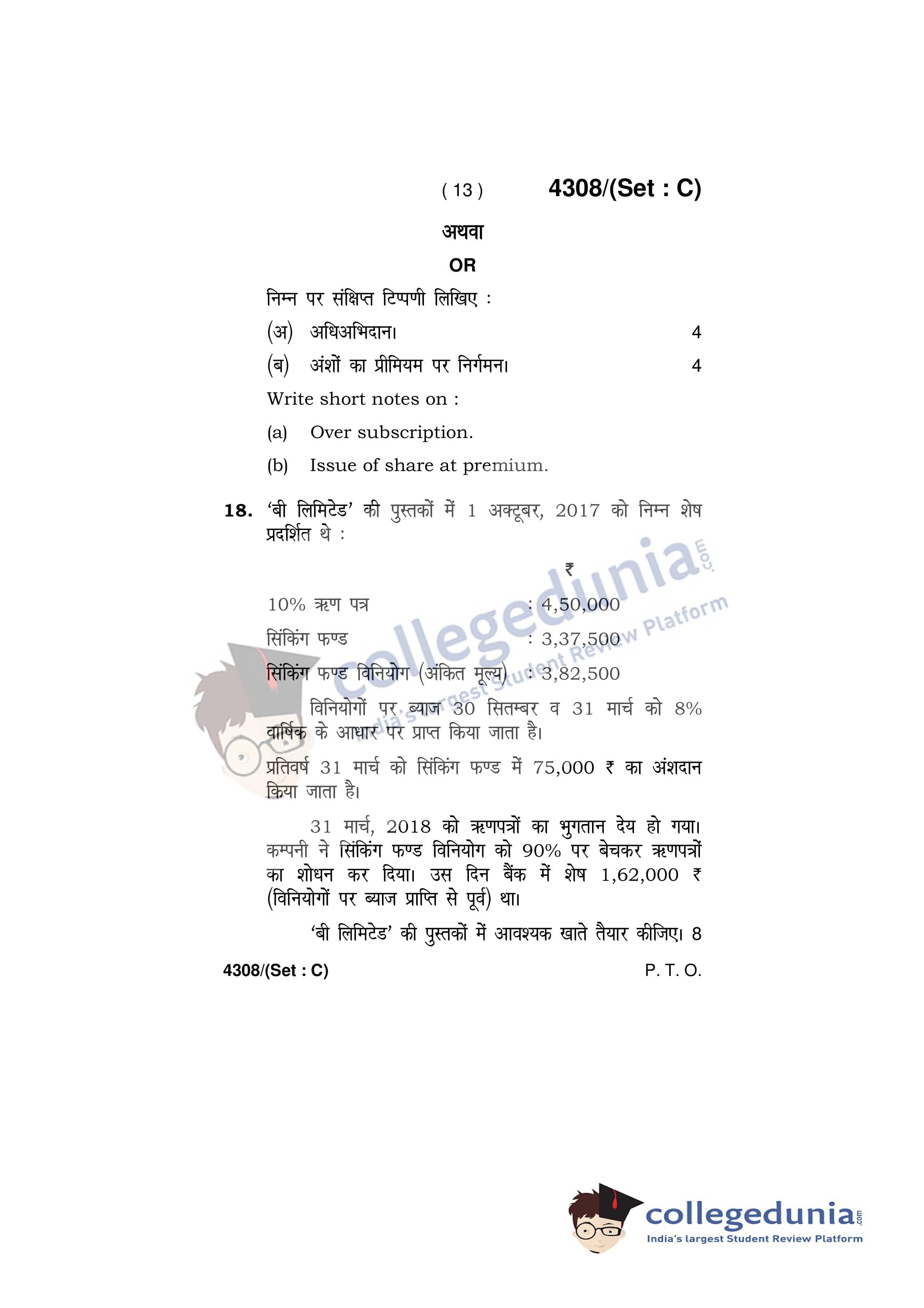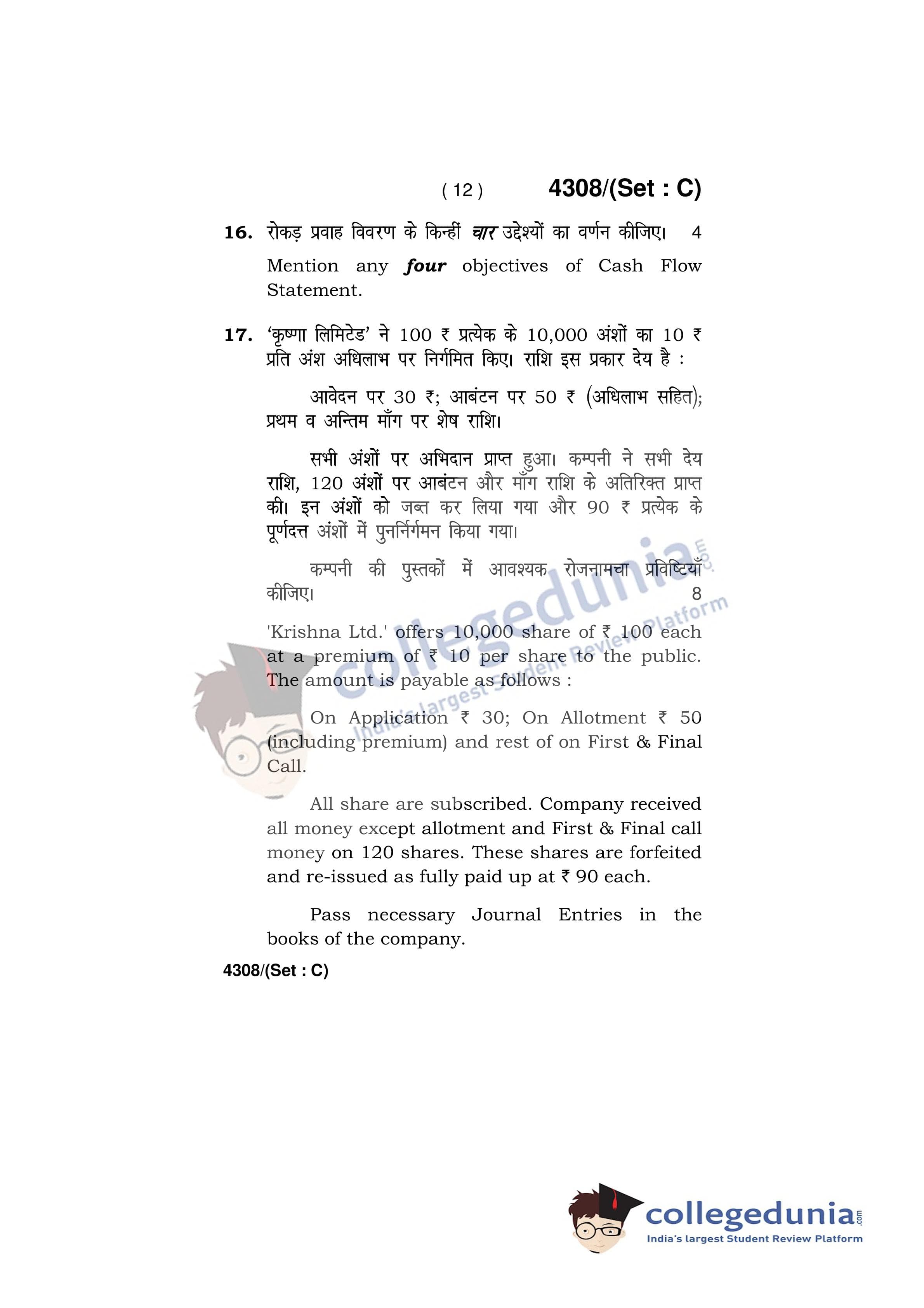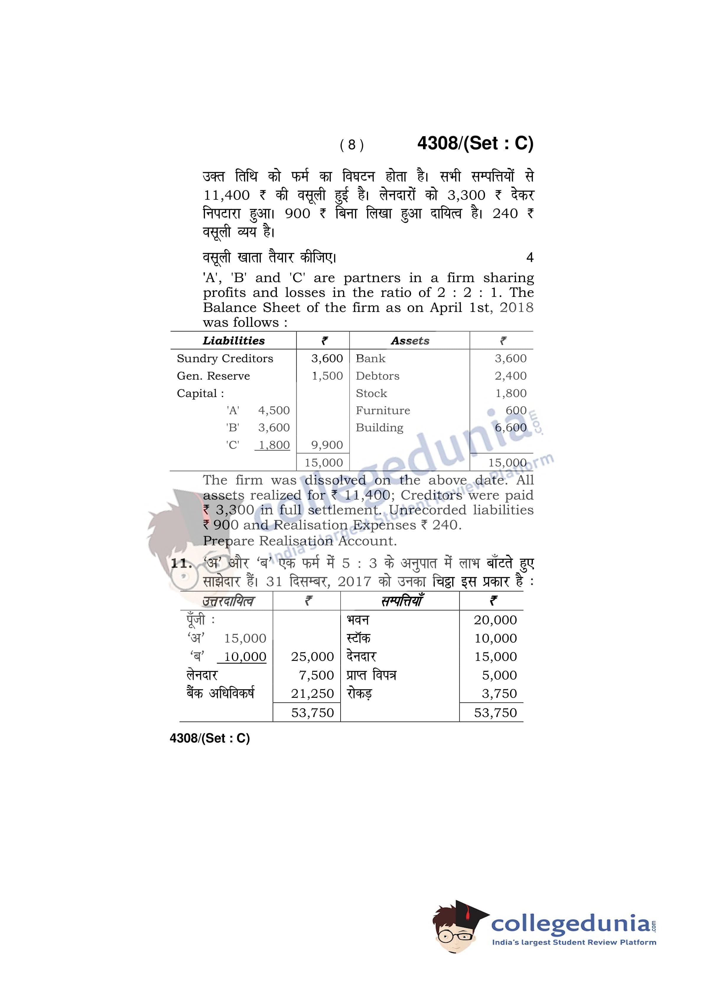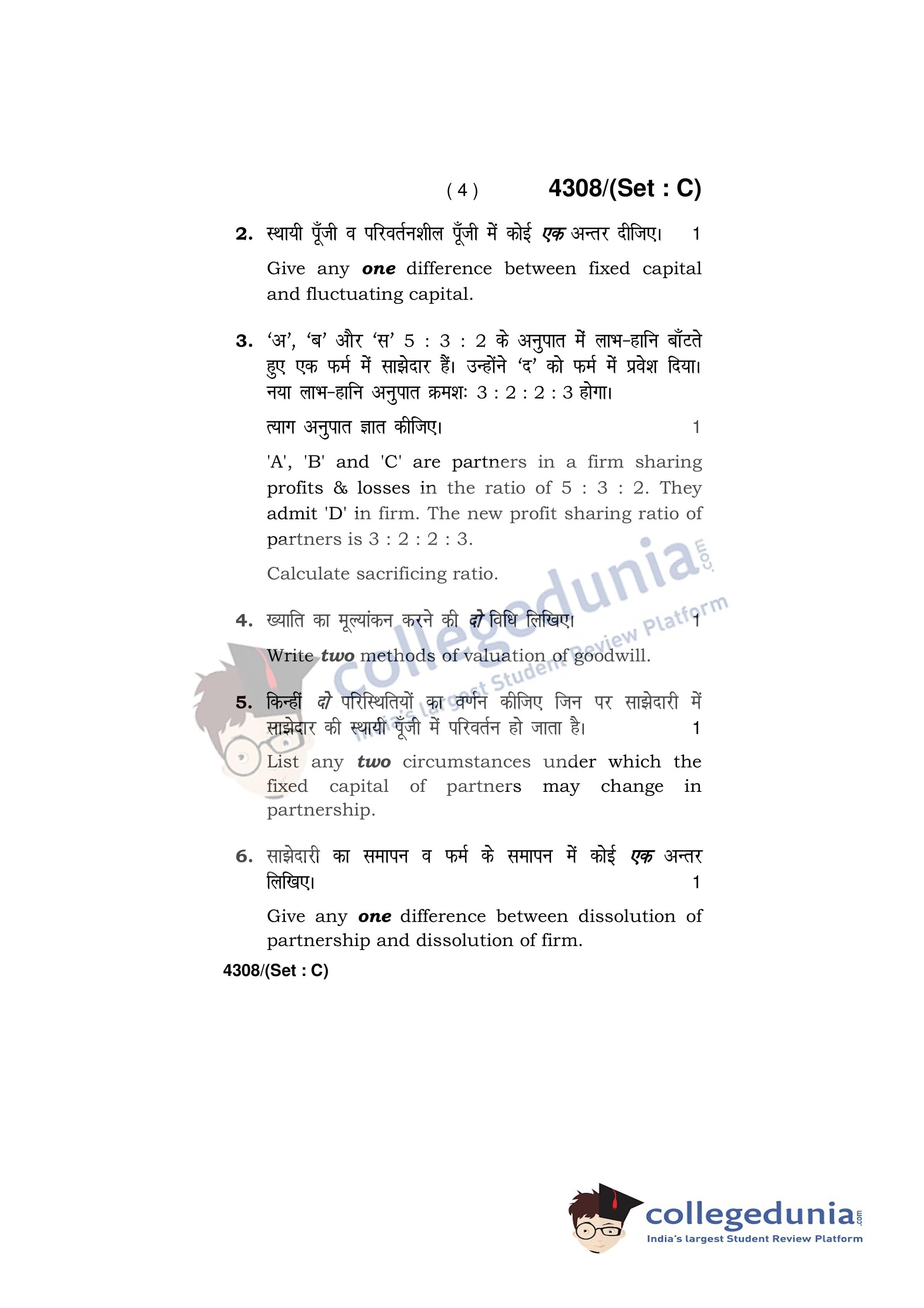HBSE Class 12 Accountancy Set C Question Paper 2019 with Answer Key (March 27)