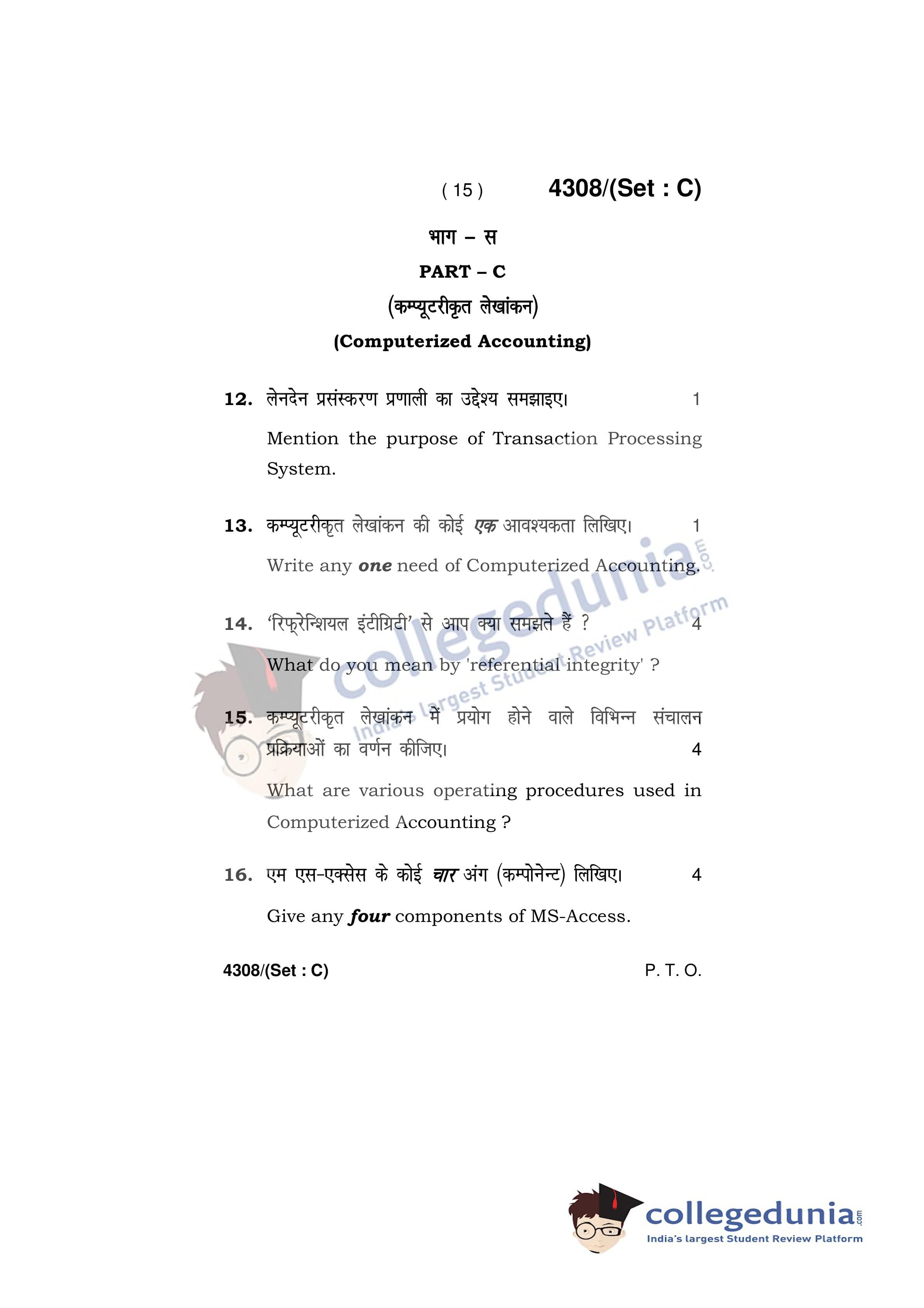 HBSE Class 12 Accountancy Question Paper 2019 with Answer Key Set C is available for download. The exam was conducted by the Board of School Education Haryana on March 27, 2019 in the Afternoon Session 12:30 PM to 3:30 PM. The medium of paper was English and Hindi. The question paper comprised a total of 25 questions divided among 3 sections.