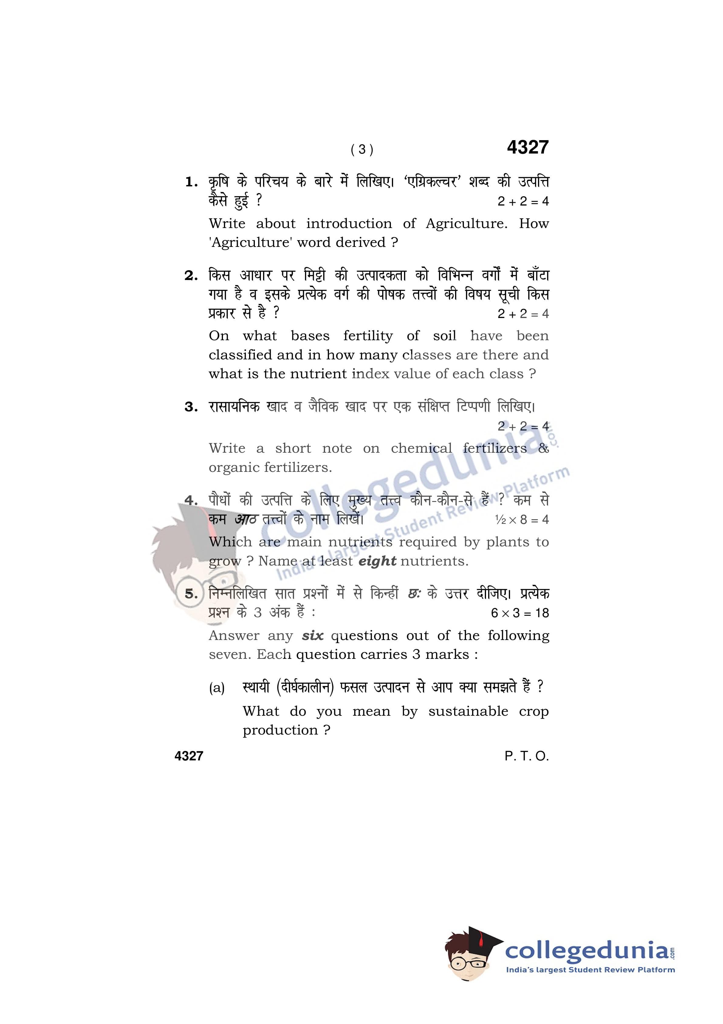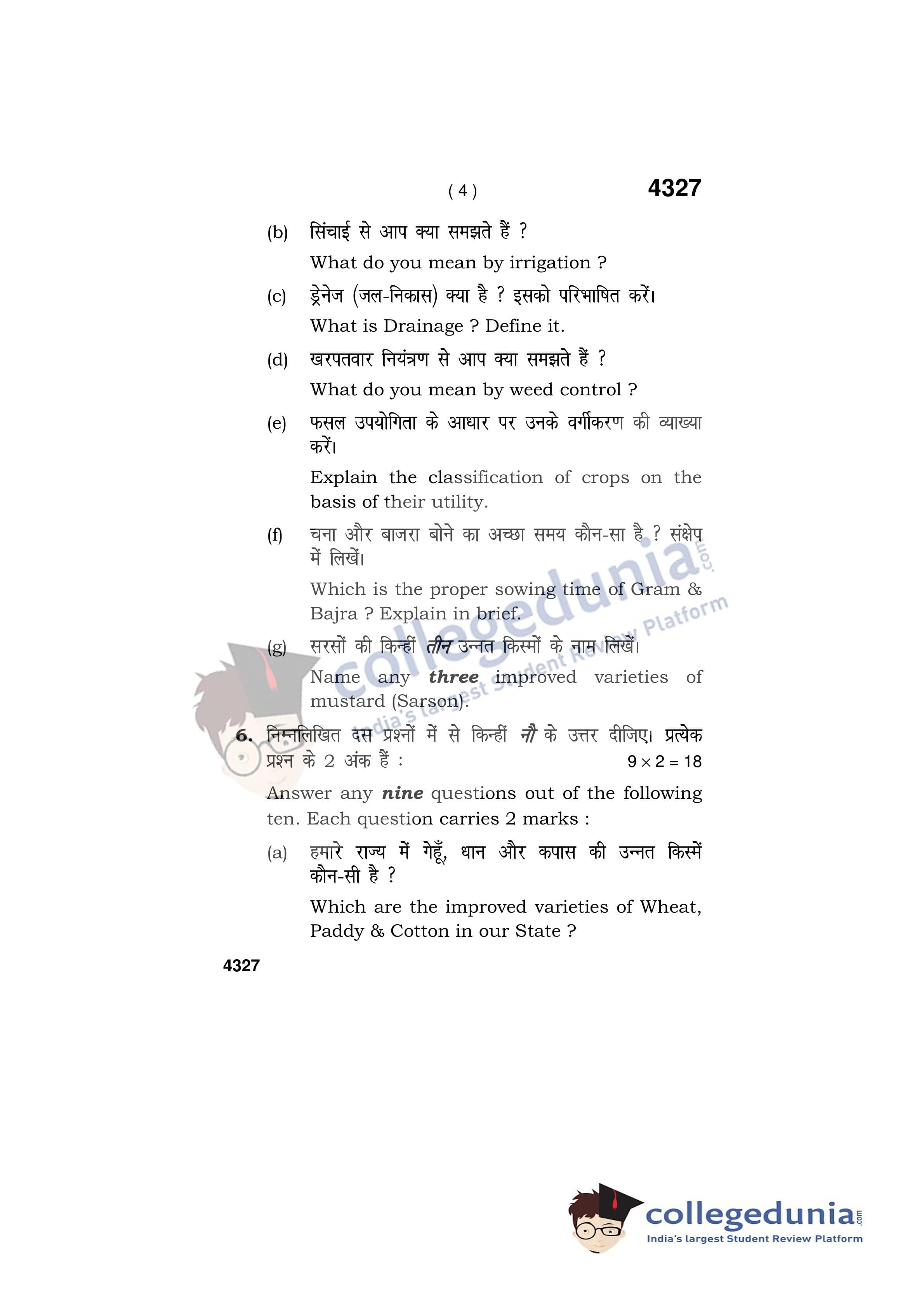 HBSE Class 12 Agriculture Question Paper 2019 with Answer Key is available for download. The exam was conducted by the Board of School Education Haryana on March 19, 2019 in the Afternoon Session 12:30 PM to 3:30 PM. The medium of paper was English and Hindi. The question paper comprised a total of 7 questions.