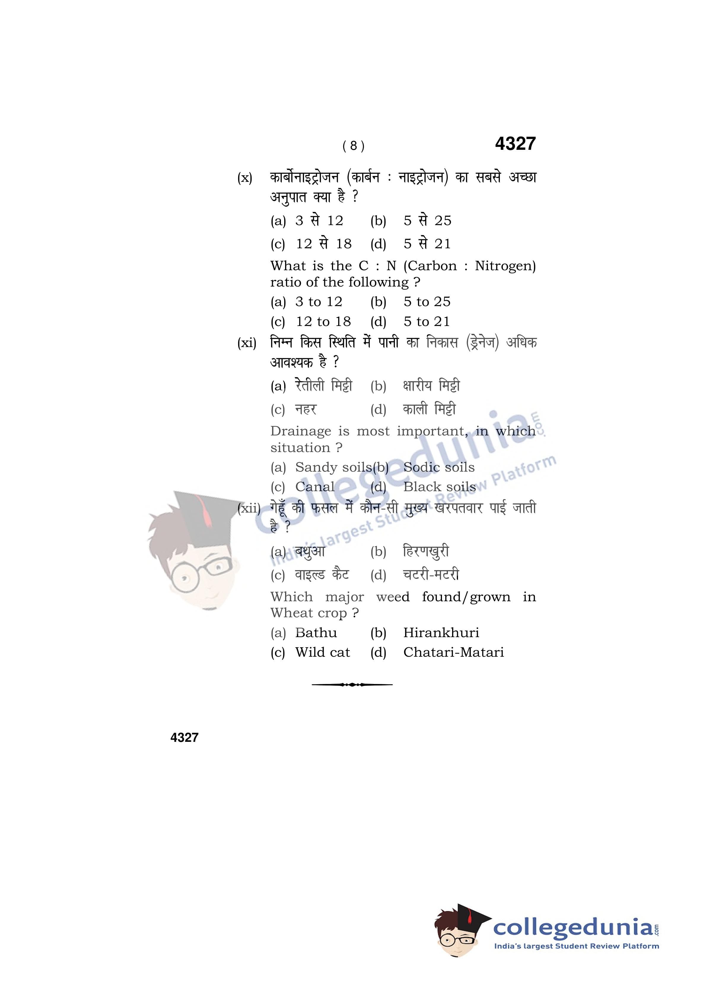 HBSE Class 12 Agriculture Question Paper 2019 with Answer Key (March 19)