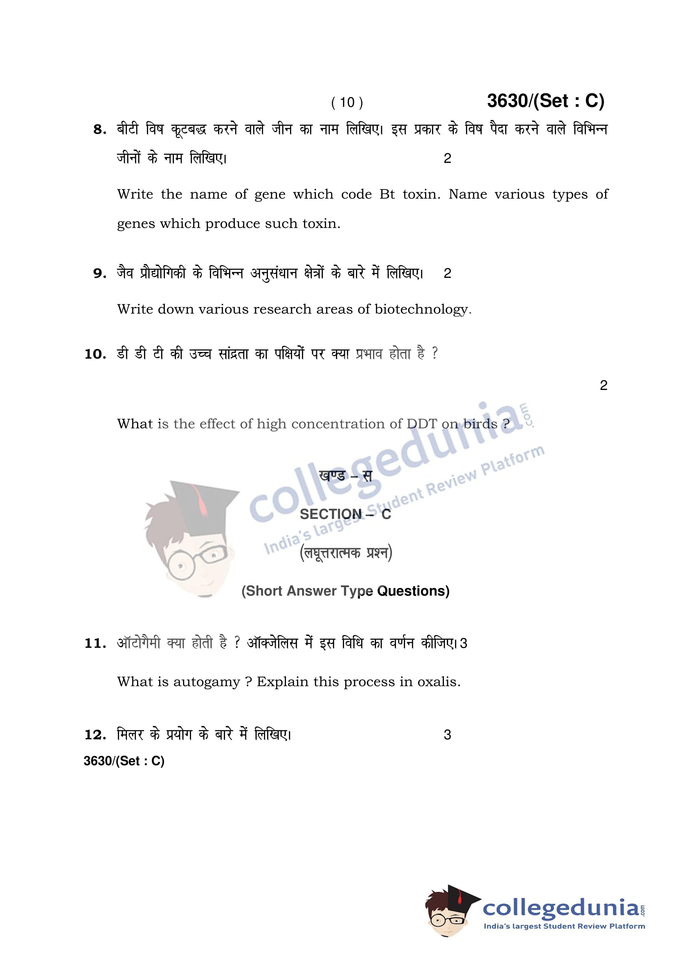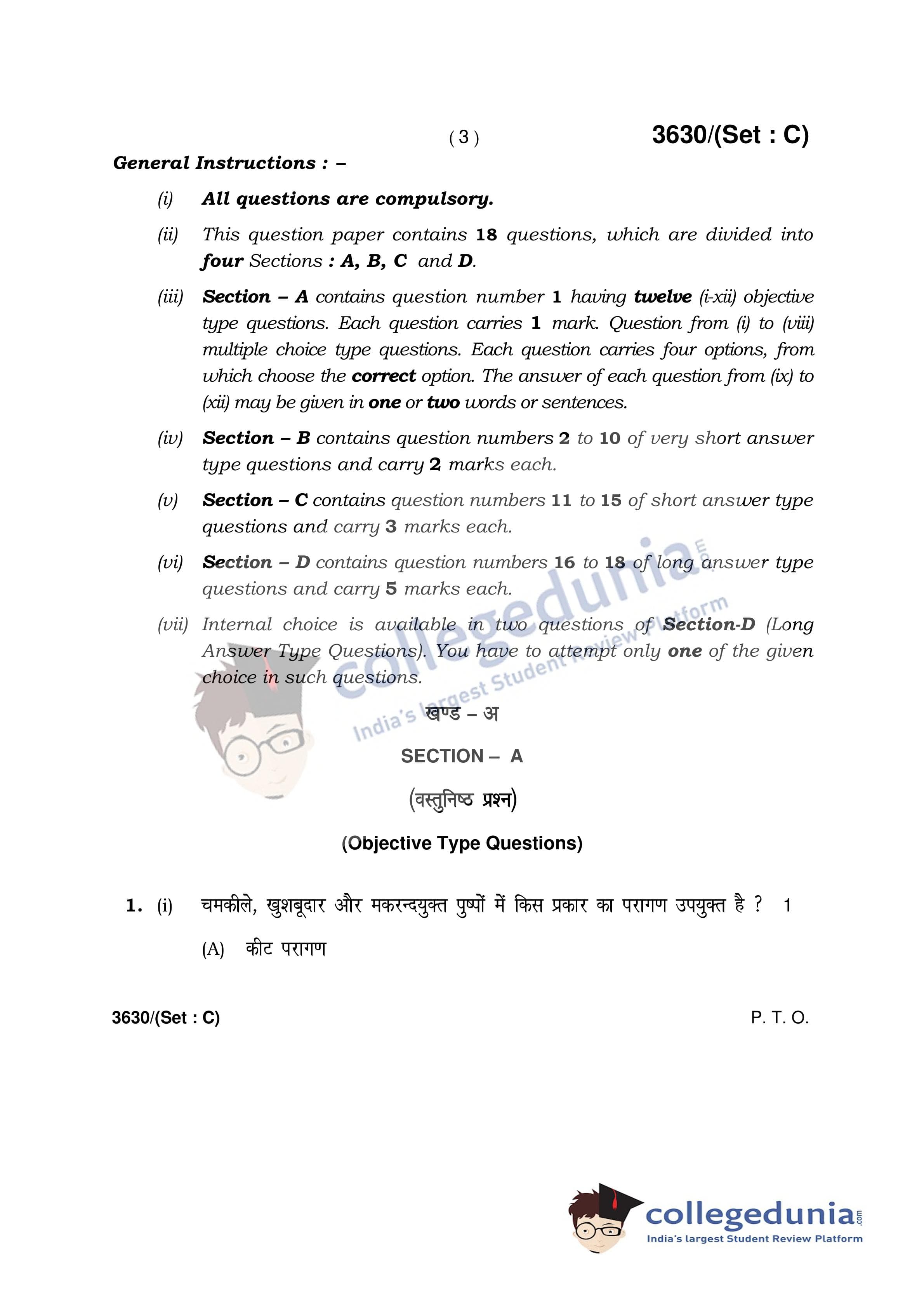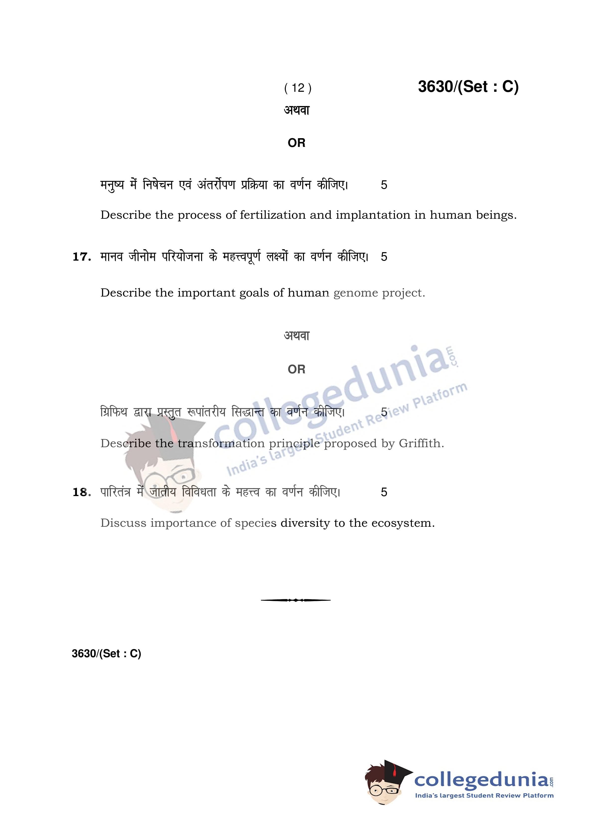 HBSE Class 12 Biology Set C Question Paper 2018 with Answer Key (March 30)