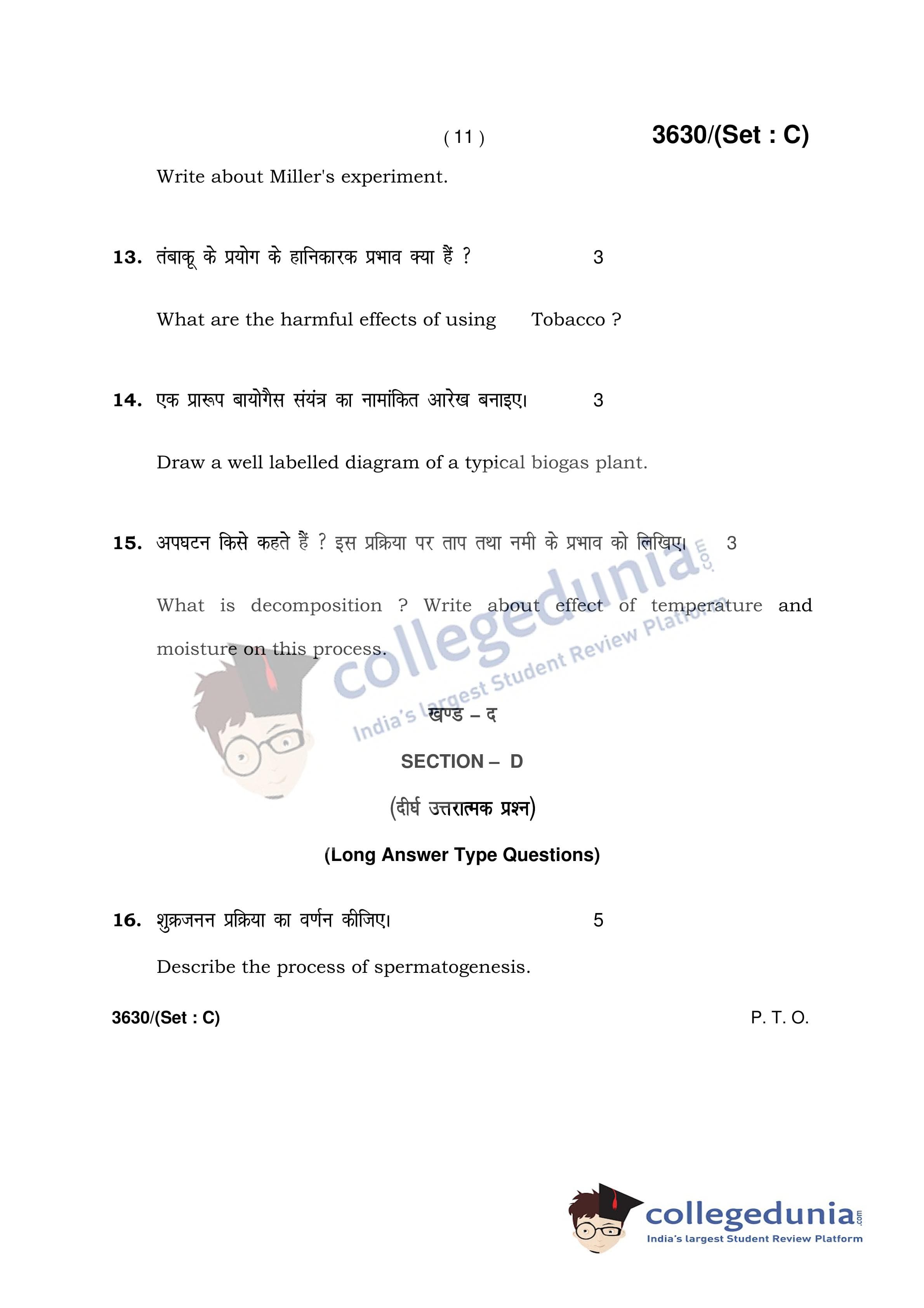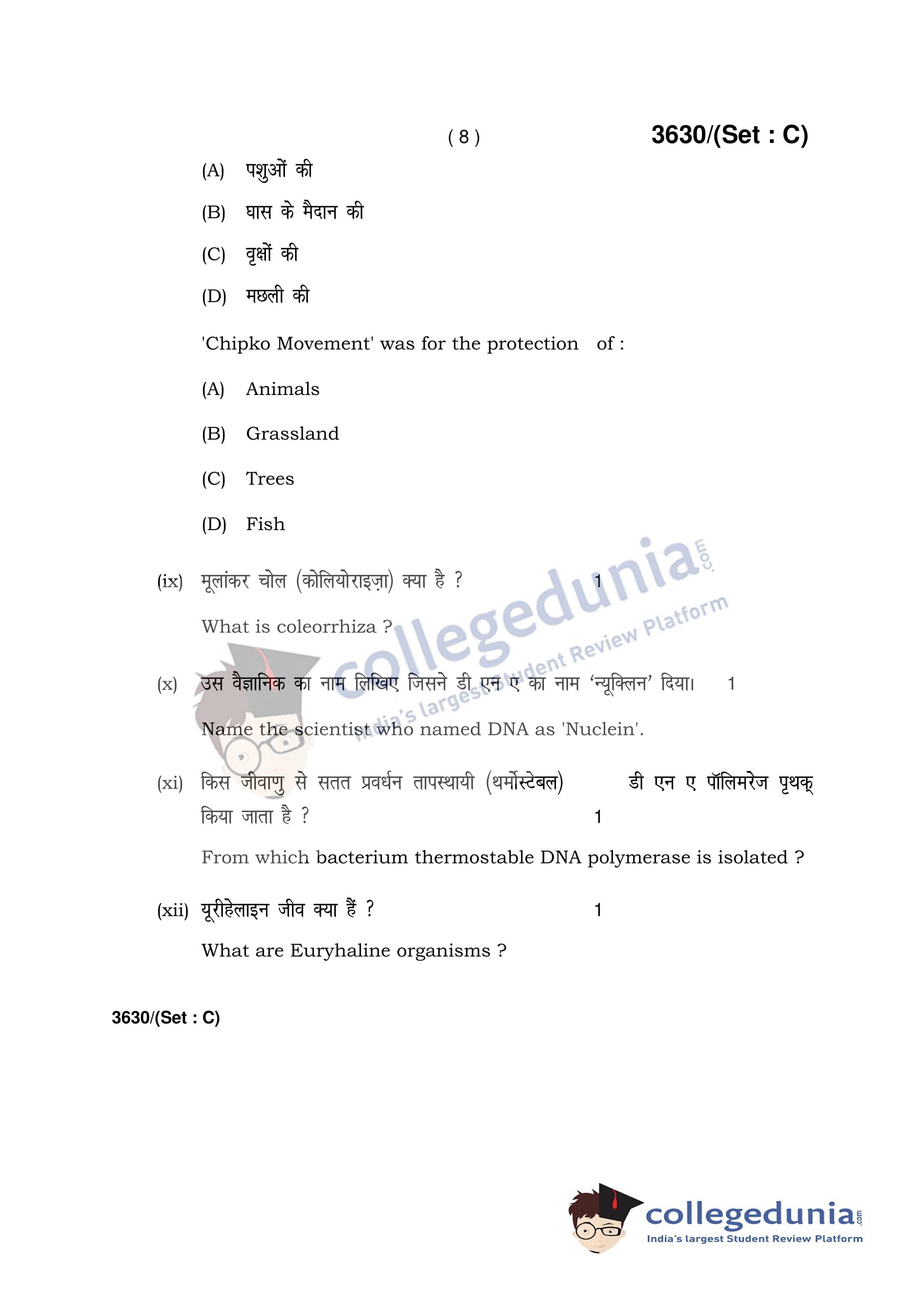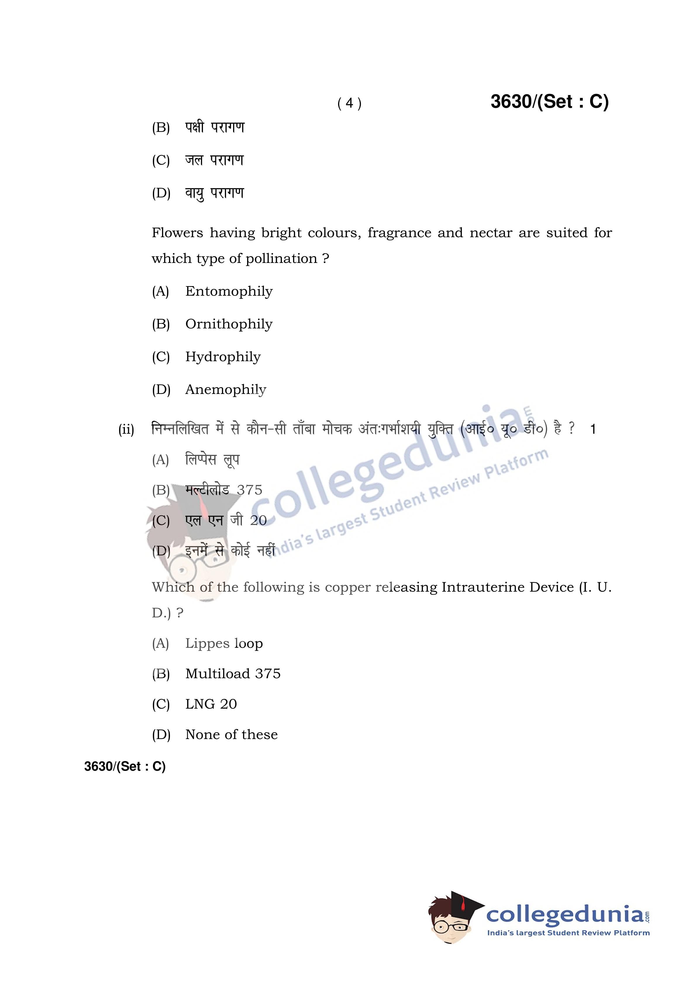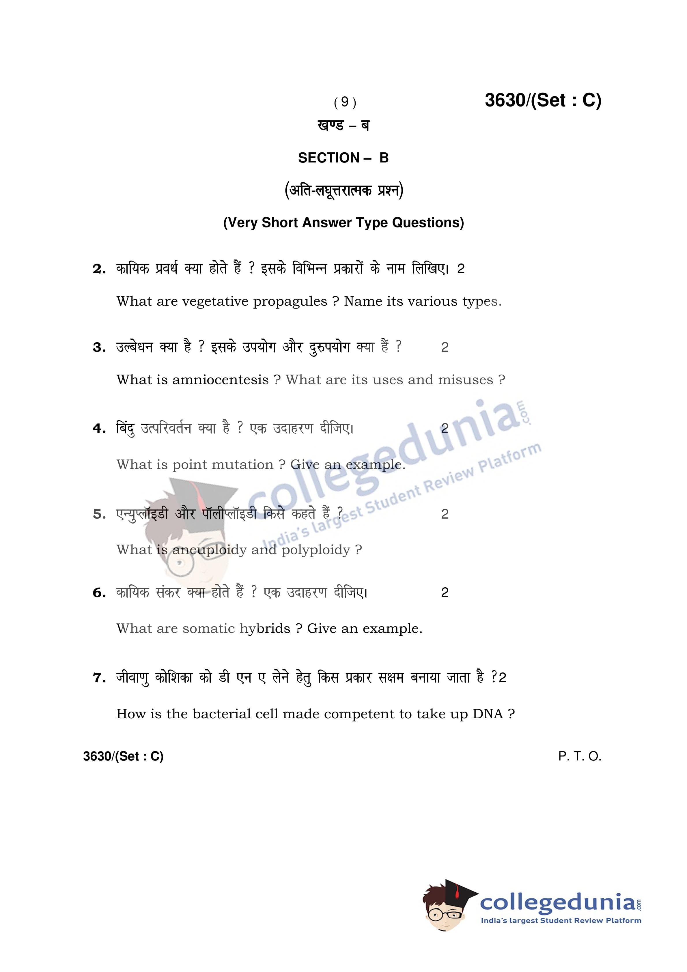 HBSE Class 12 Biology Set C Question Paper 2018 with Answer Key (March 30)