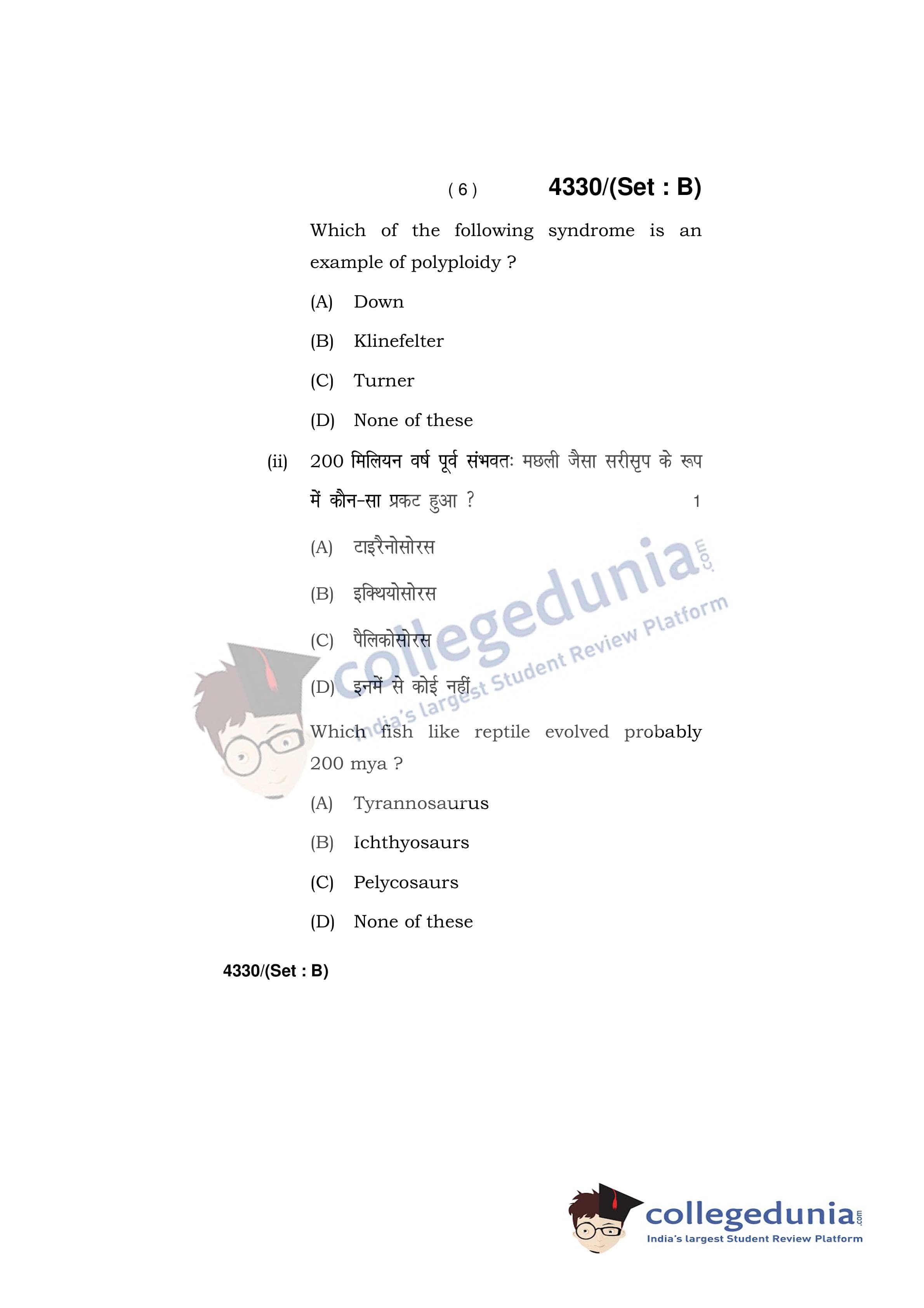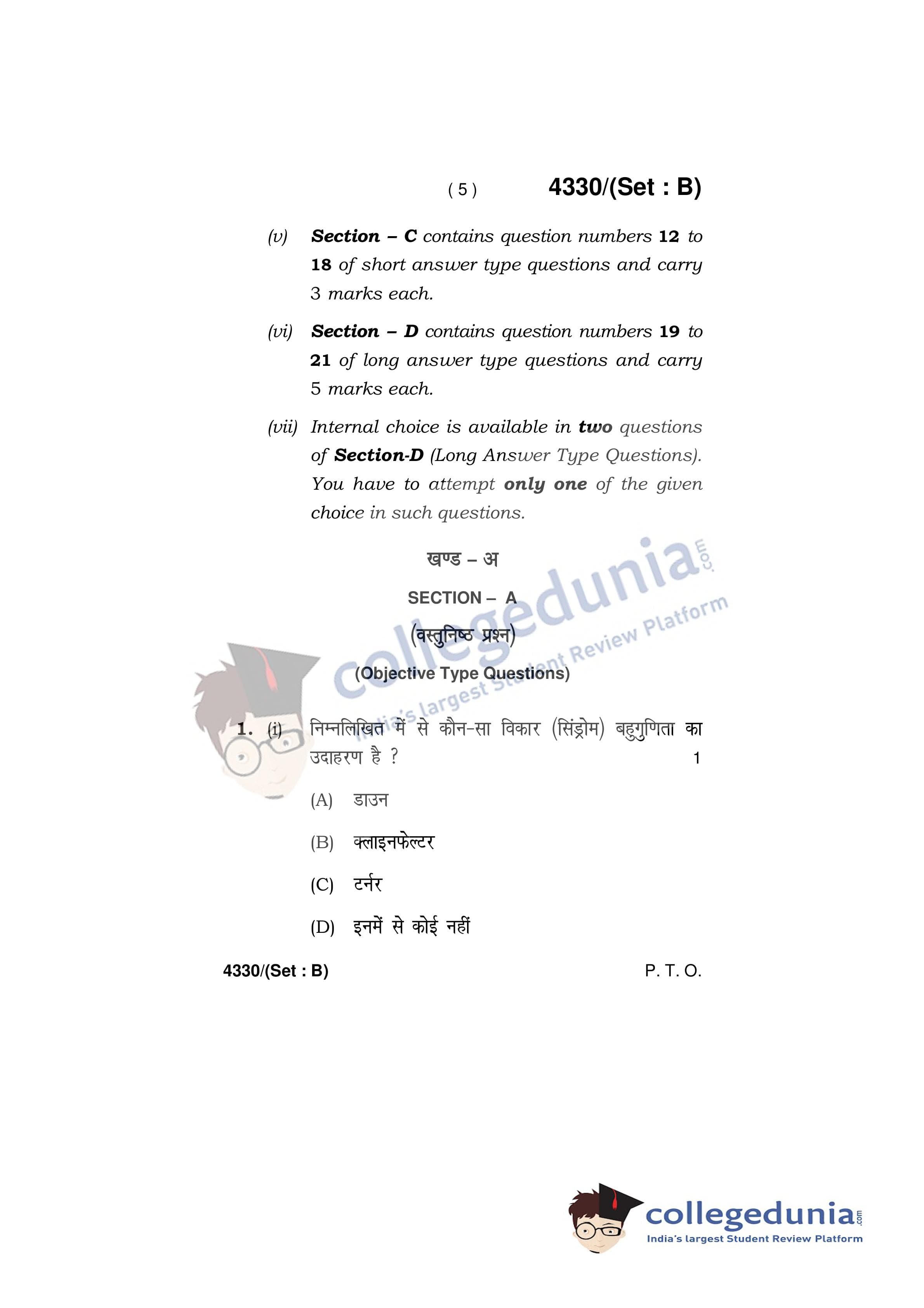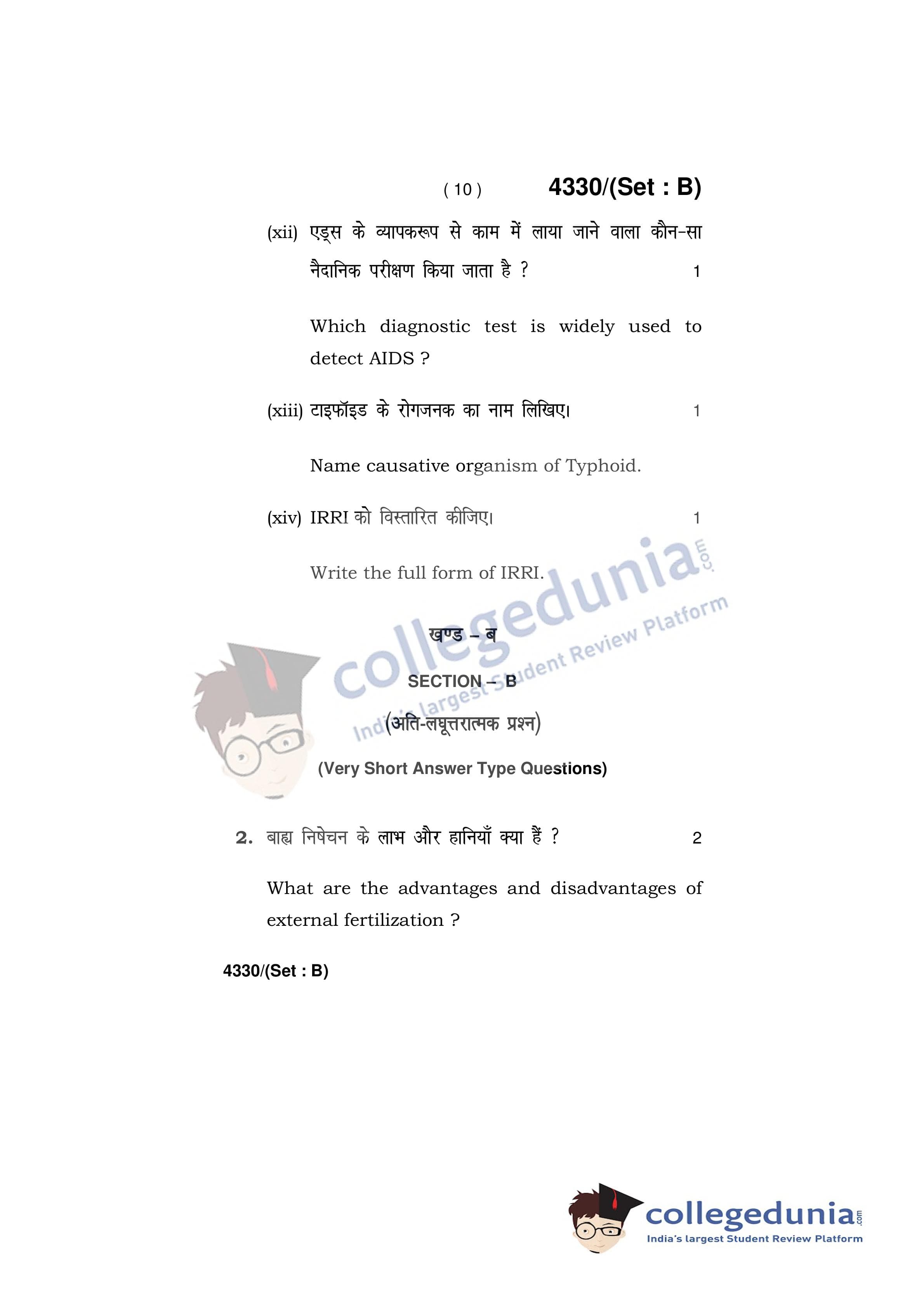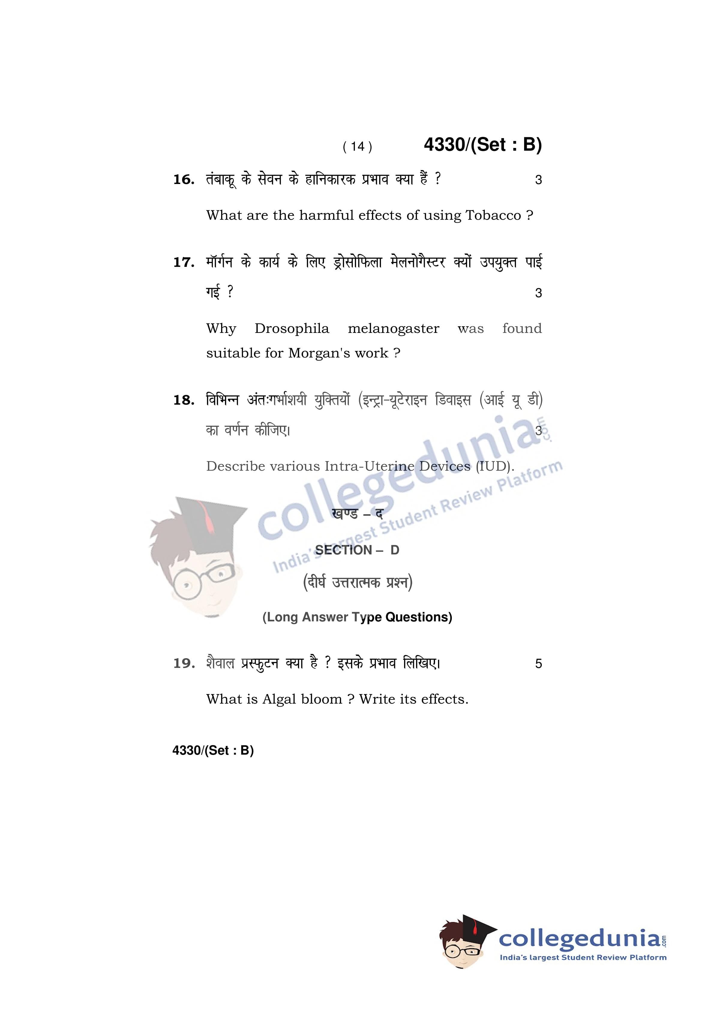 HBSE Class 12 Biology Set B Question Paper 2019 with Answer Key (March 30)