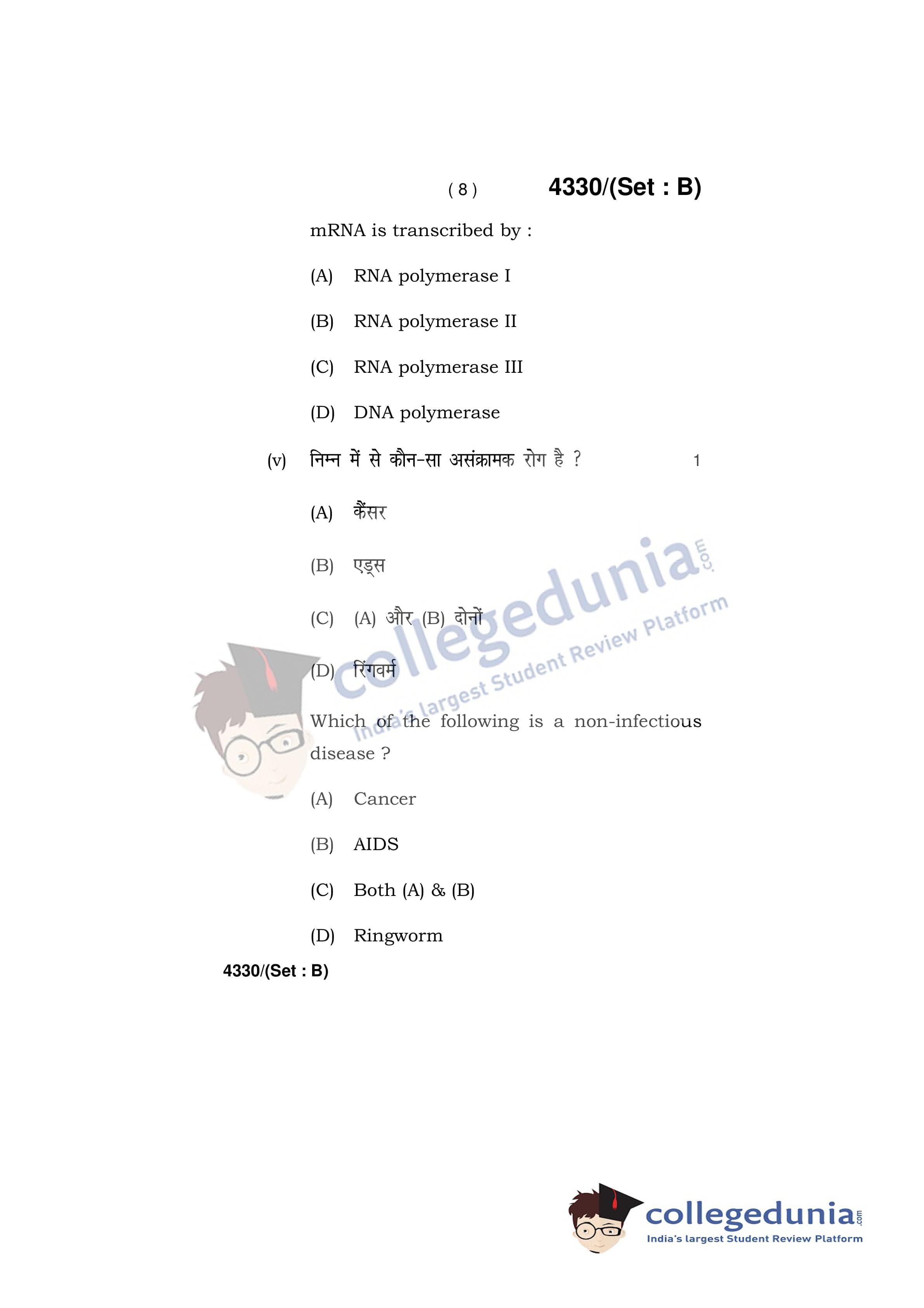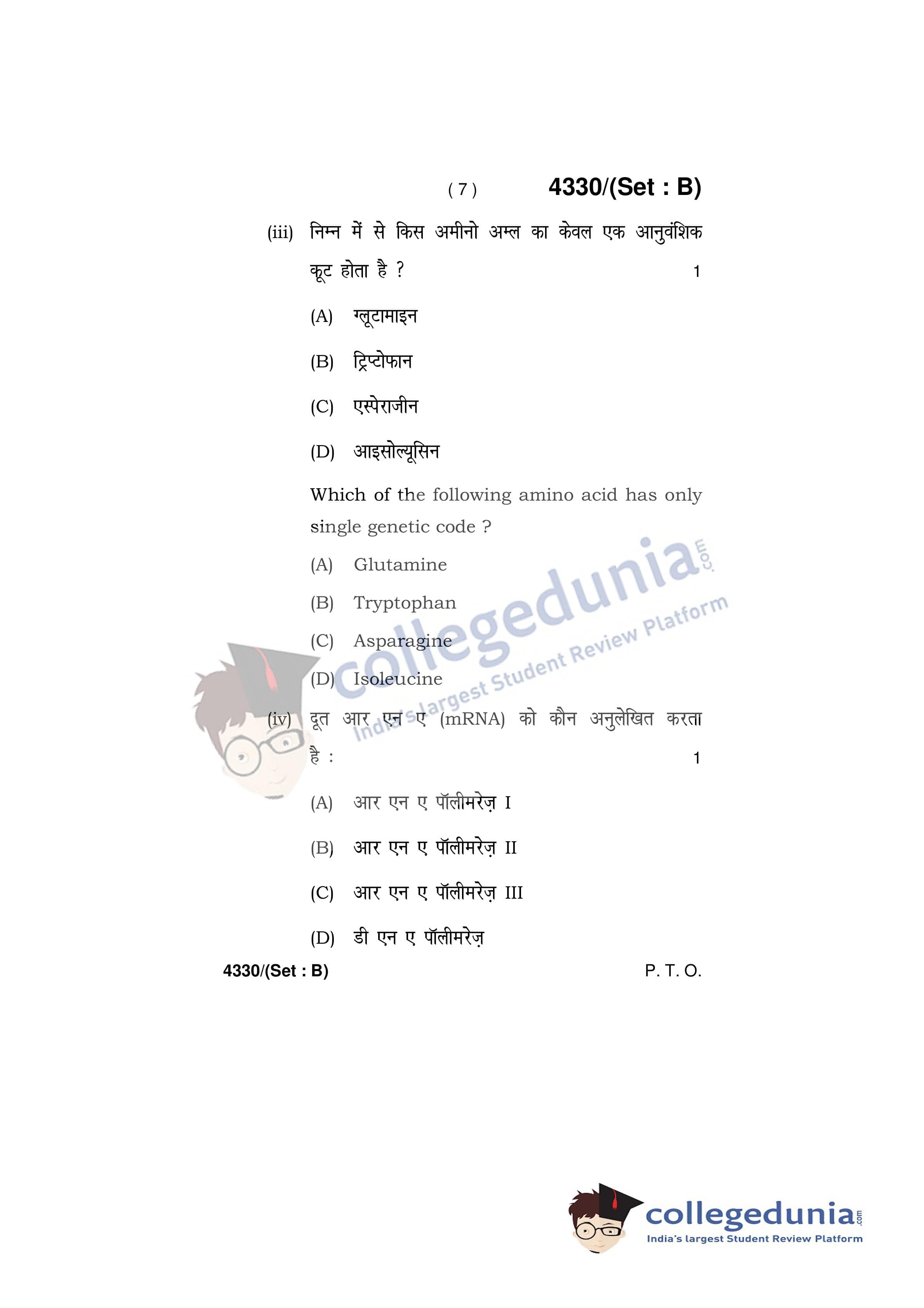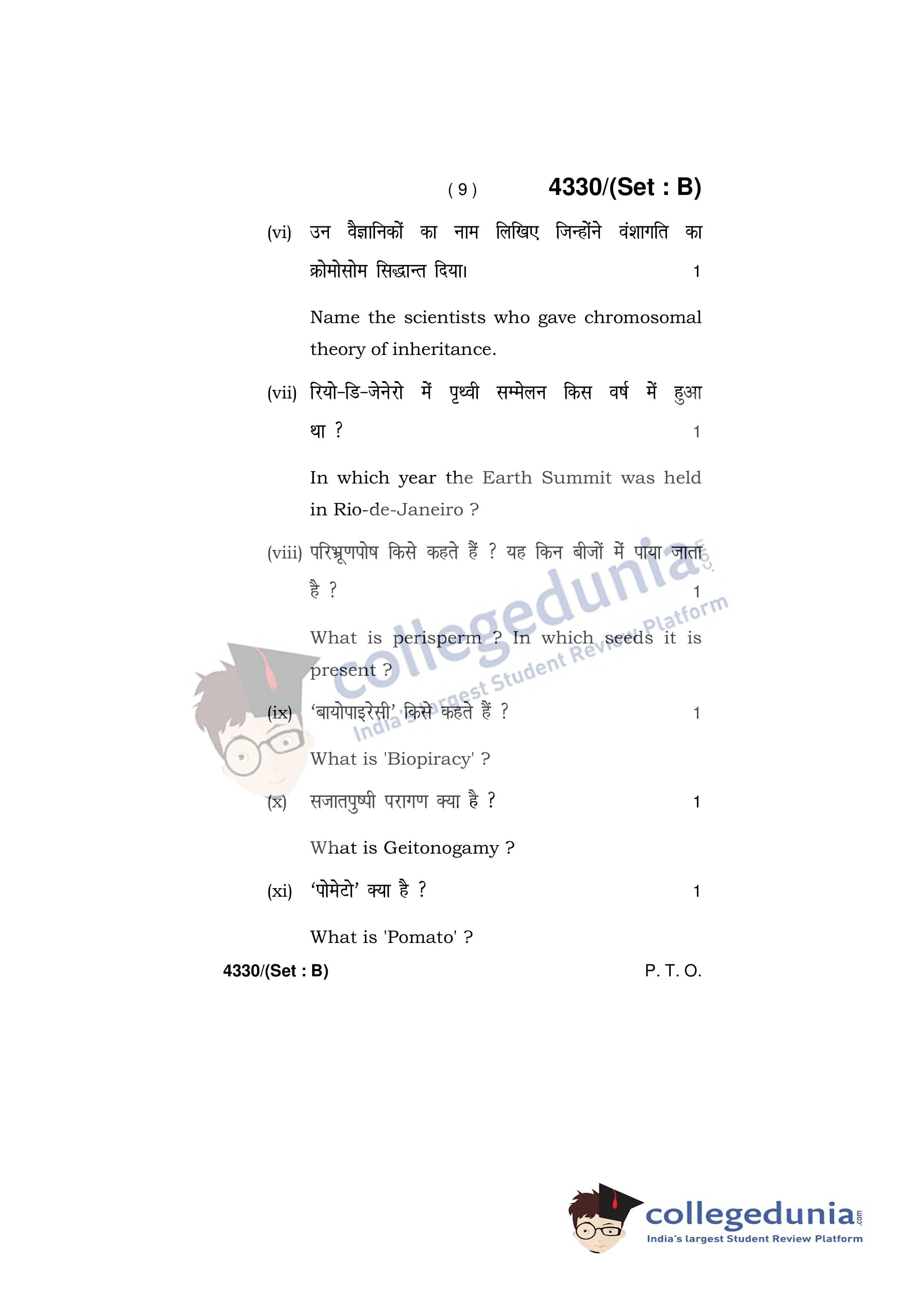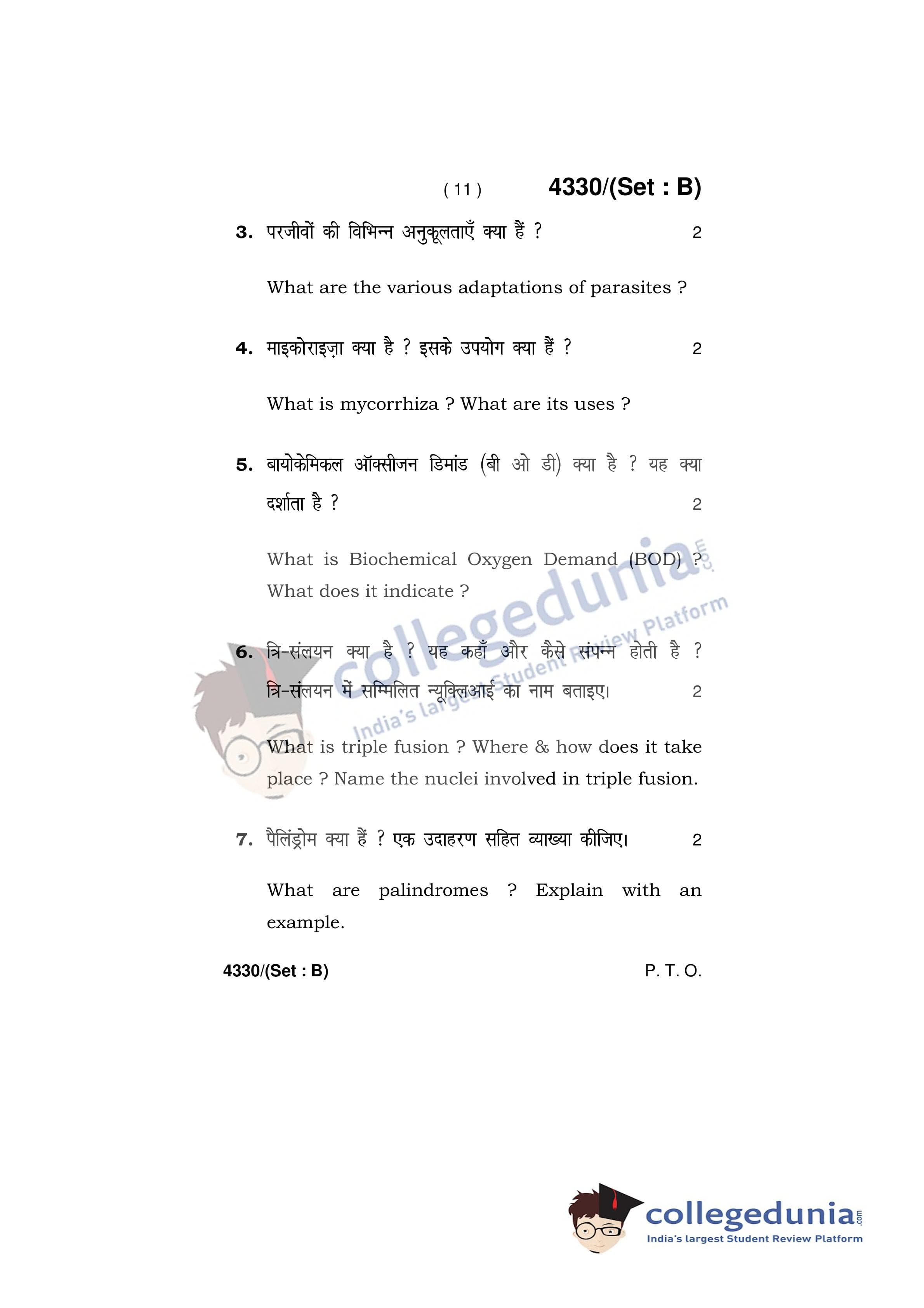 HBSE Class 12 Biology Set B Question Paper 2019 with Answer Key (March 30)