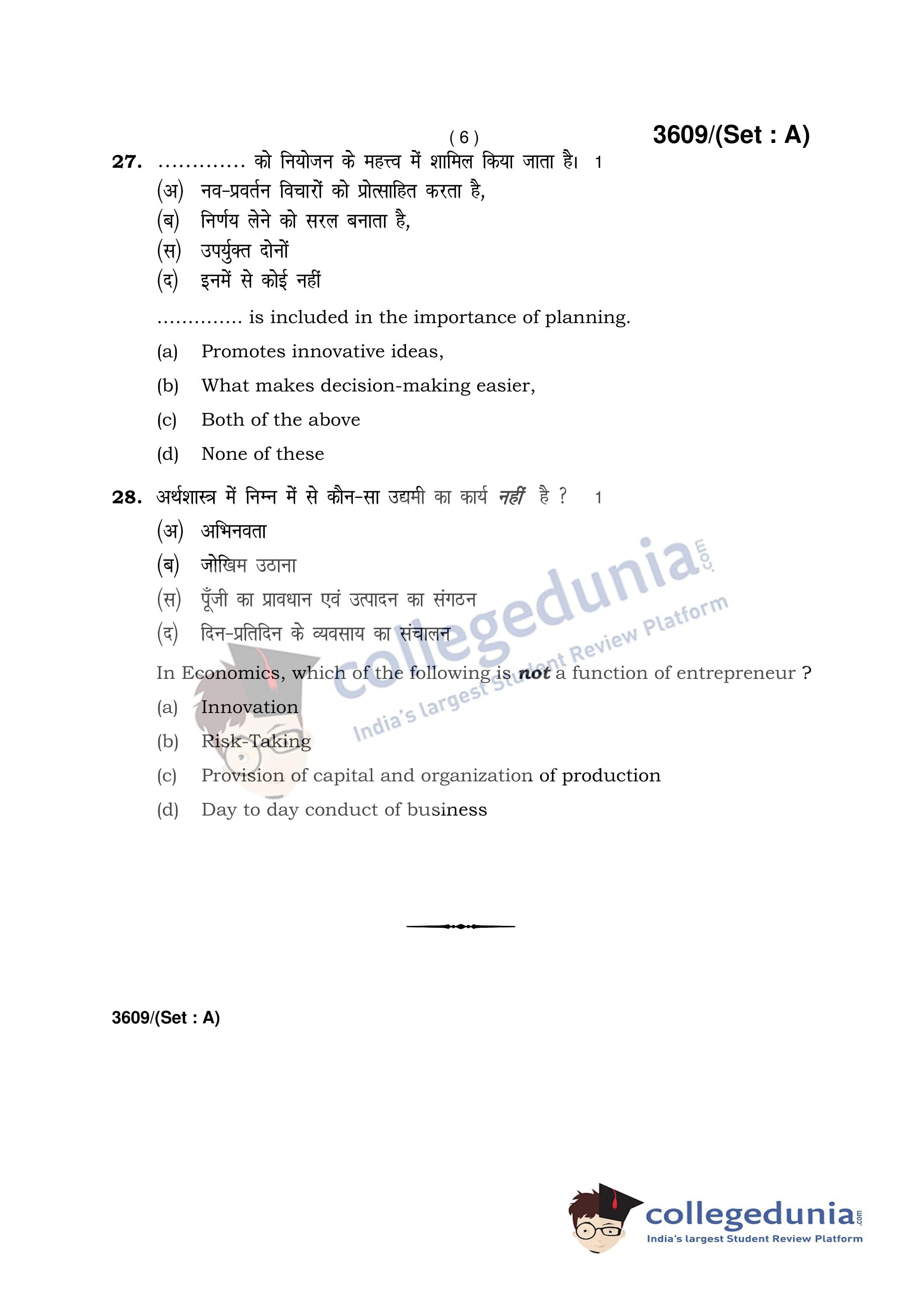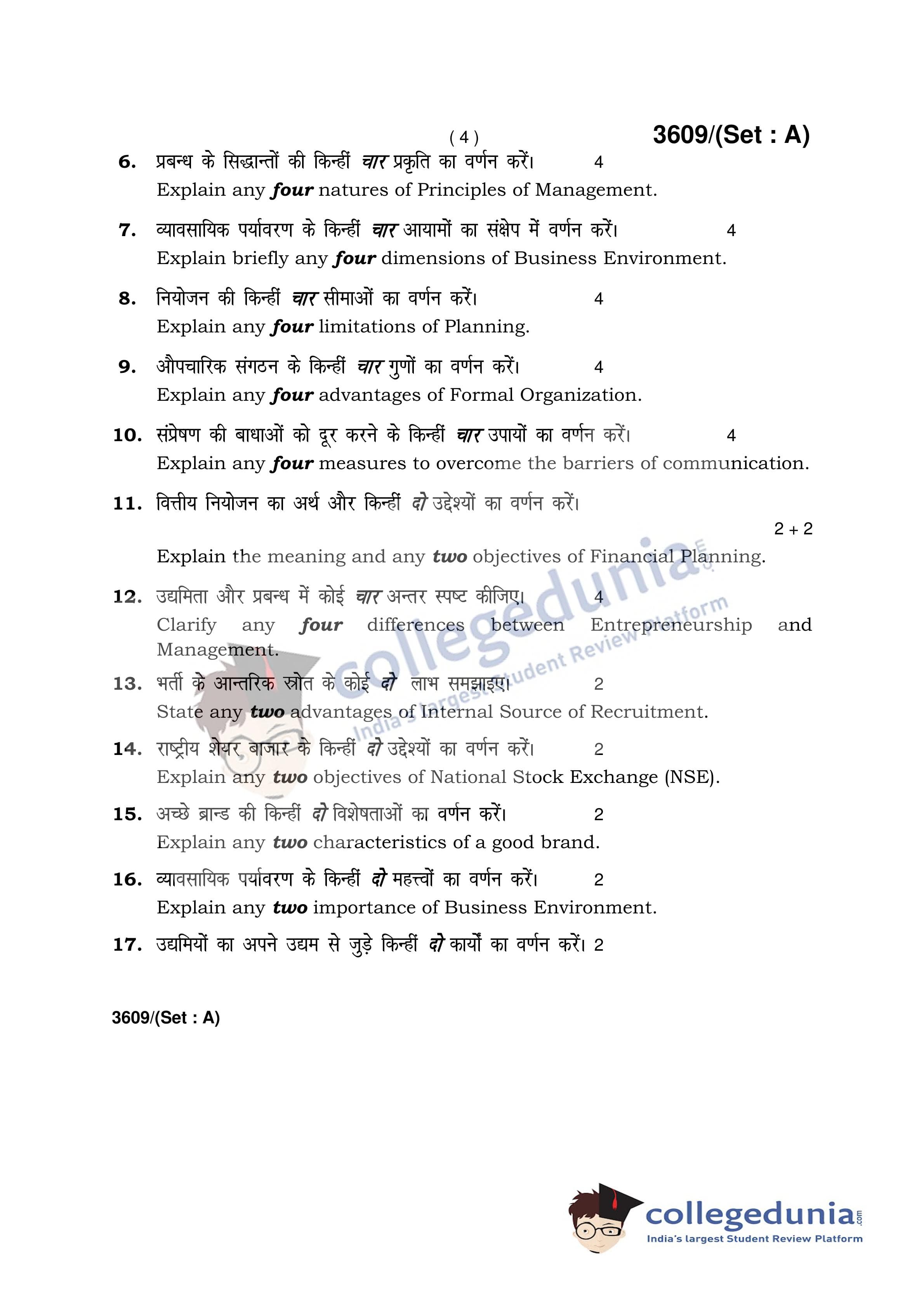 HBSE Class 12 Business Studies Question Paper 2018 with Answer Key Set A is available for download. The exam was conducted by the Board of School Education Haryana on March 26, 2018 in the Afternoon Session 12:30 PM to 3:30 PM. The medium of paper was English and Hindi. The question paper comprised a total of 28 questions.