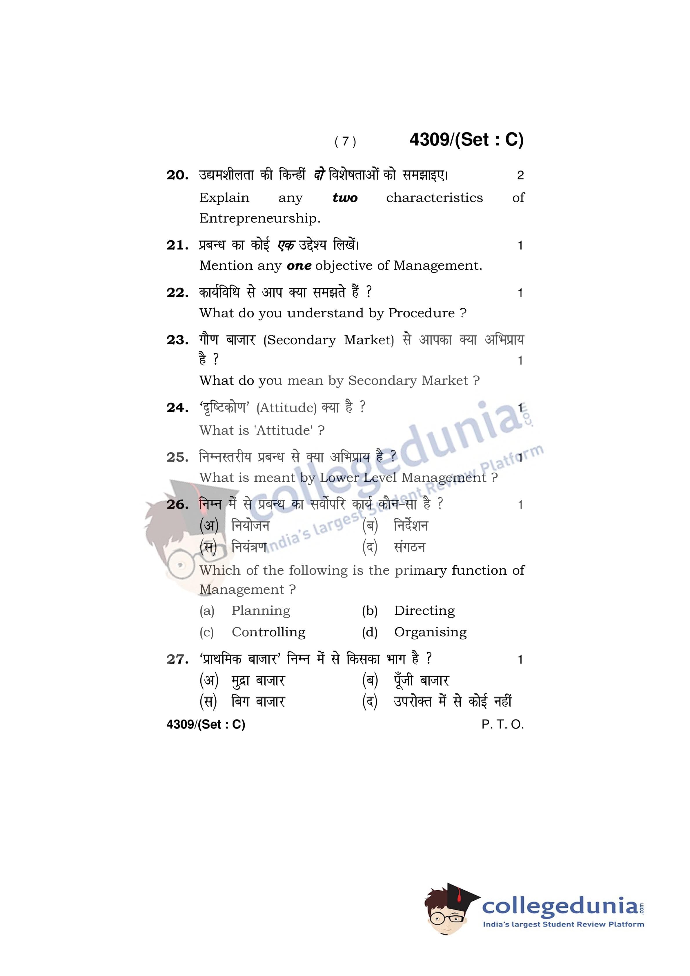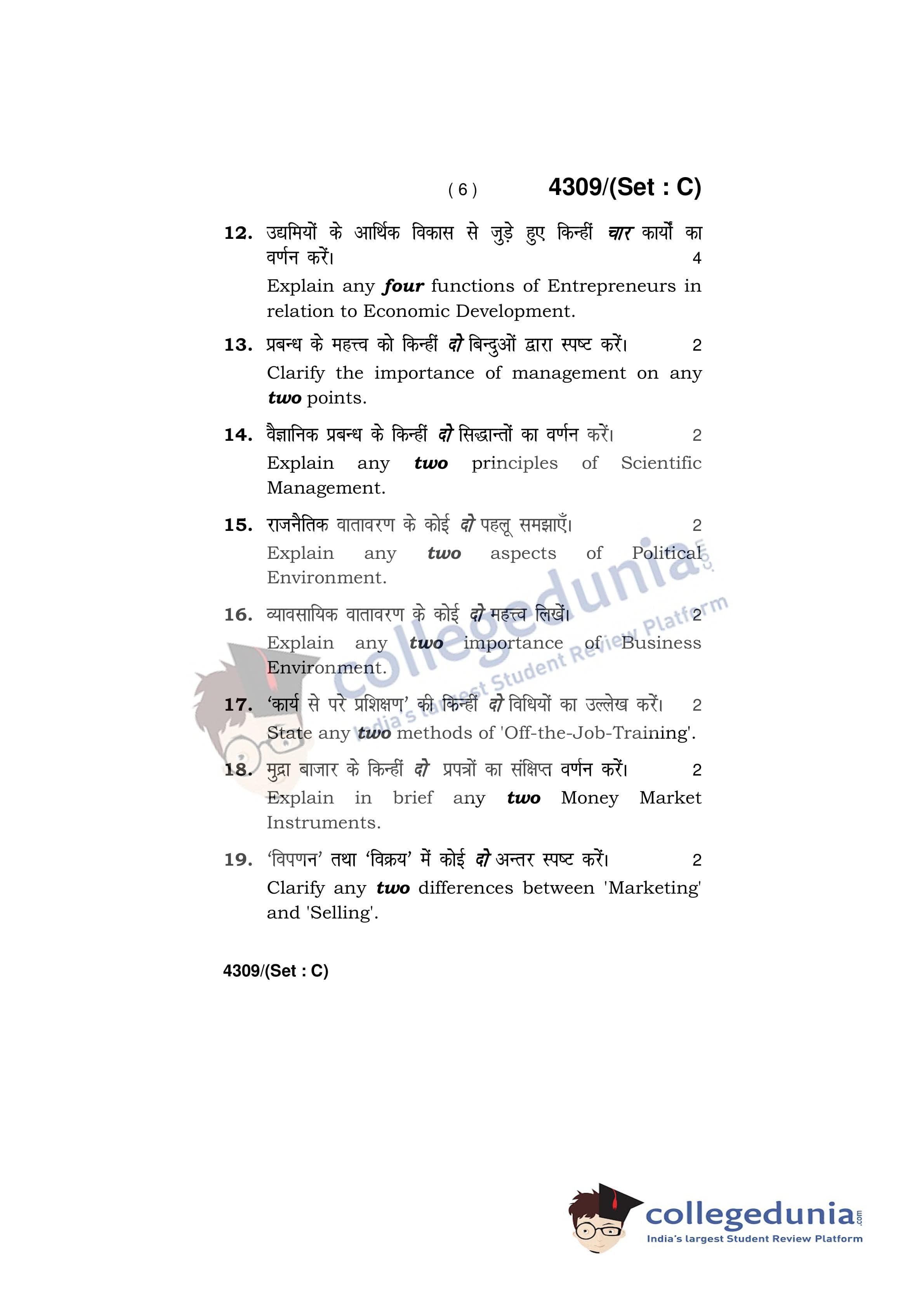 HBSE Class 12 Business Studies Question Paper 2019 with Answer Key Set C is available for download. The exam was conducted by the Board of School Education Haryana on March 30, 2019 in the Afternoon Session 12:30 PM to 3:30 PM. The medium of paper was English and Hindi. The question paper comprised a total of 28 questions.