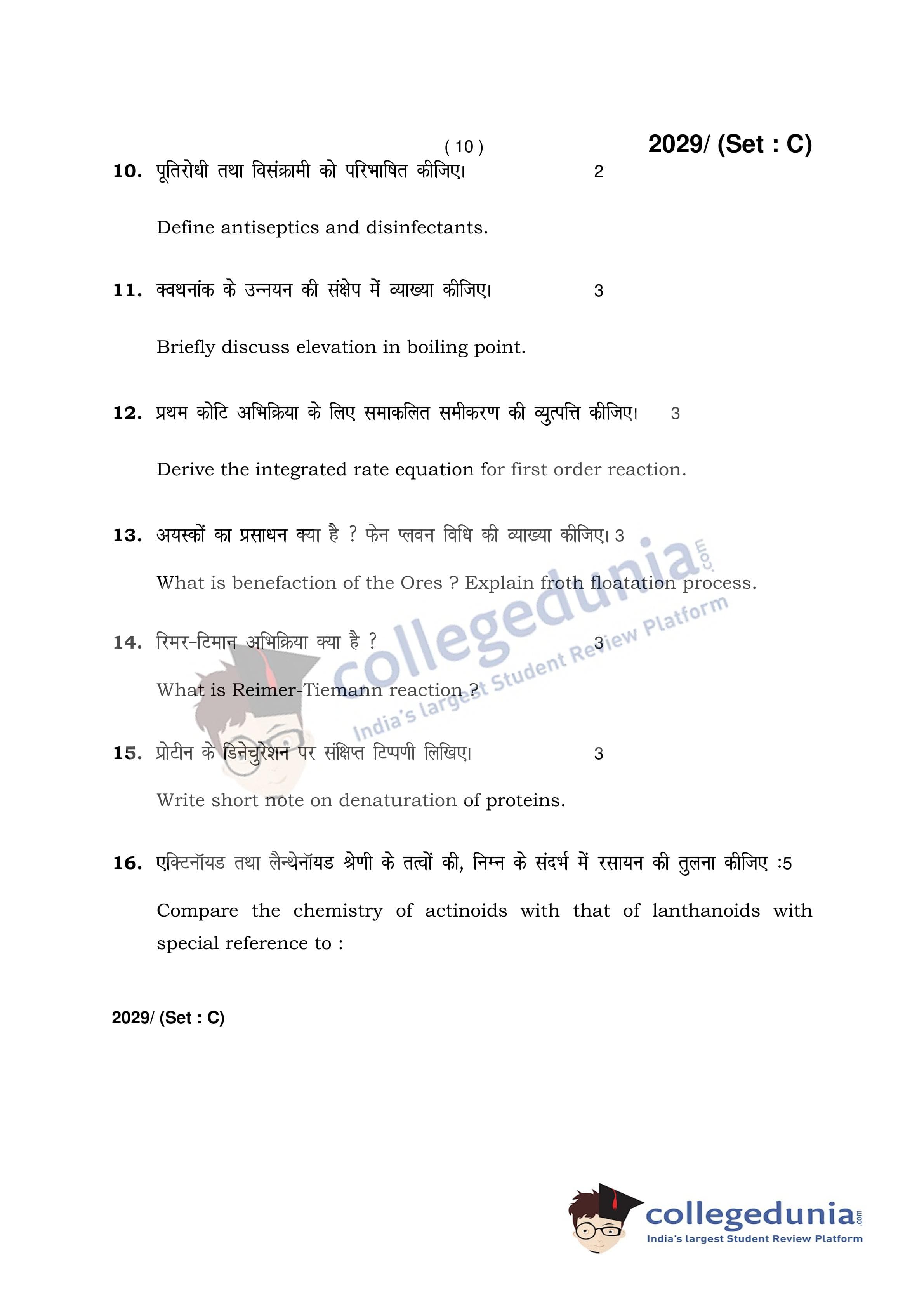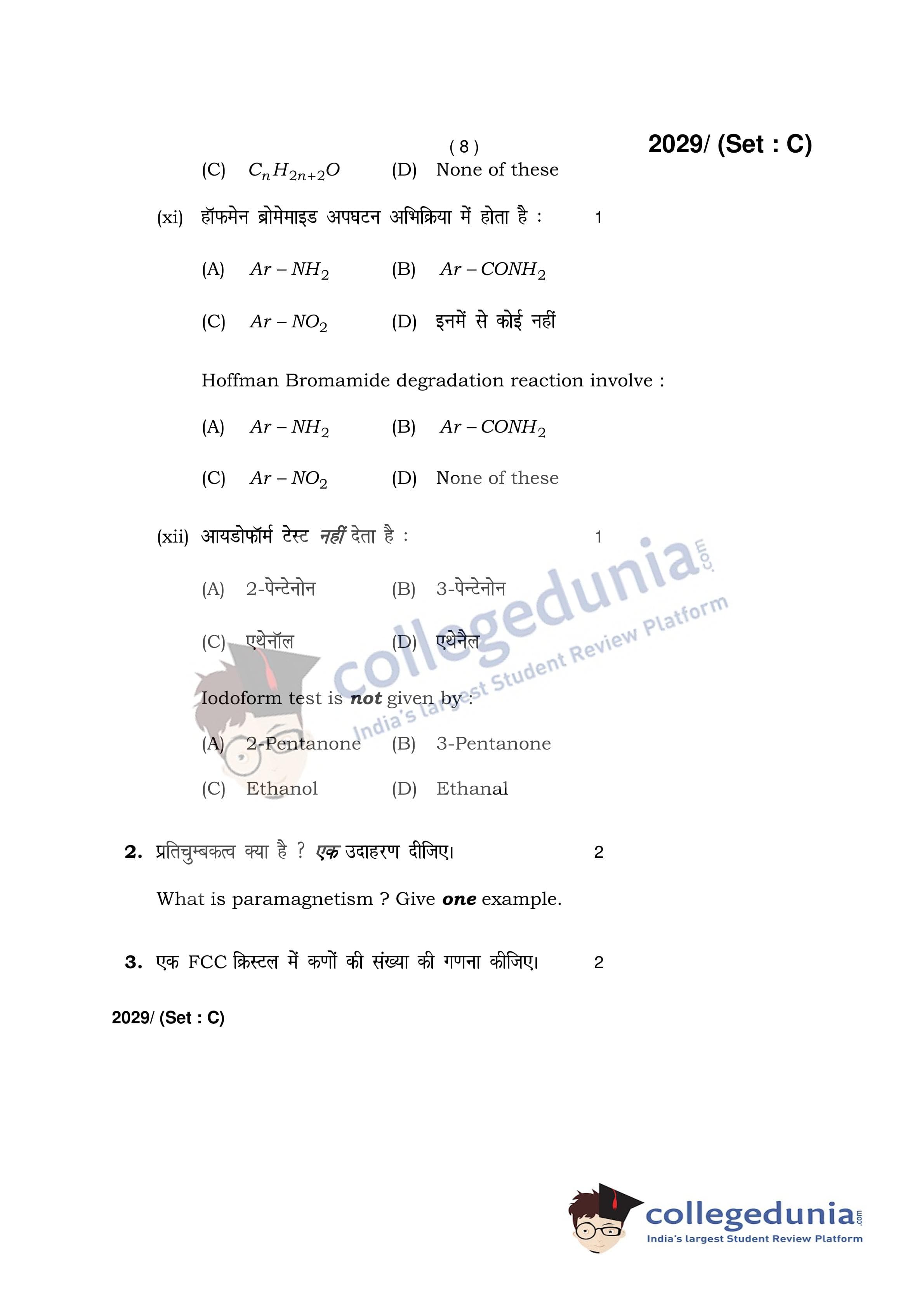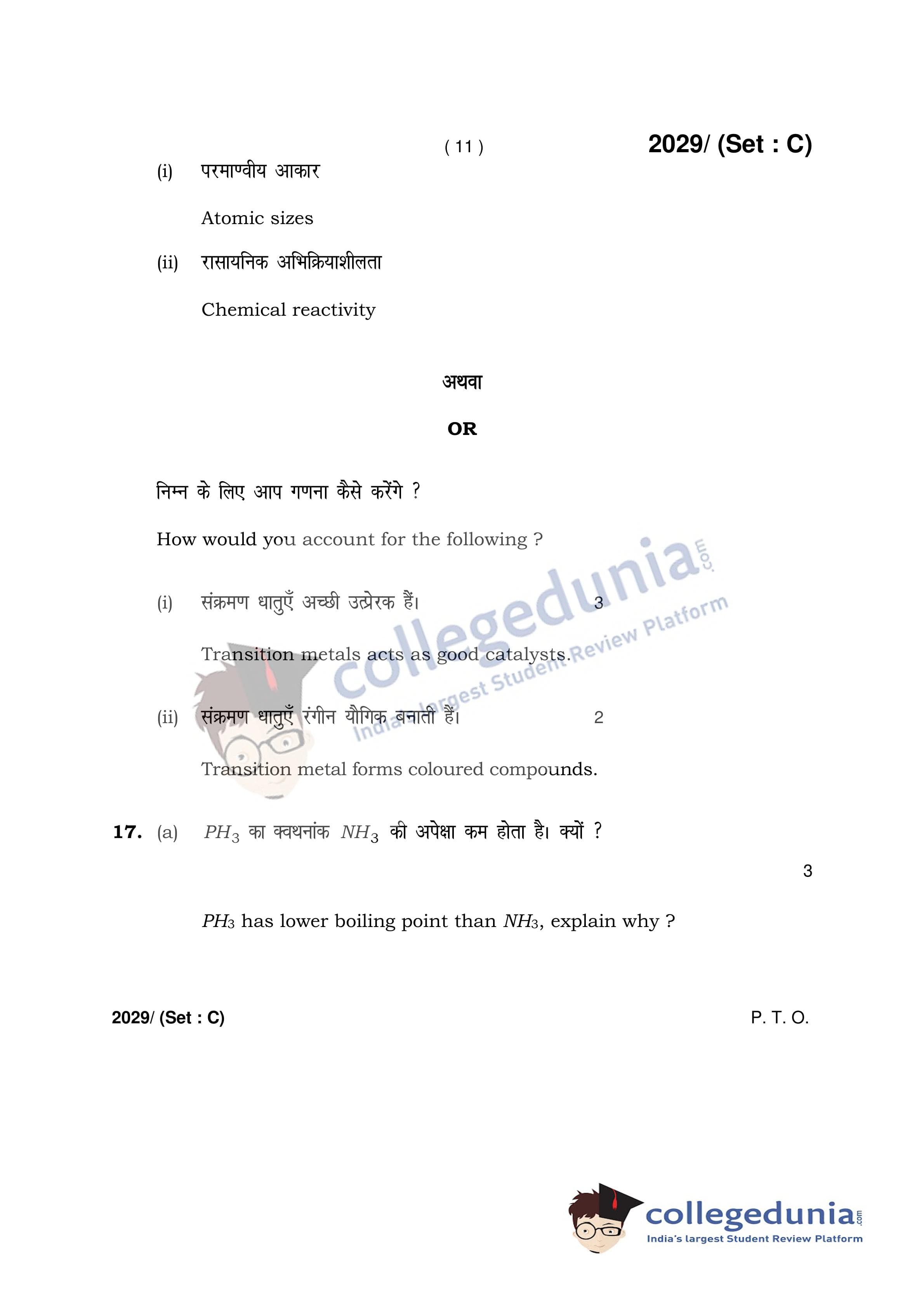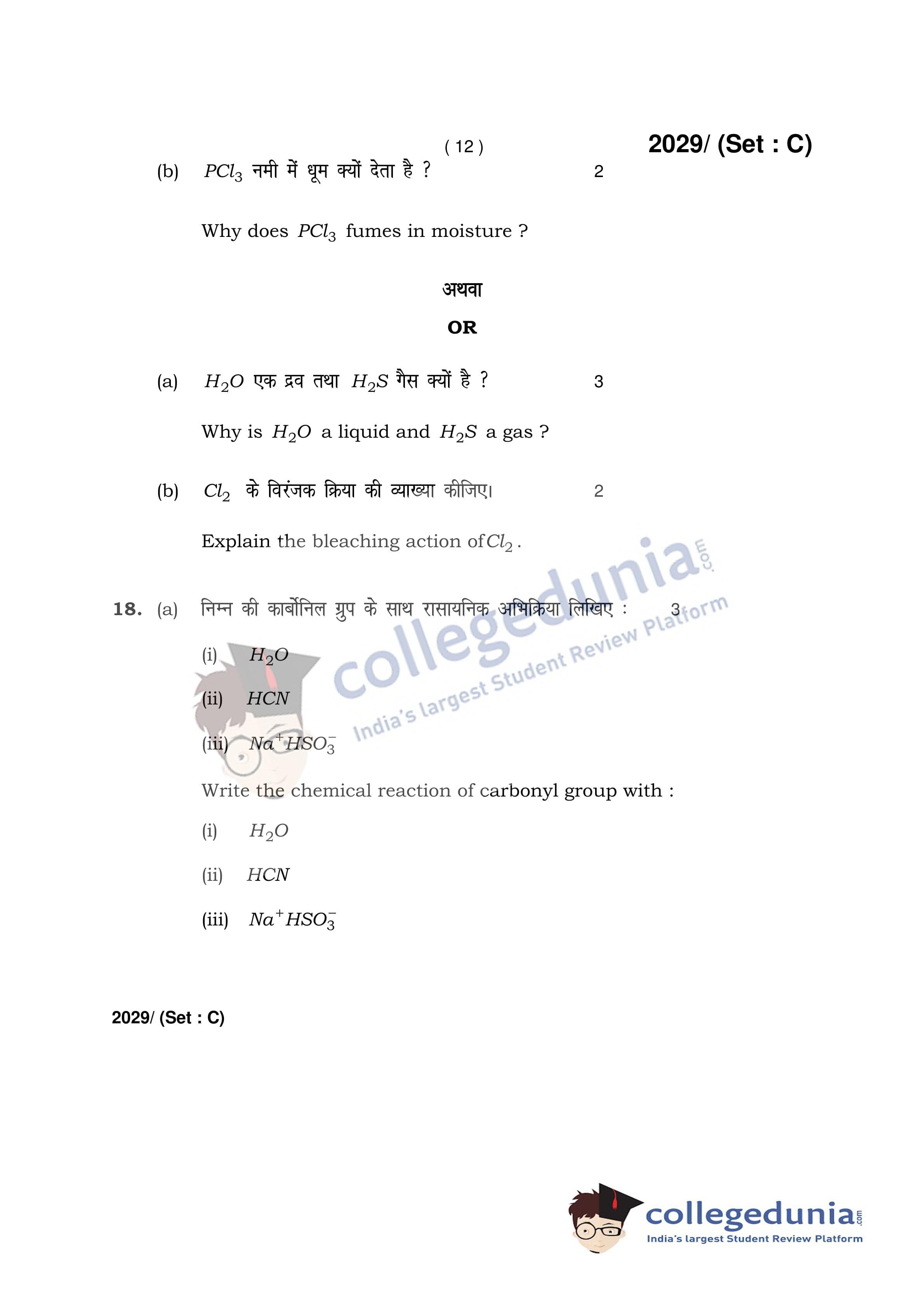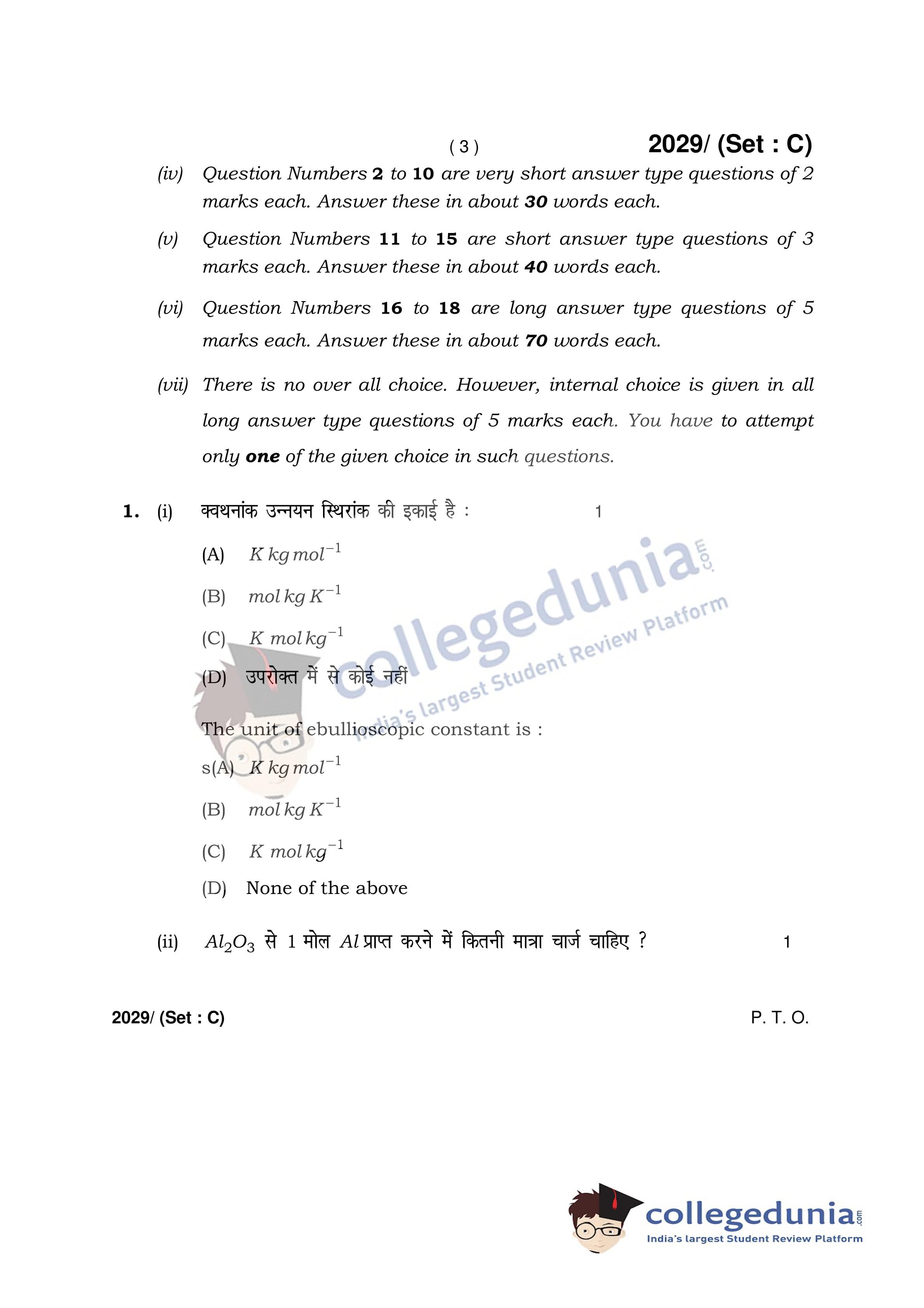 HBSE Class 12 Chemistry Set C Question Paper 2017 with Answer Key (April 3)