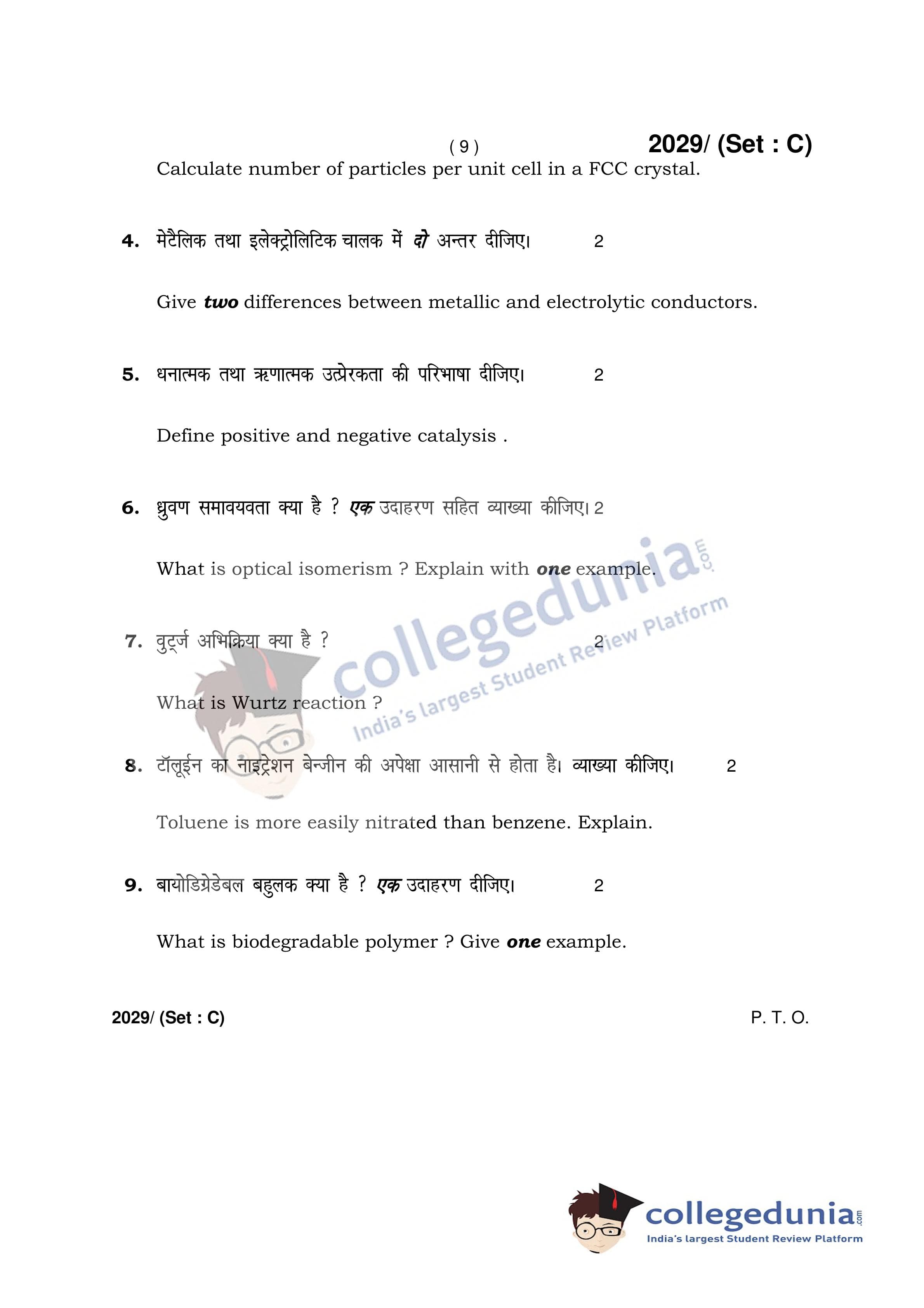 HBSE Class 12 Chemistry Question Paper 2017 with Answer Key Set C is available for download. The exam was conducted by the Board of School Education Haryana on April 3, 2017 in the Afternoon Session 2 PM to 4:30 PM. The medium of paper was English and Hindi. The question paper comprised a total of 18 questions.