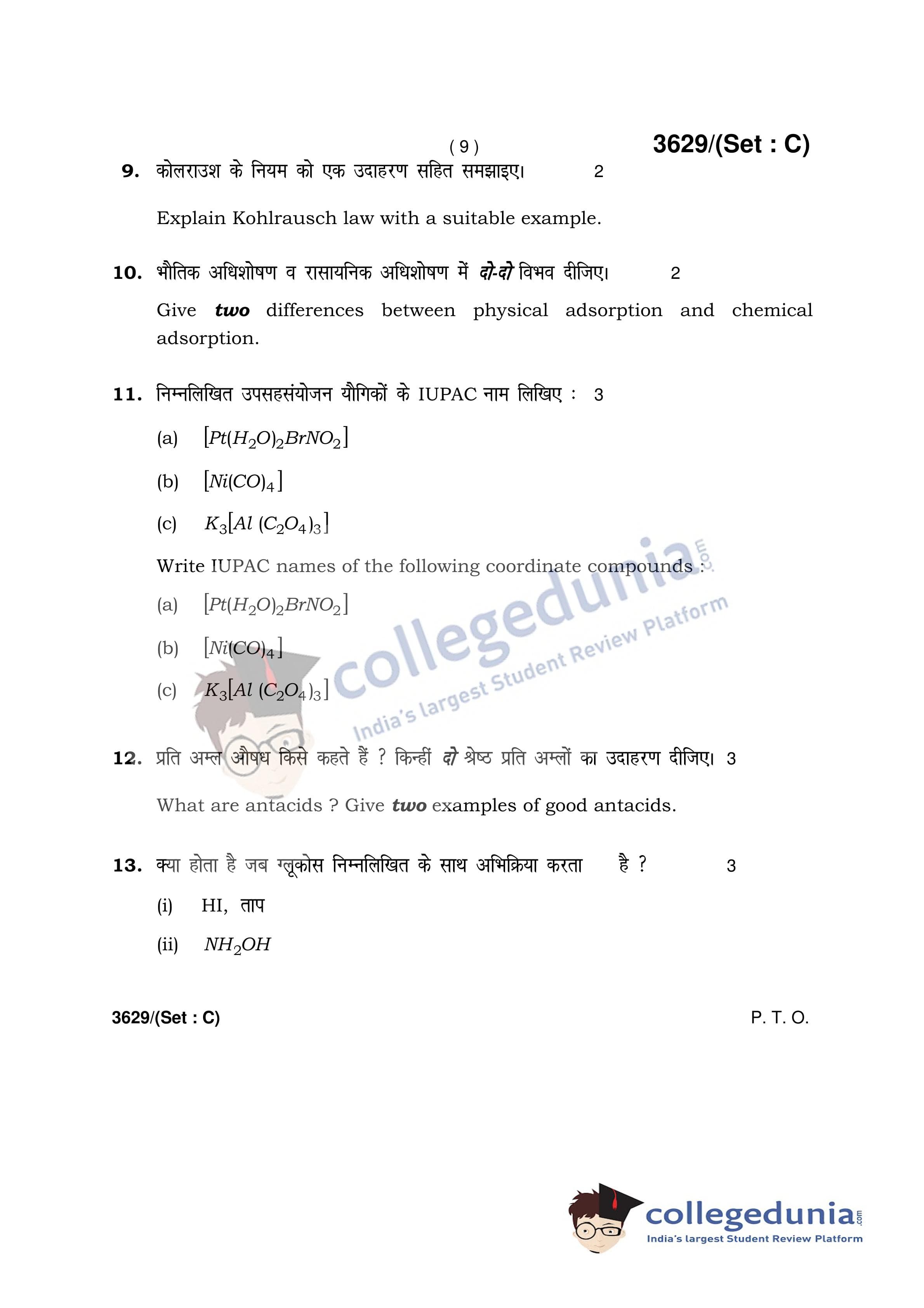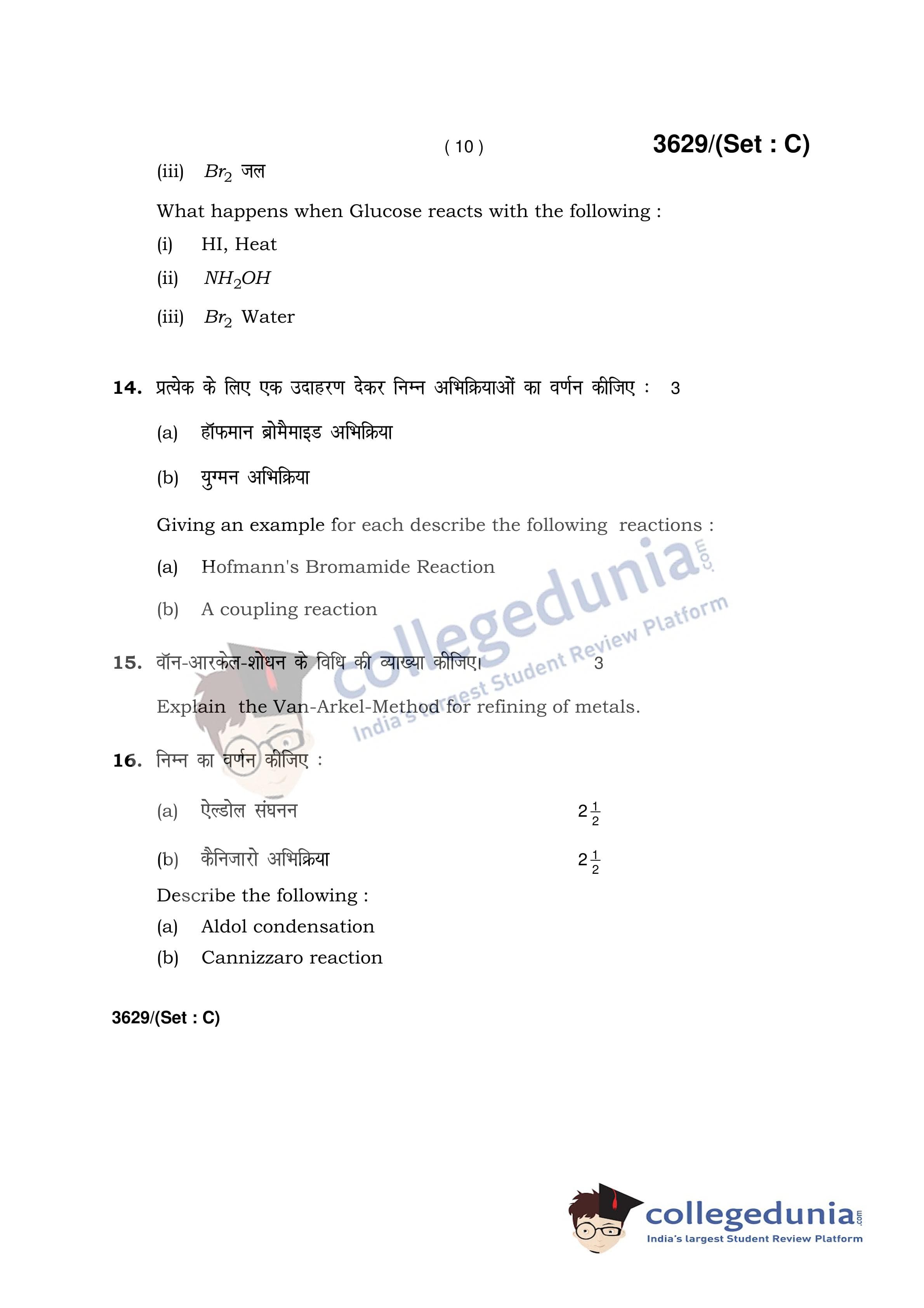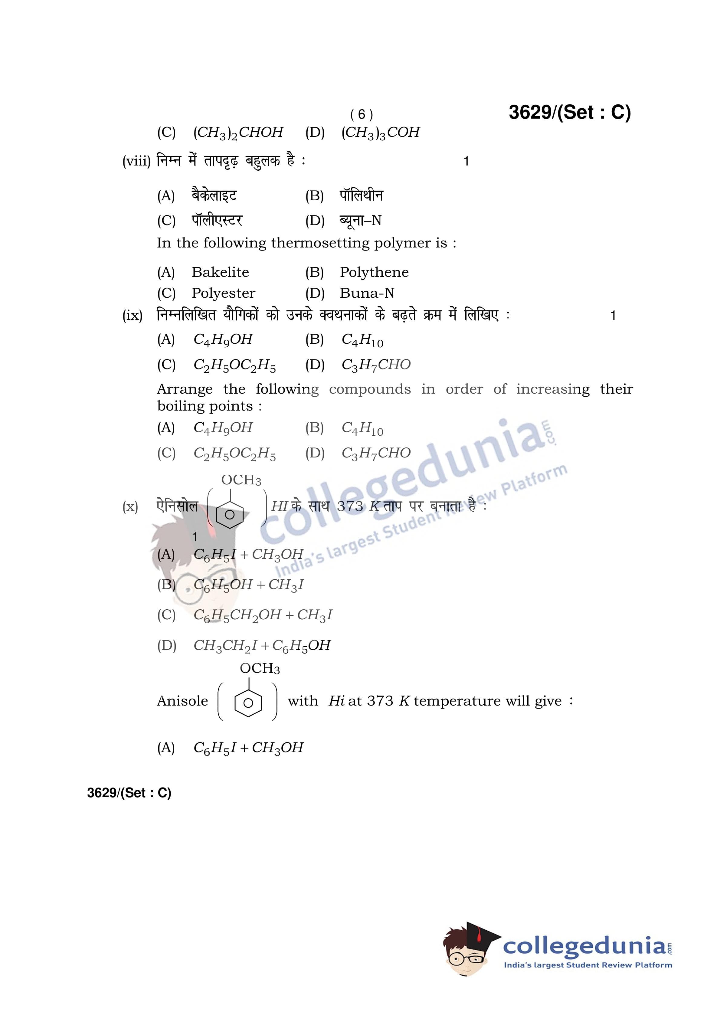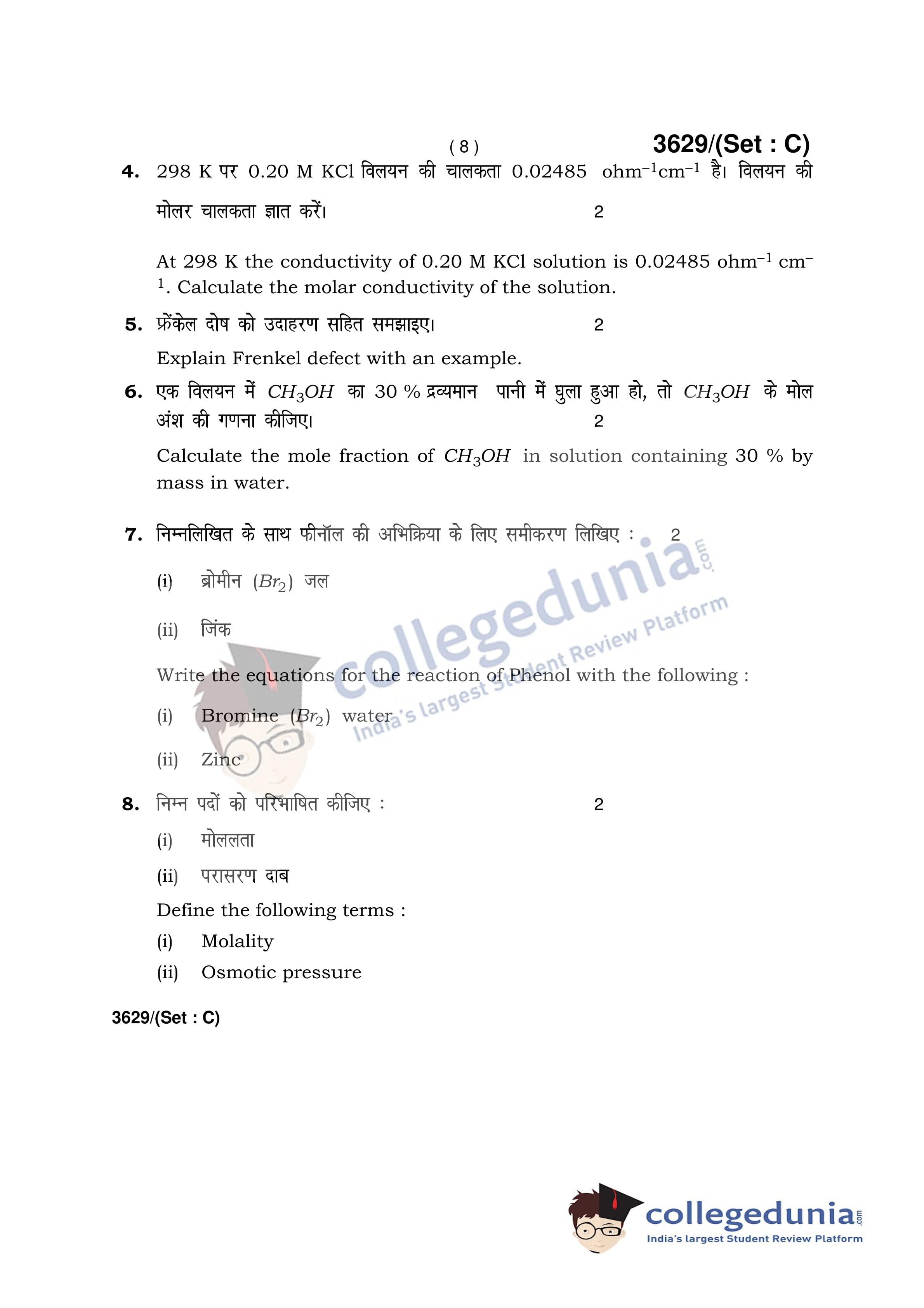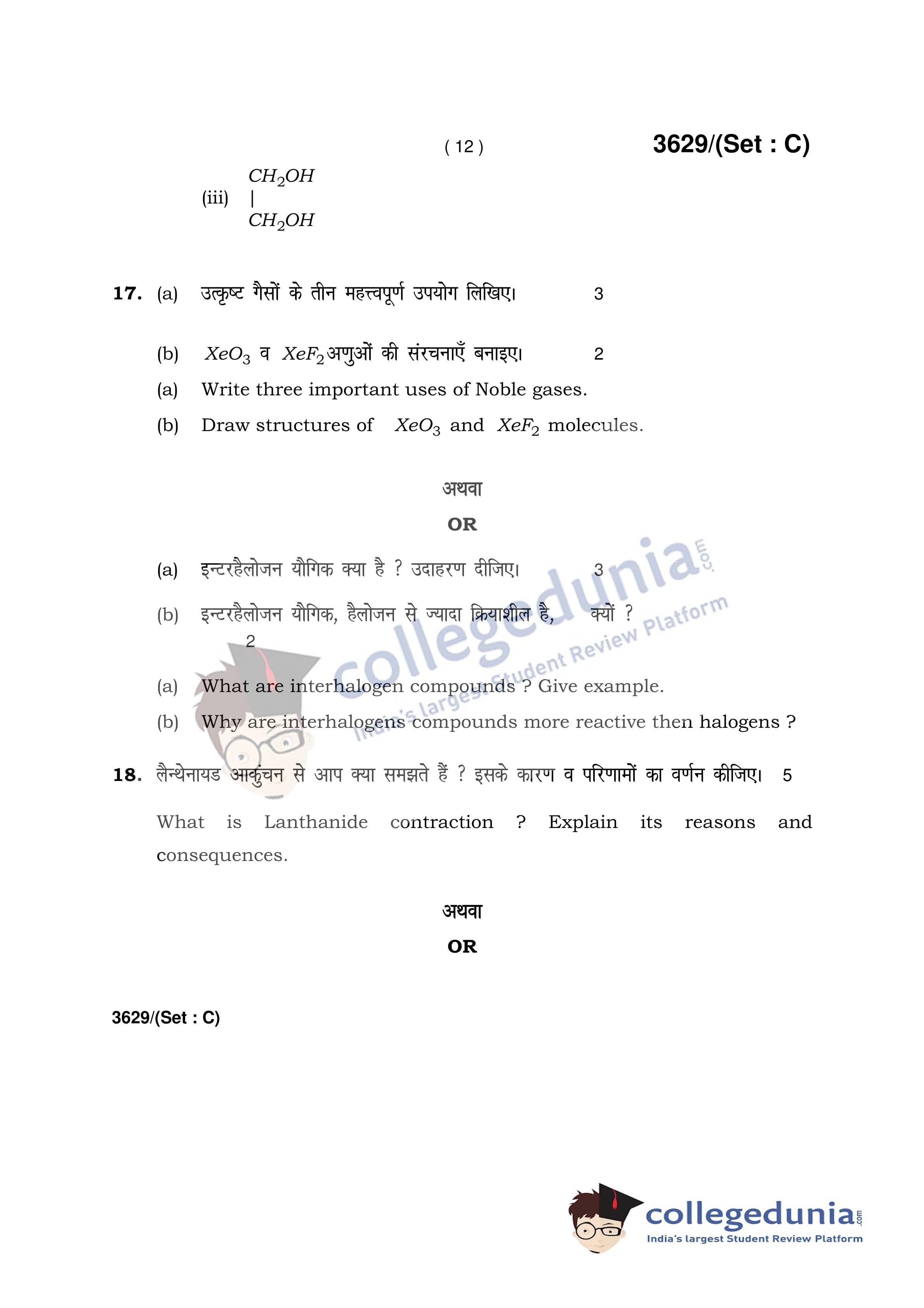HBSE Class 12 Chemistry Set C Question Paper 2018 with Answer Key (March 26)