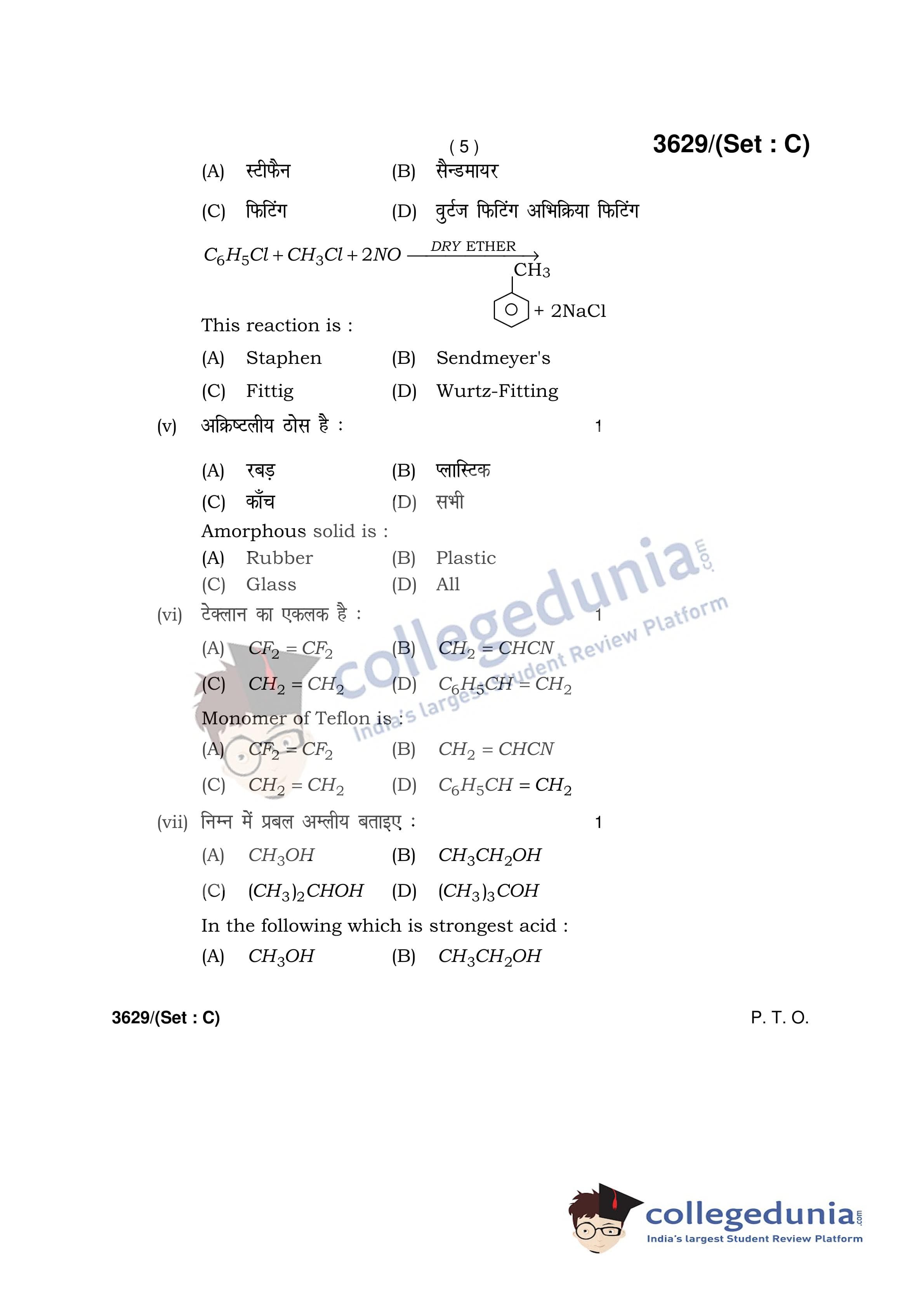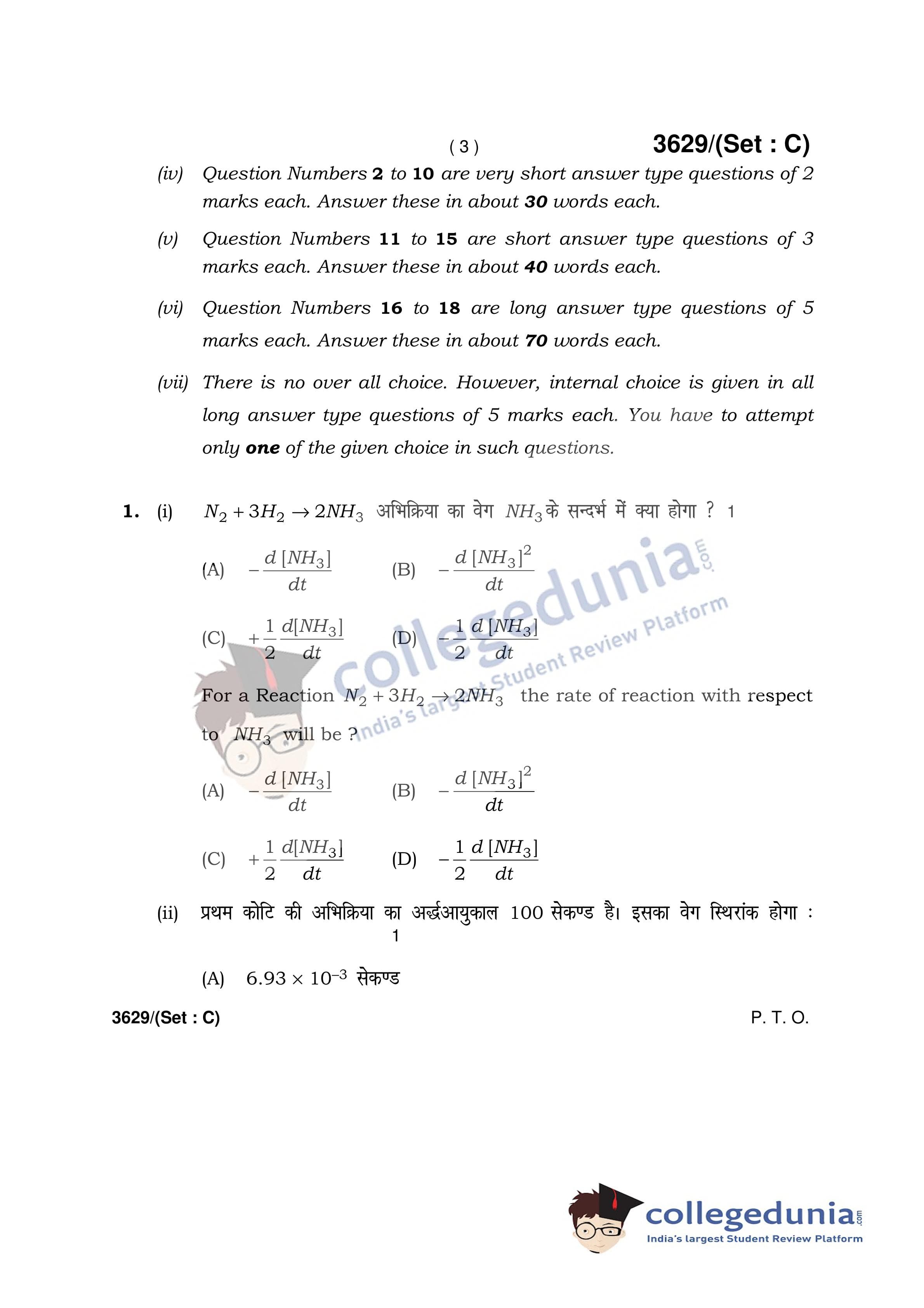 HBSE Class 12 Chemistry Question Paper 2018 with Answer Key Set C is available for download. The exam was conducted by the Board of School Education Haryana on March 26, 2018 in the Afternoon Session 12:30 PM to 3:30 PM. The medium of paper was English and Hindi. The question paper comprised a total of 18 questions.