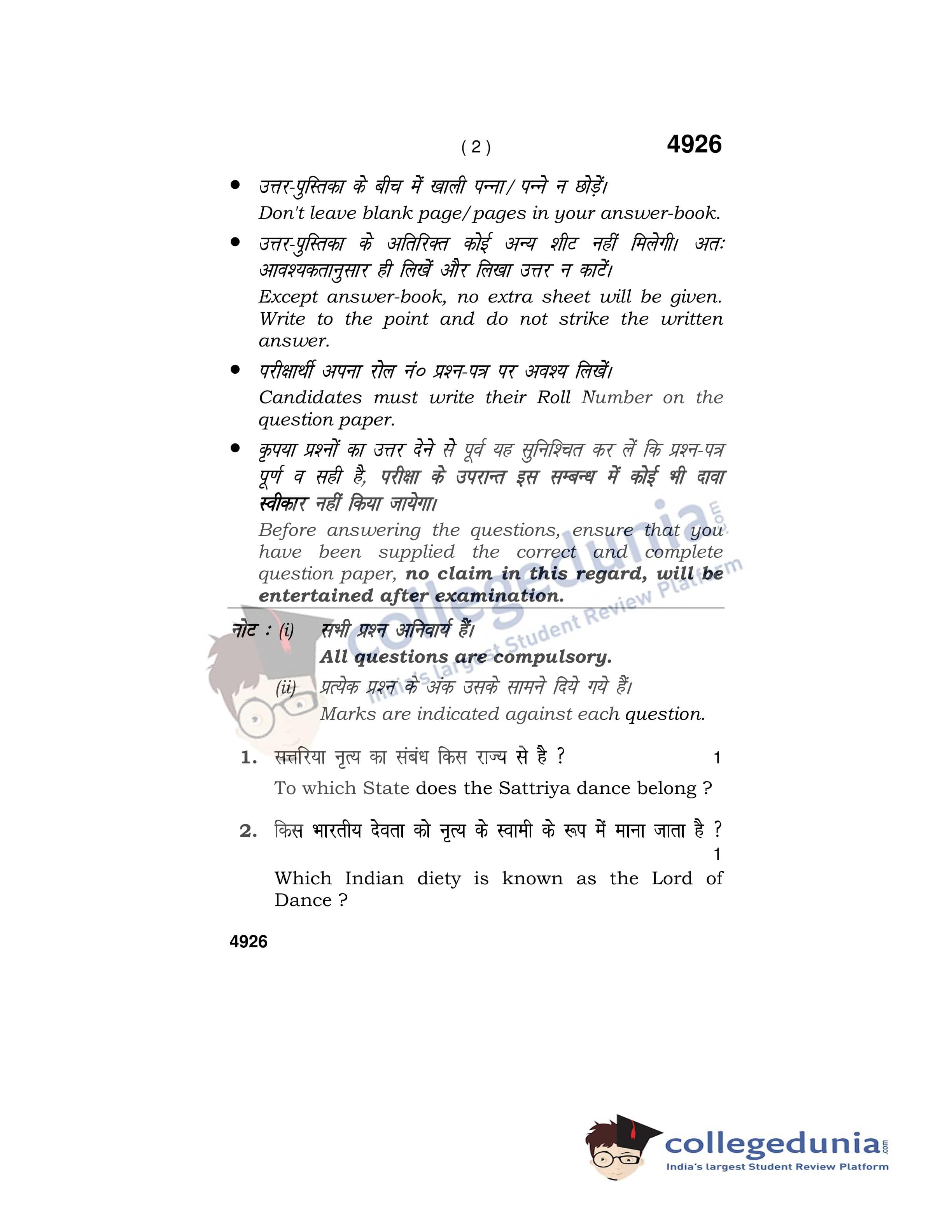 HBSE Class 12 Dance Kathak Question Paper 2020 with Answer Key (March 17)