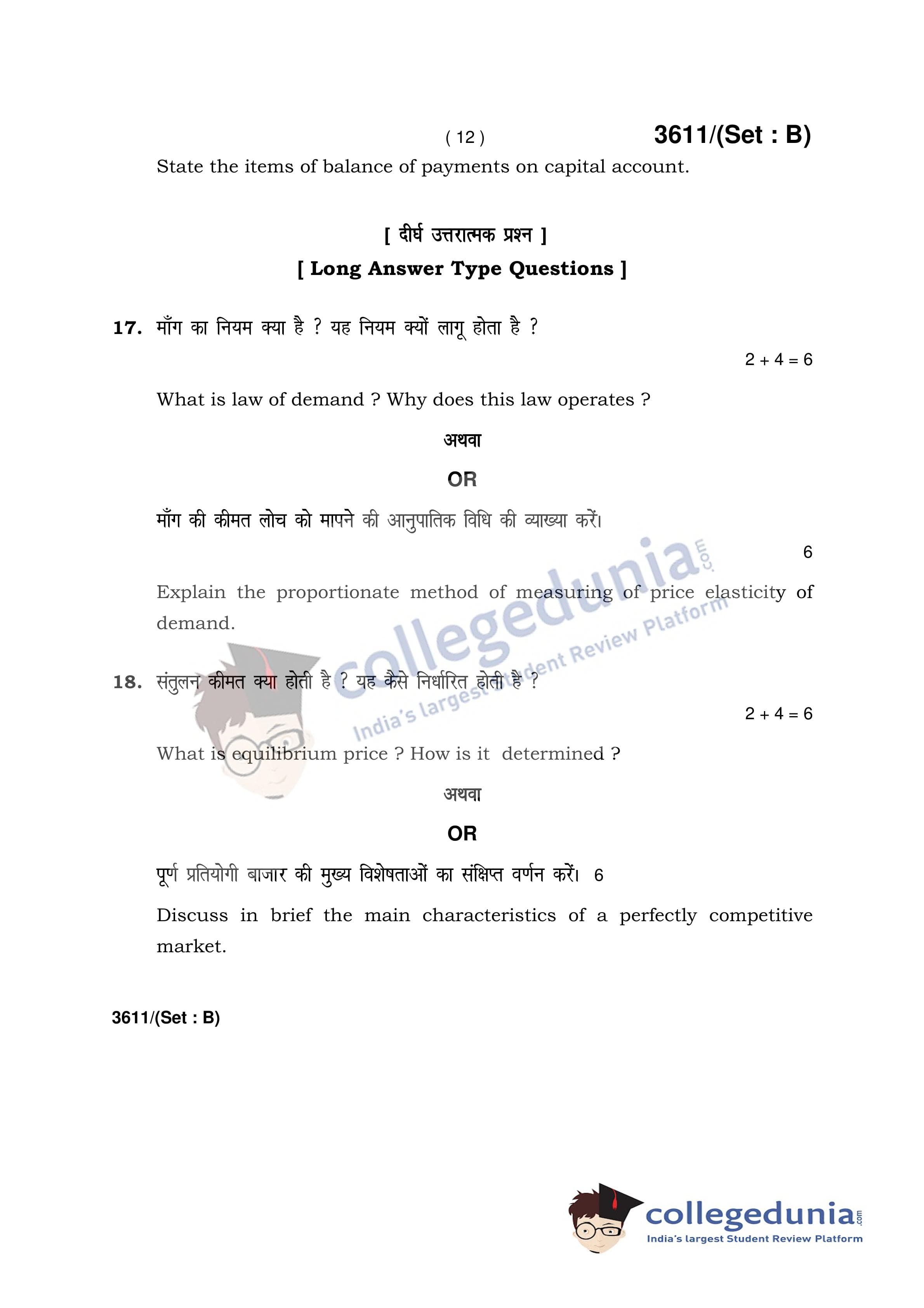HBSE Class 12 Economics Set B Question Paper 2018 with Answer Key (March 12)