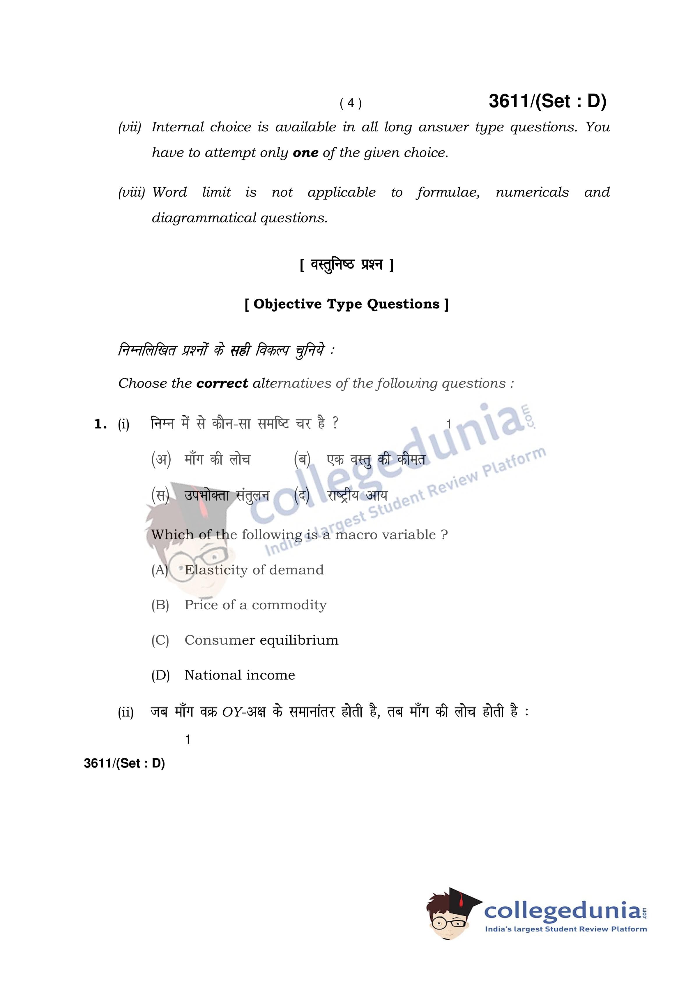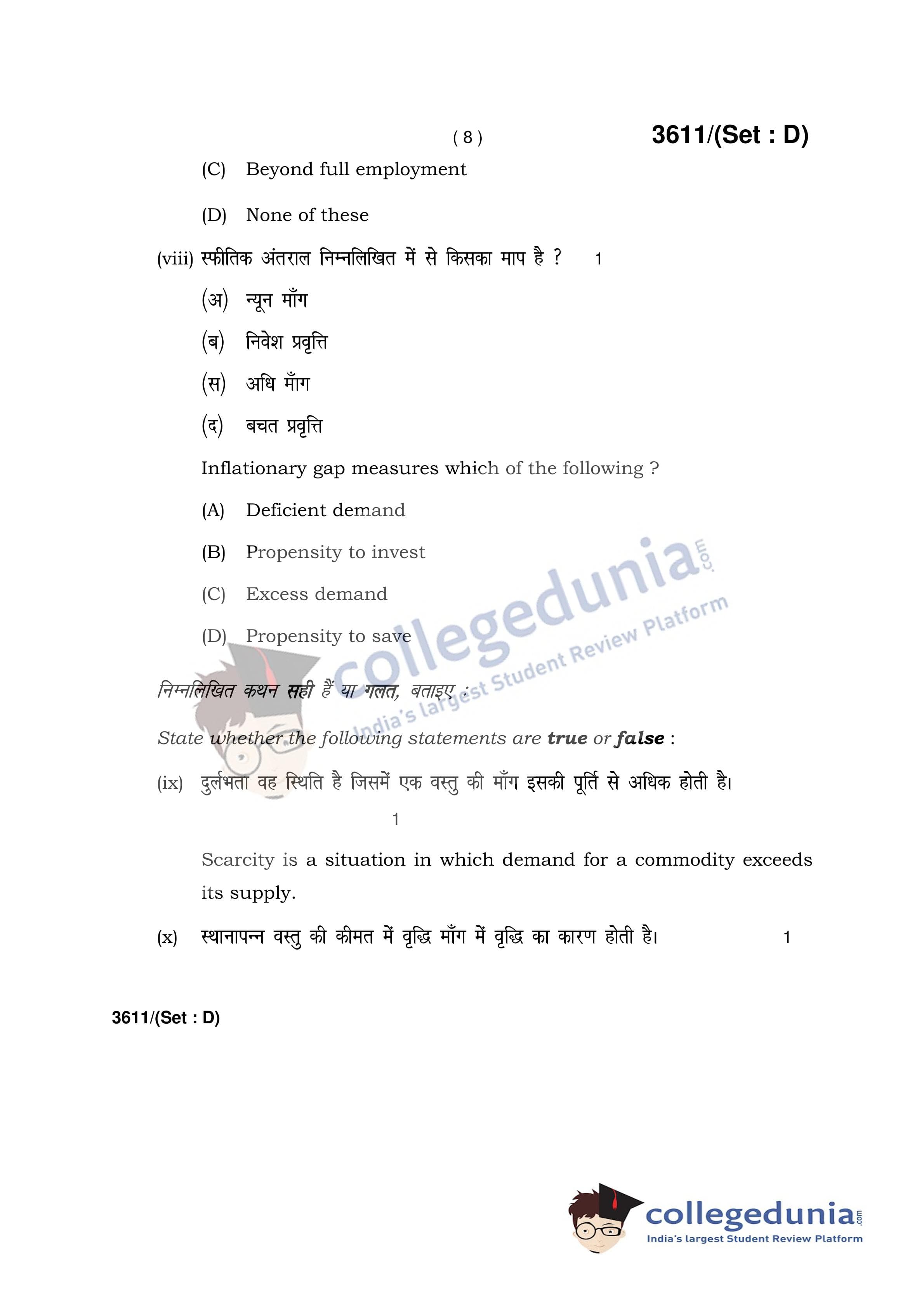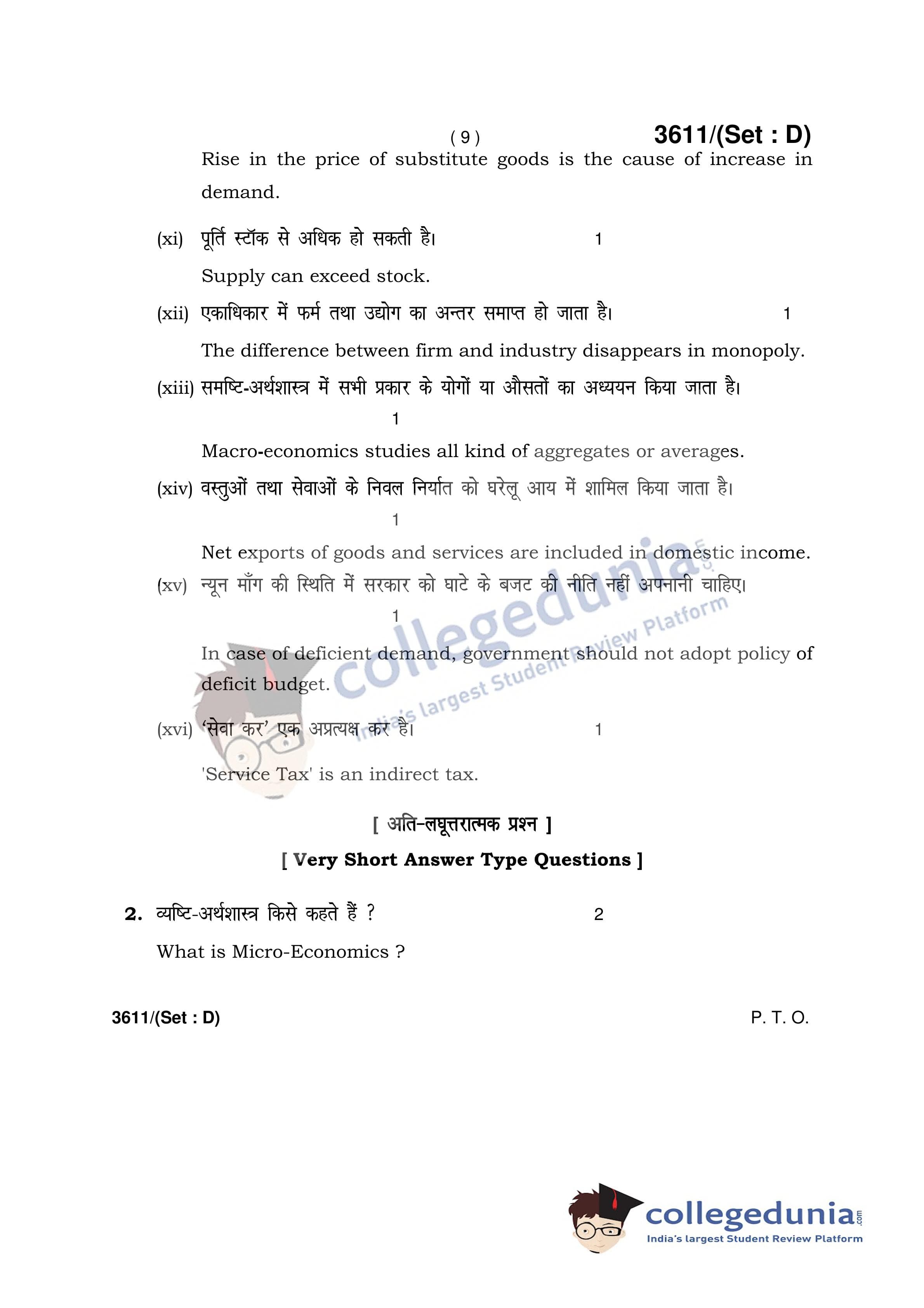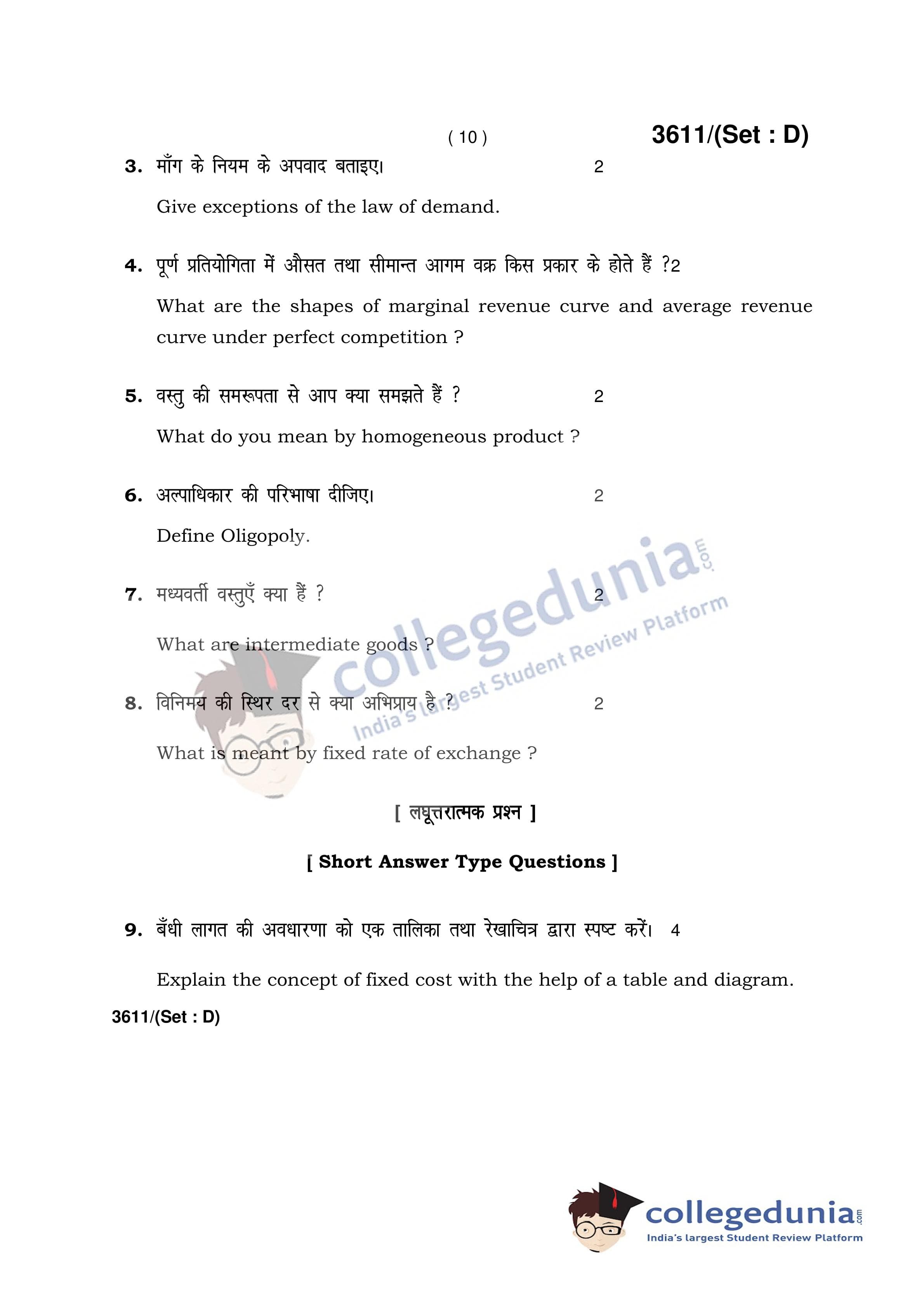 HBSE Class 12 Economics Set D Question Paper 2018 with Answer Key (March 12)