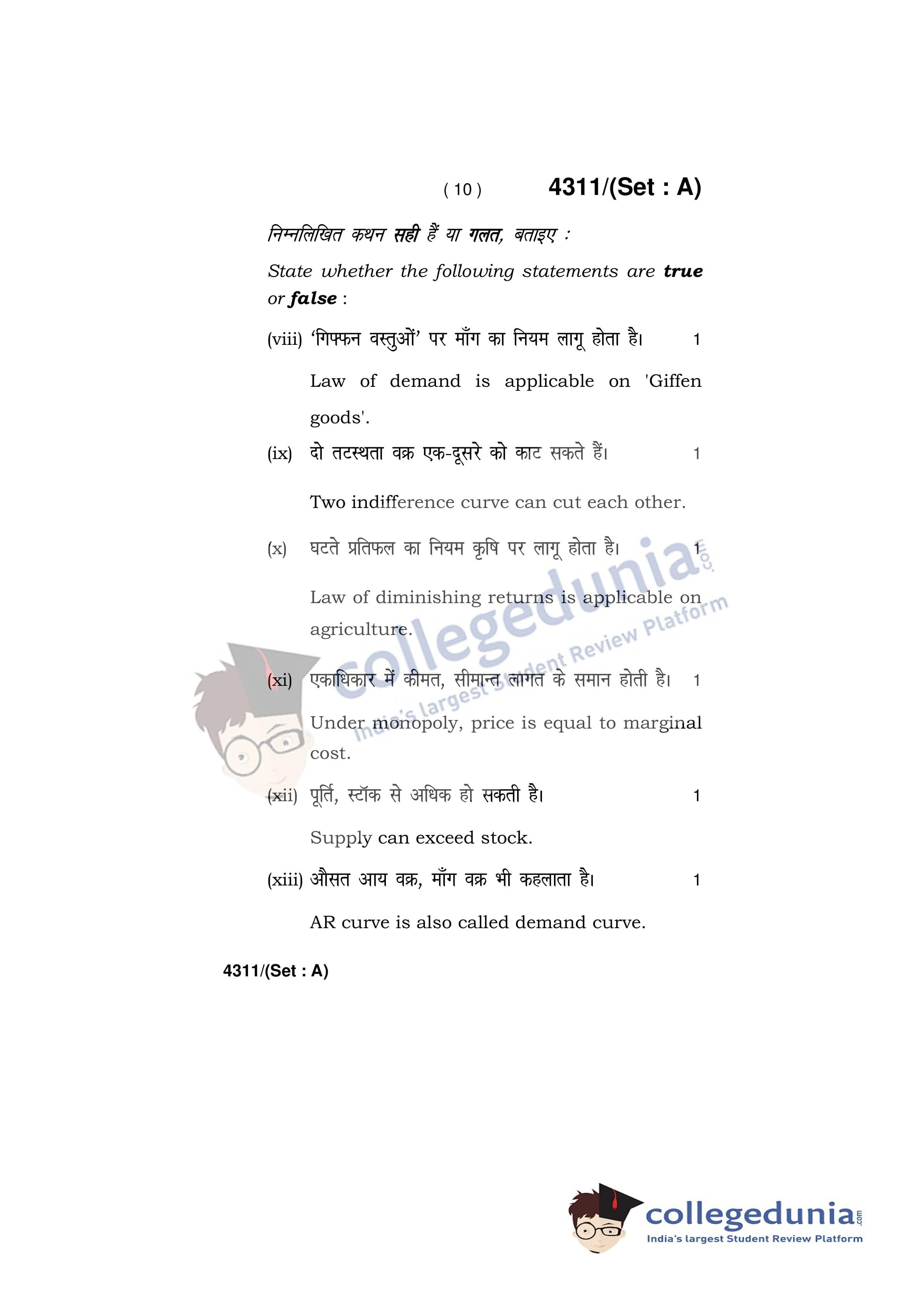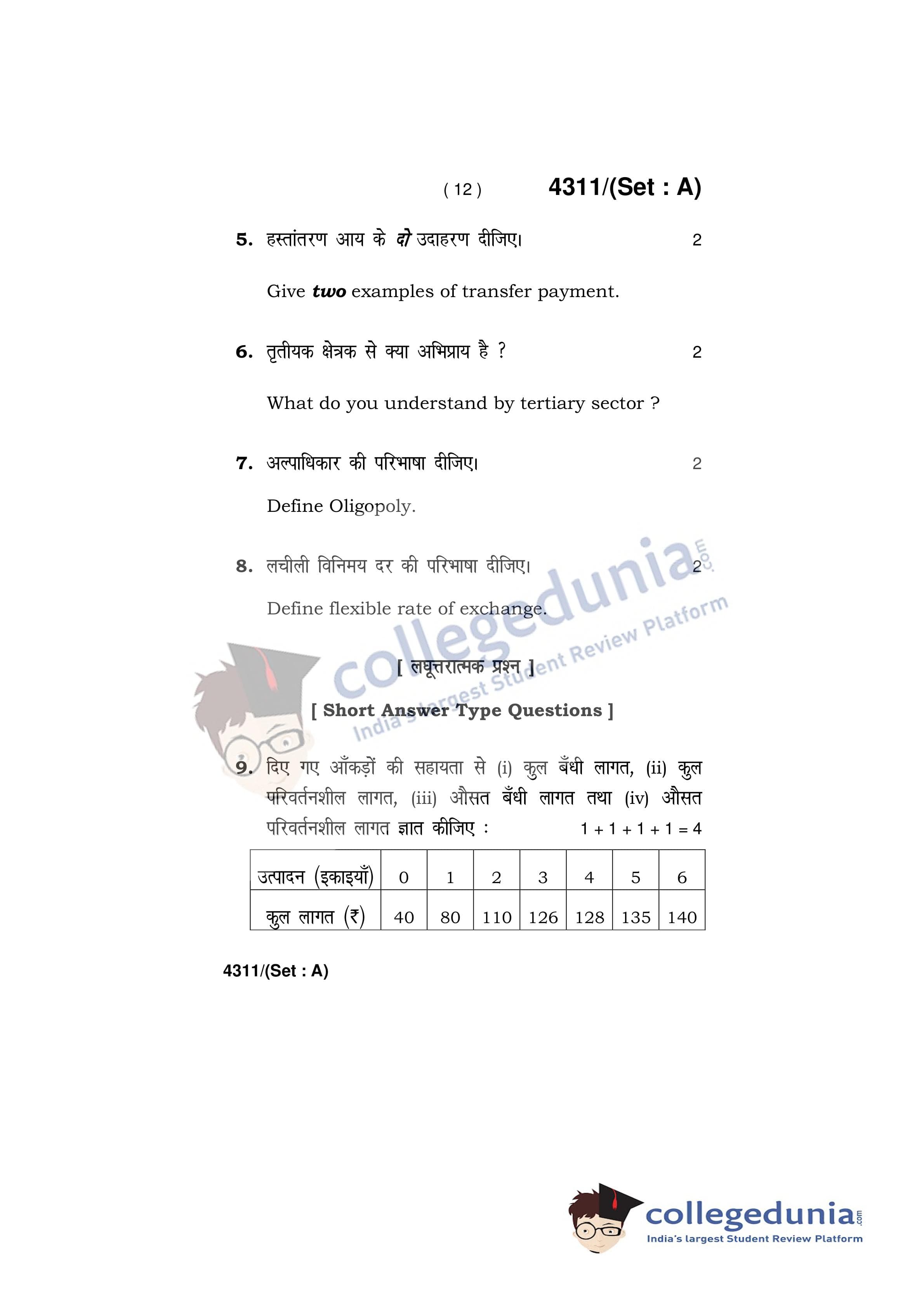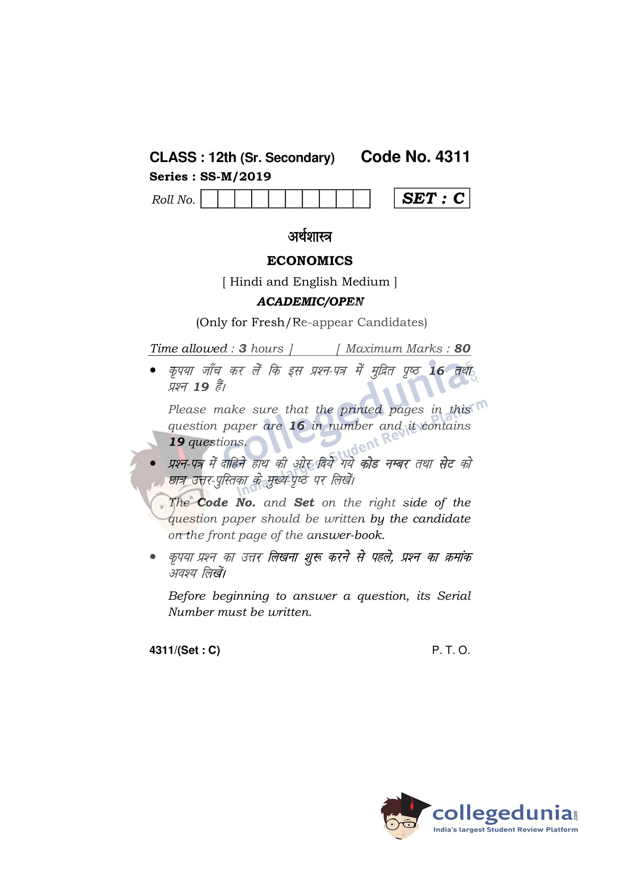 HBSE Class 12 Economics Question Paper 2019 with Answer Key (March 12)