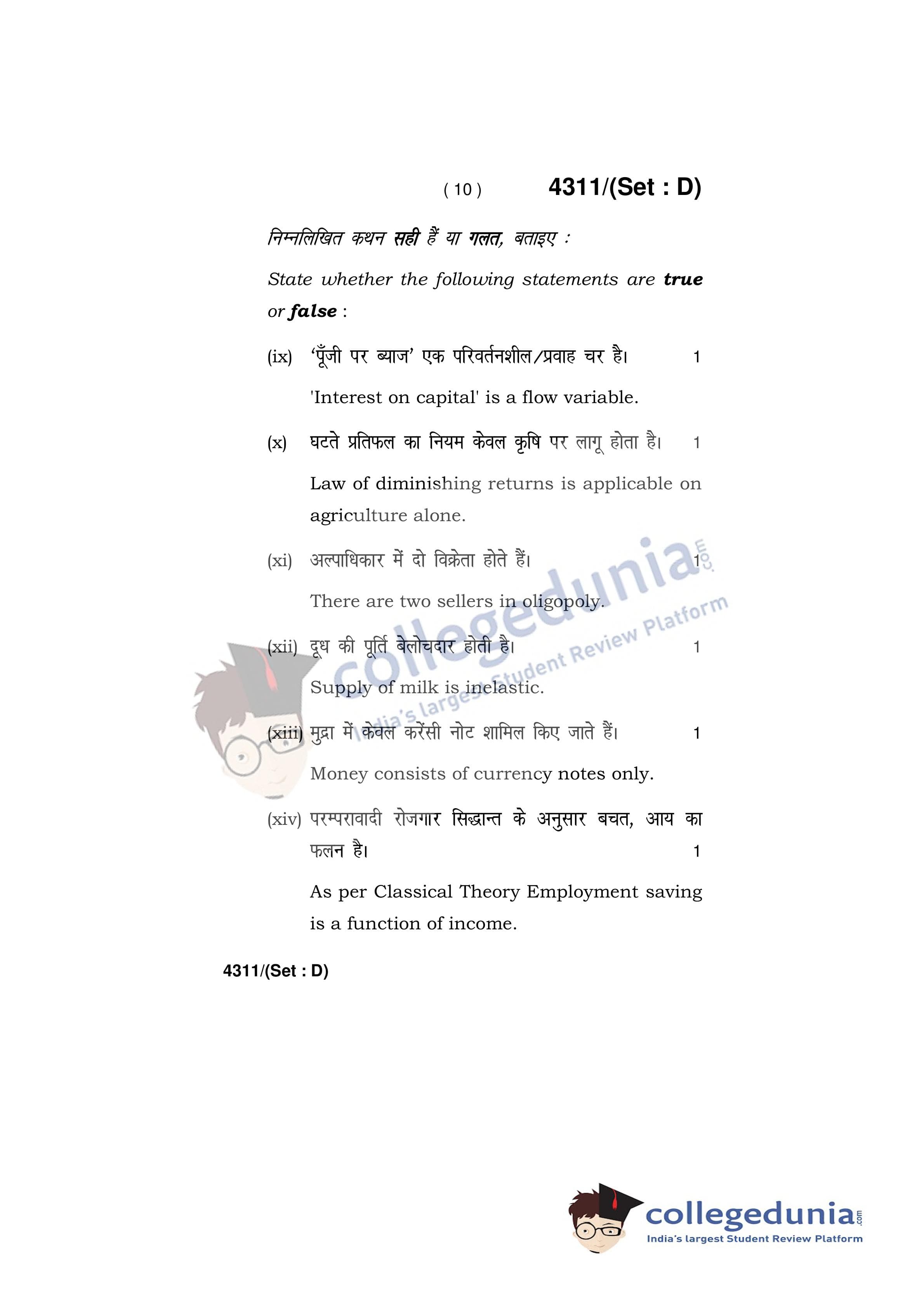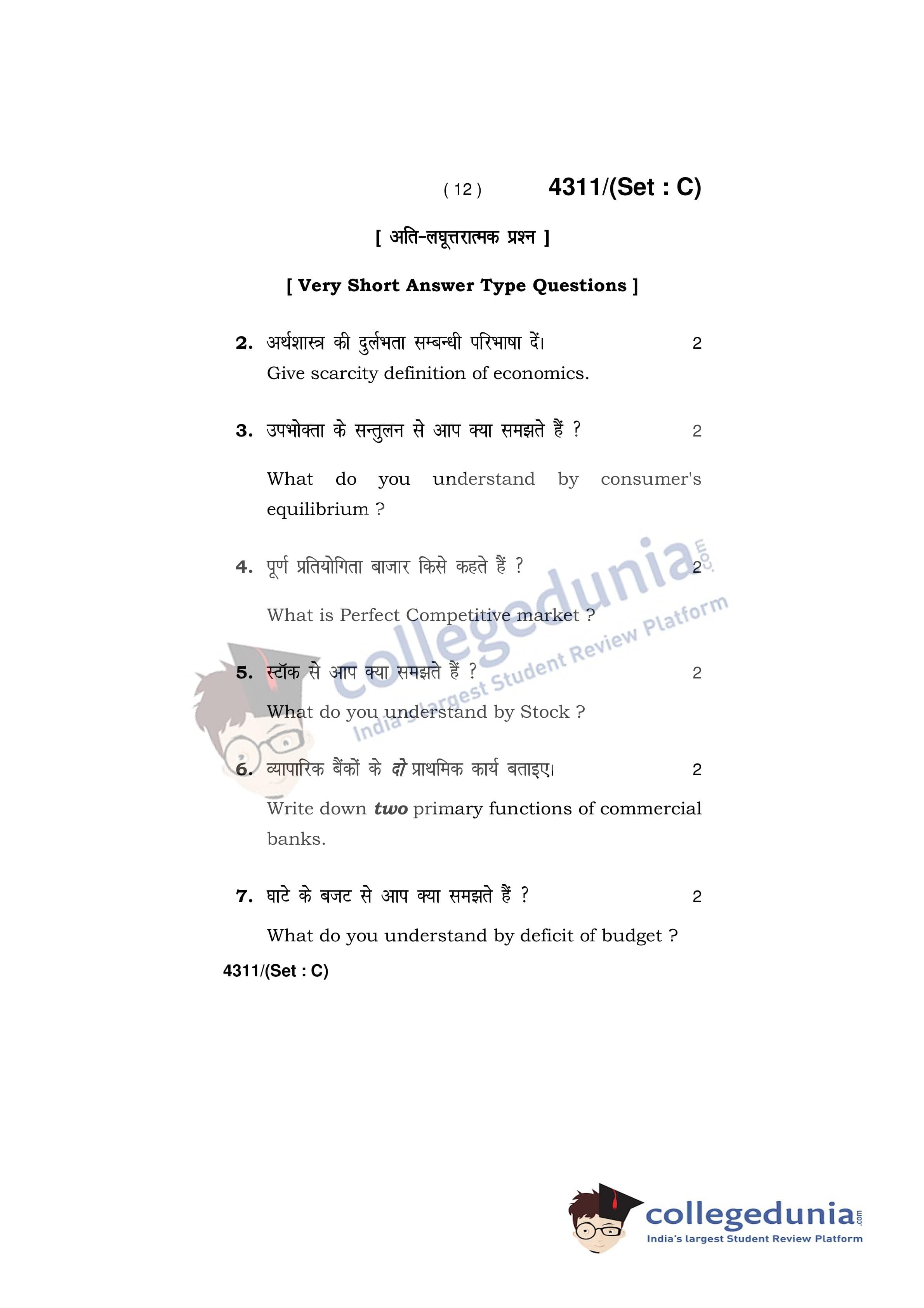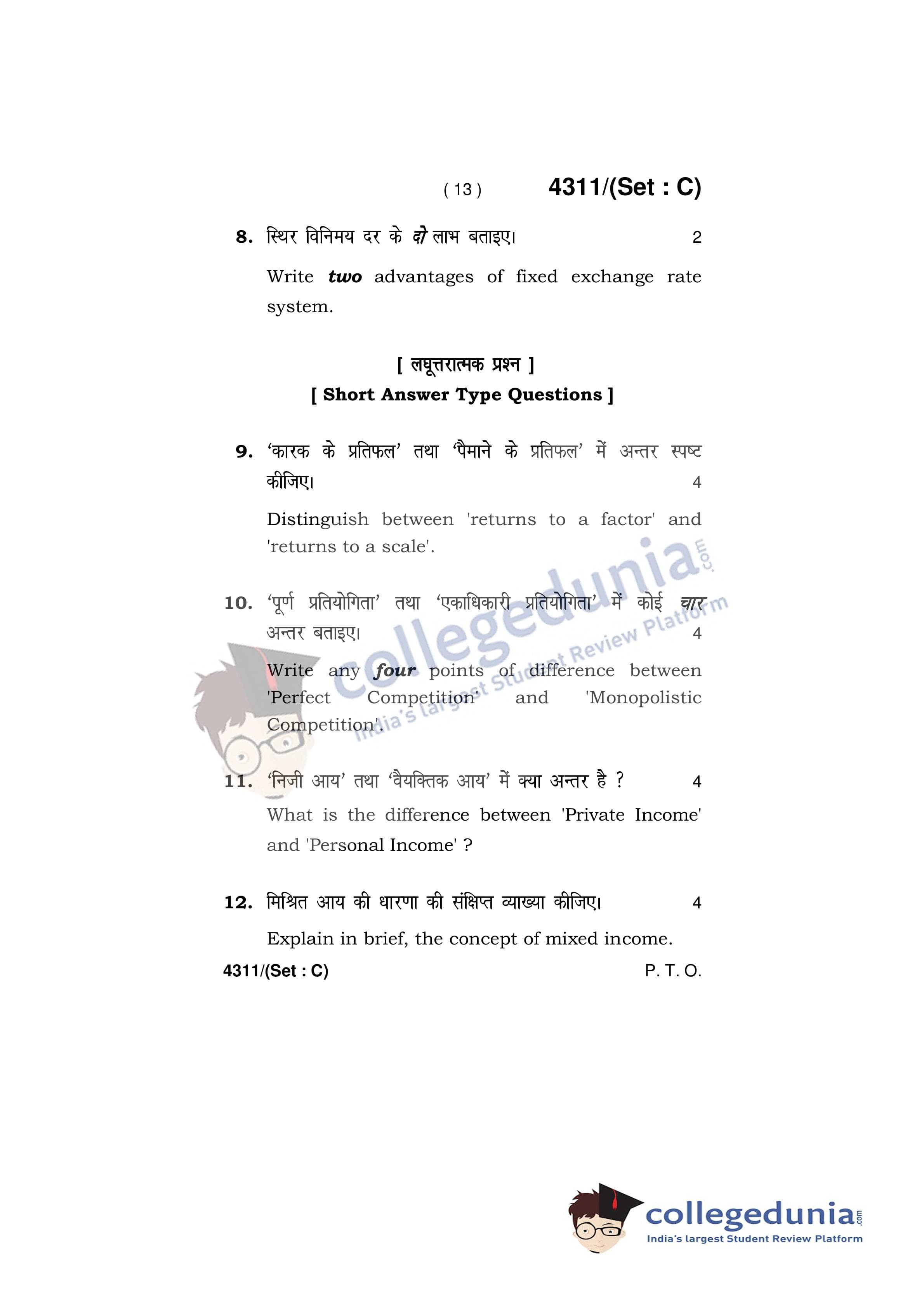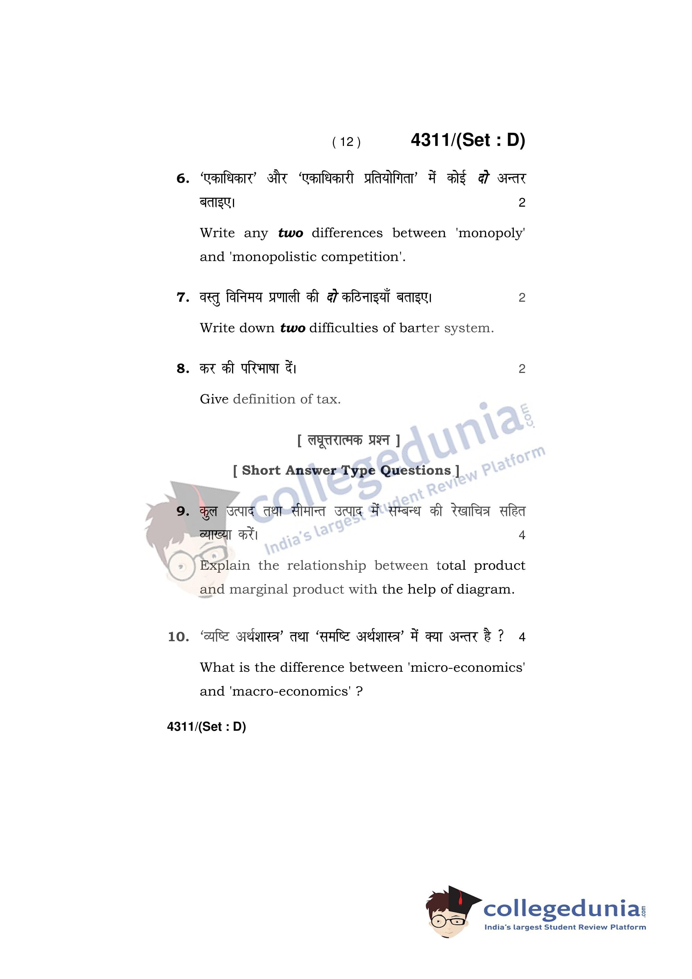 HBSE Class 12 Economics Question Paper 2019 with Answer Key (March 12)