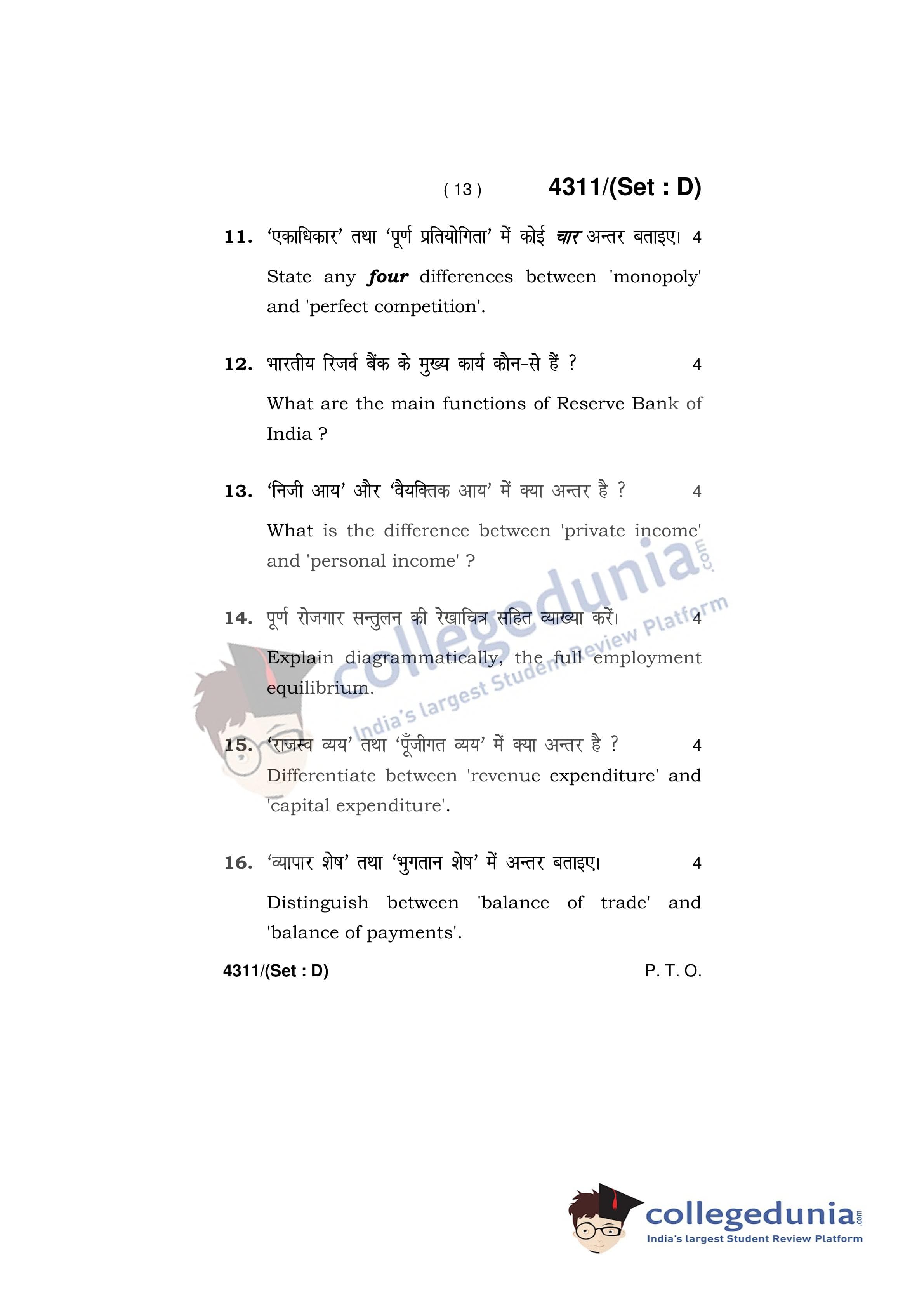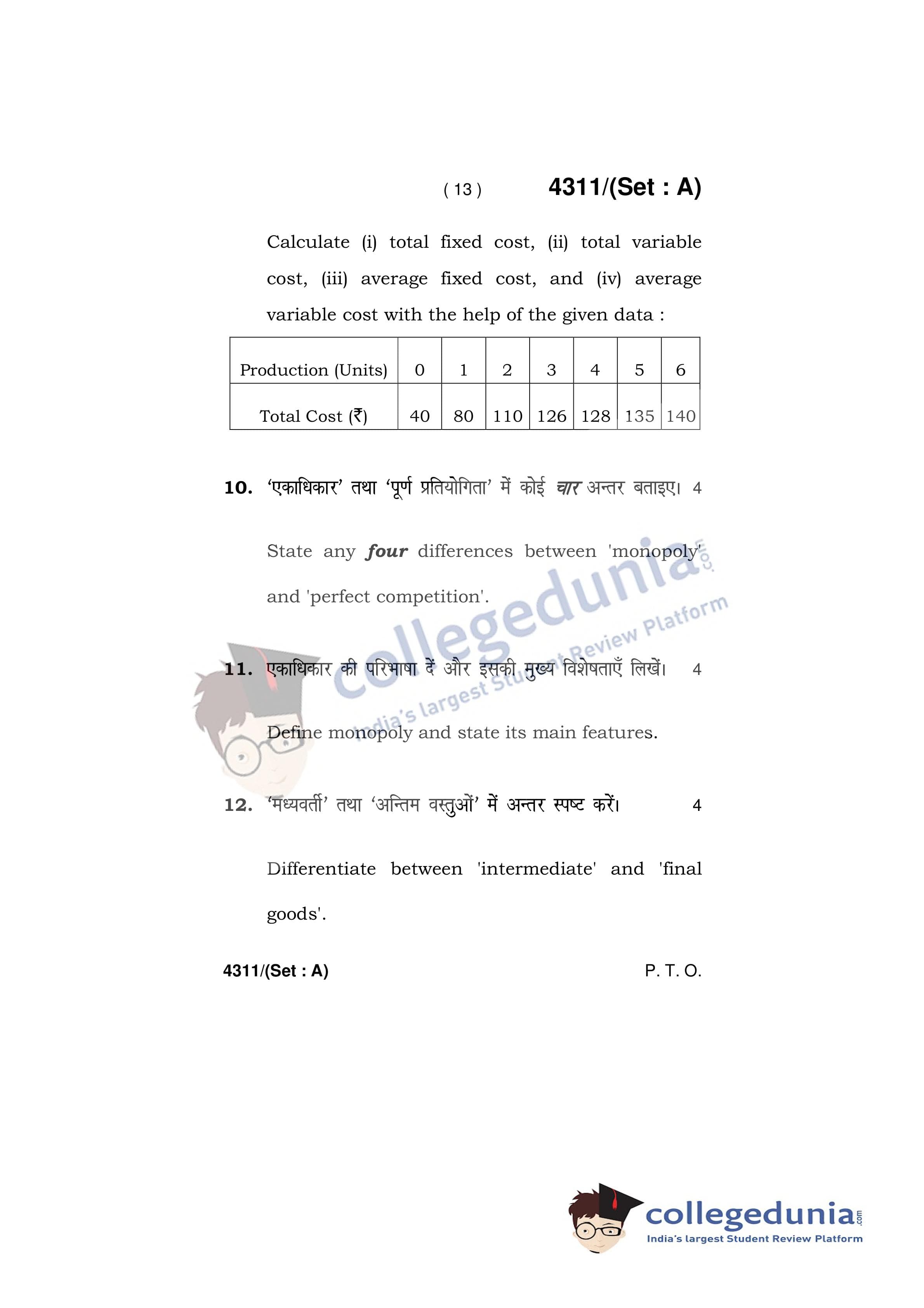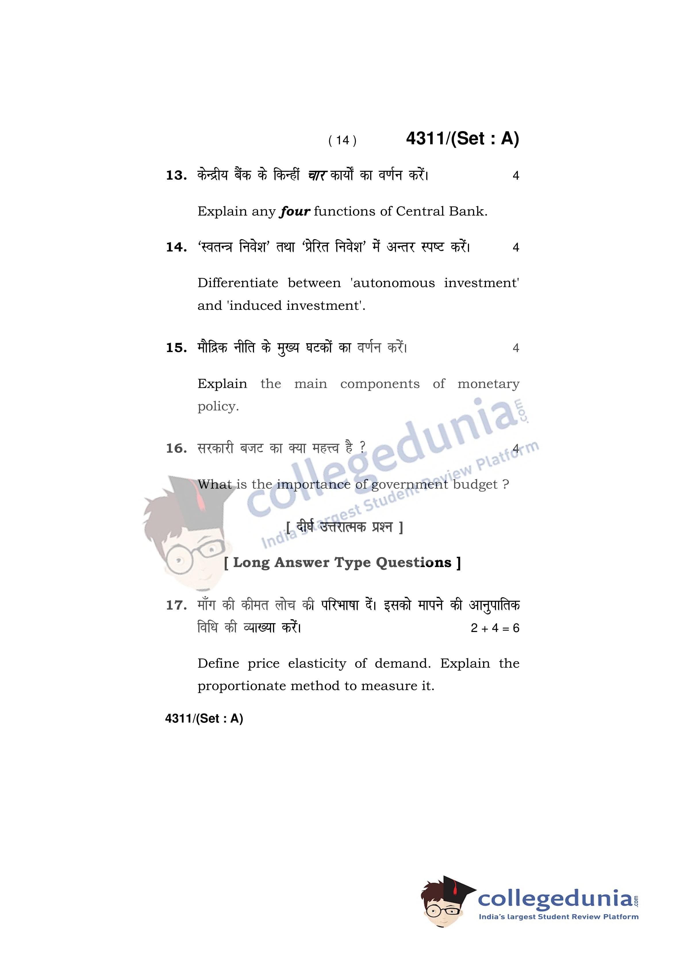 HBSE Class 12 Economics Question Paper 2019 with Answer Key is available for download. The exam was conducted by the Board of School Education Haryana on March 12, 2019 in the Afternoon Session 12:30 PM to 3:30 PM. The medium of paper was English and Hindi. The question paper comprised a total of 19 questions.