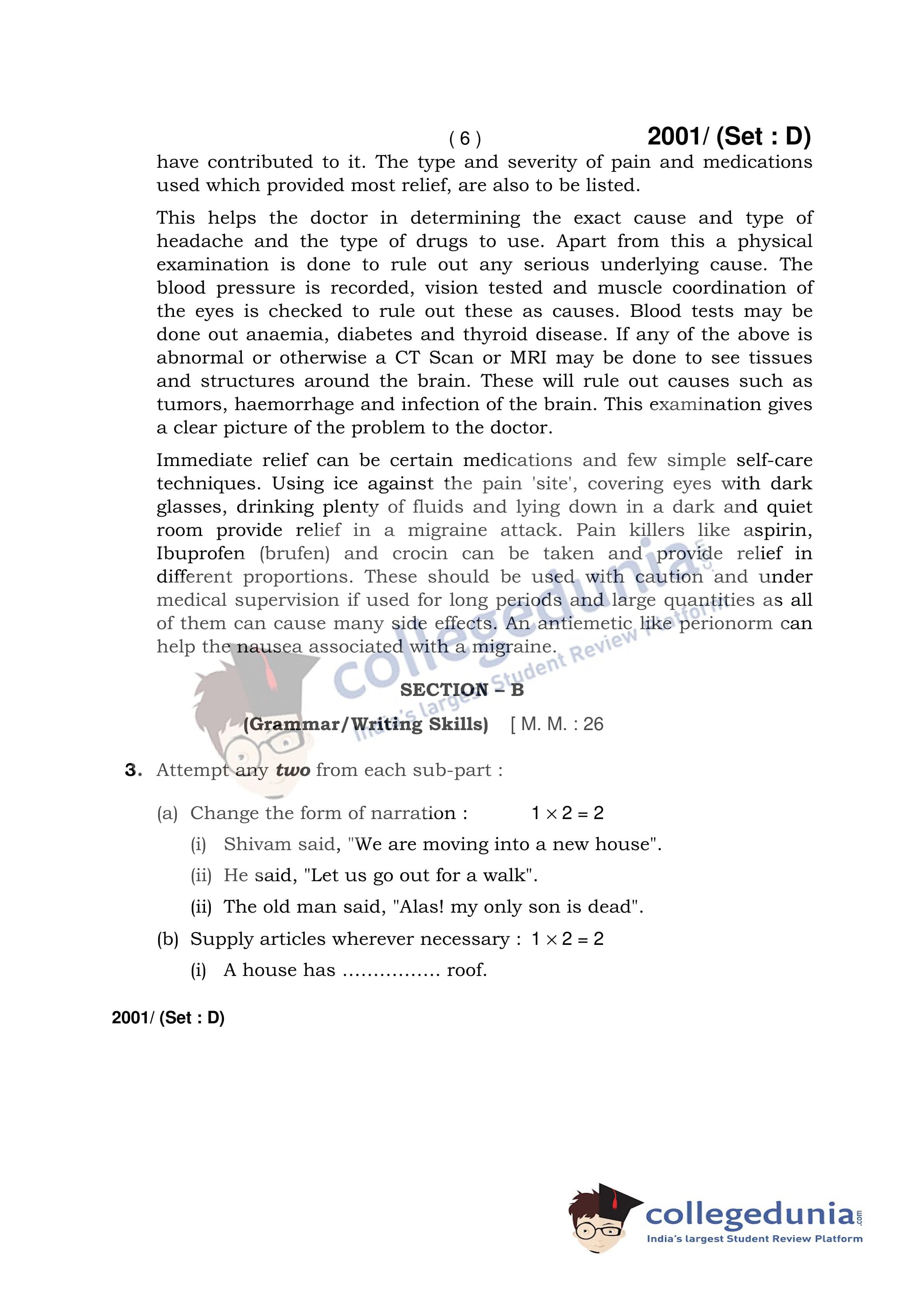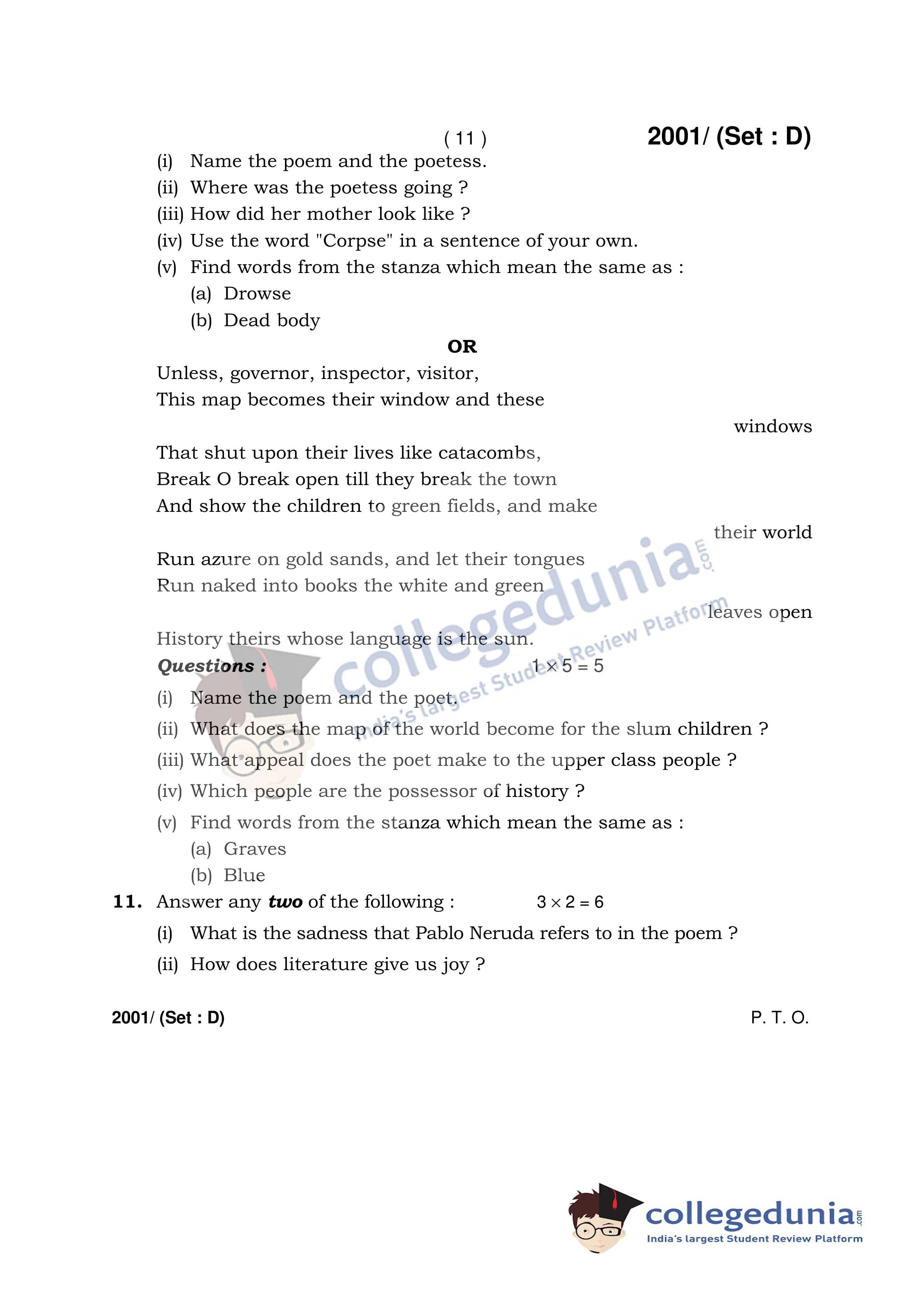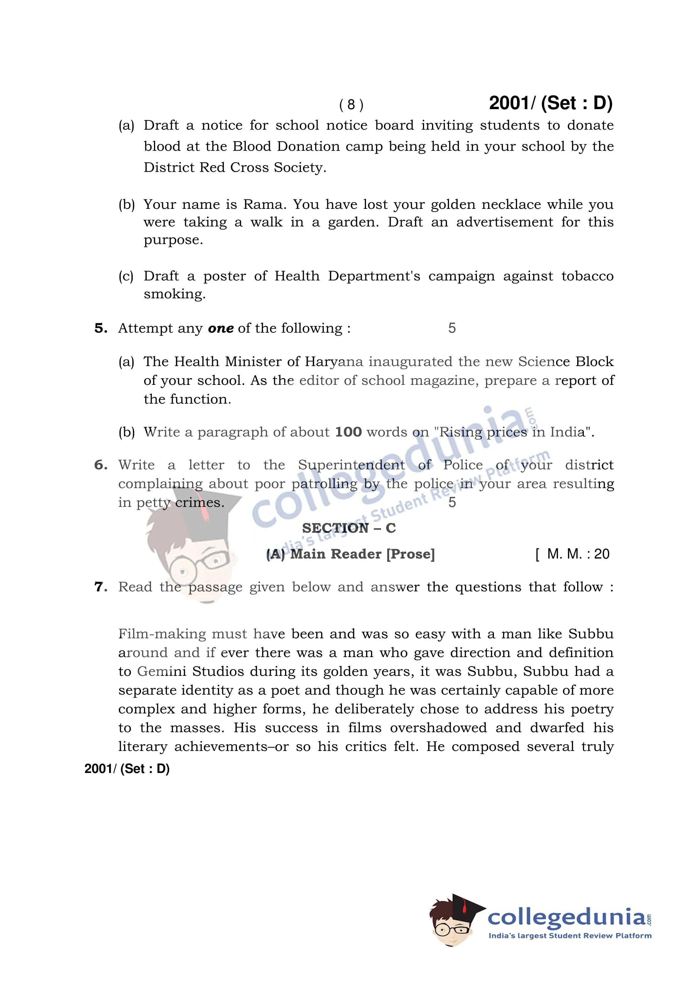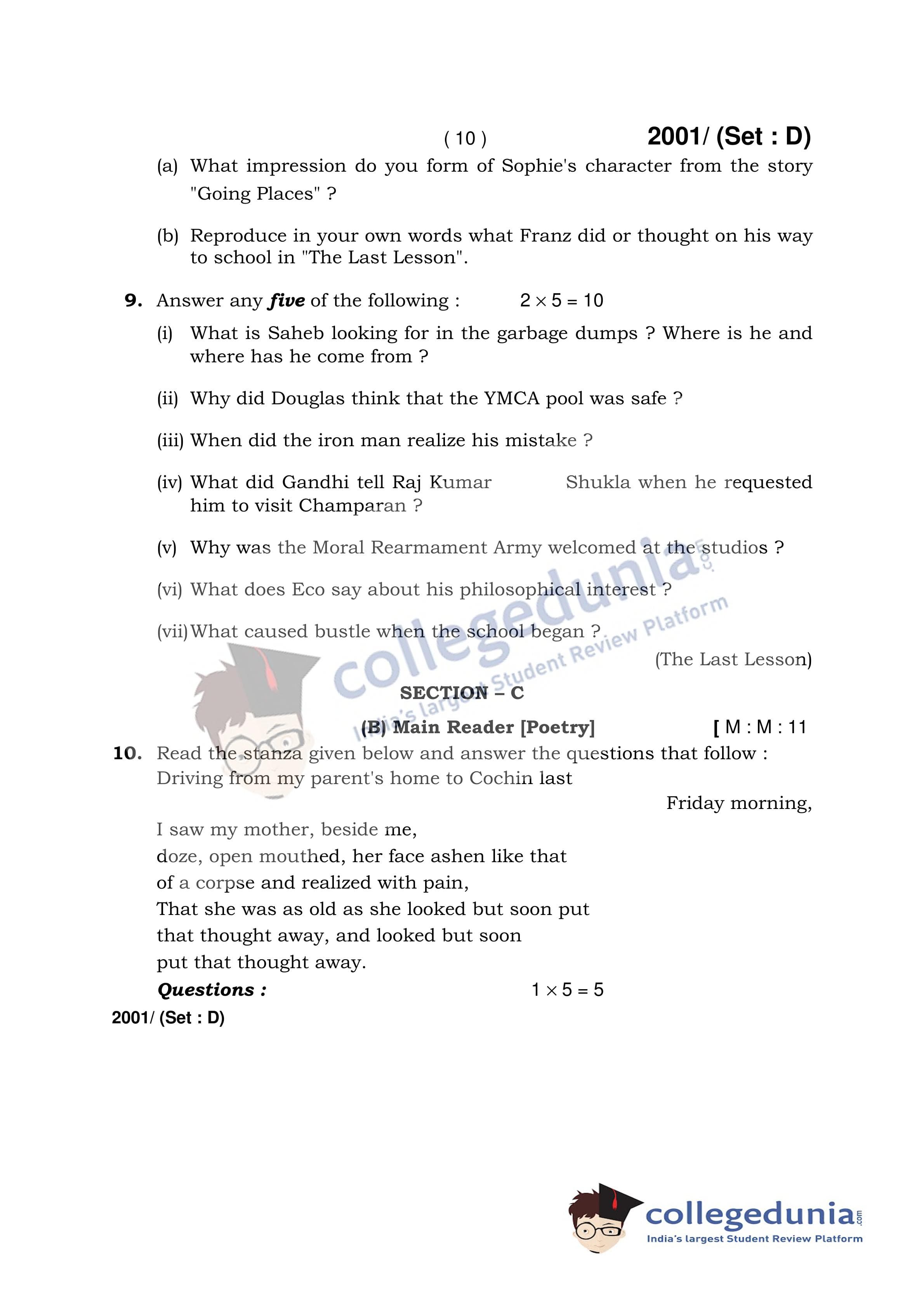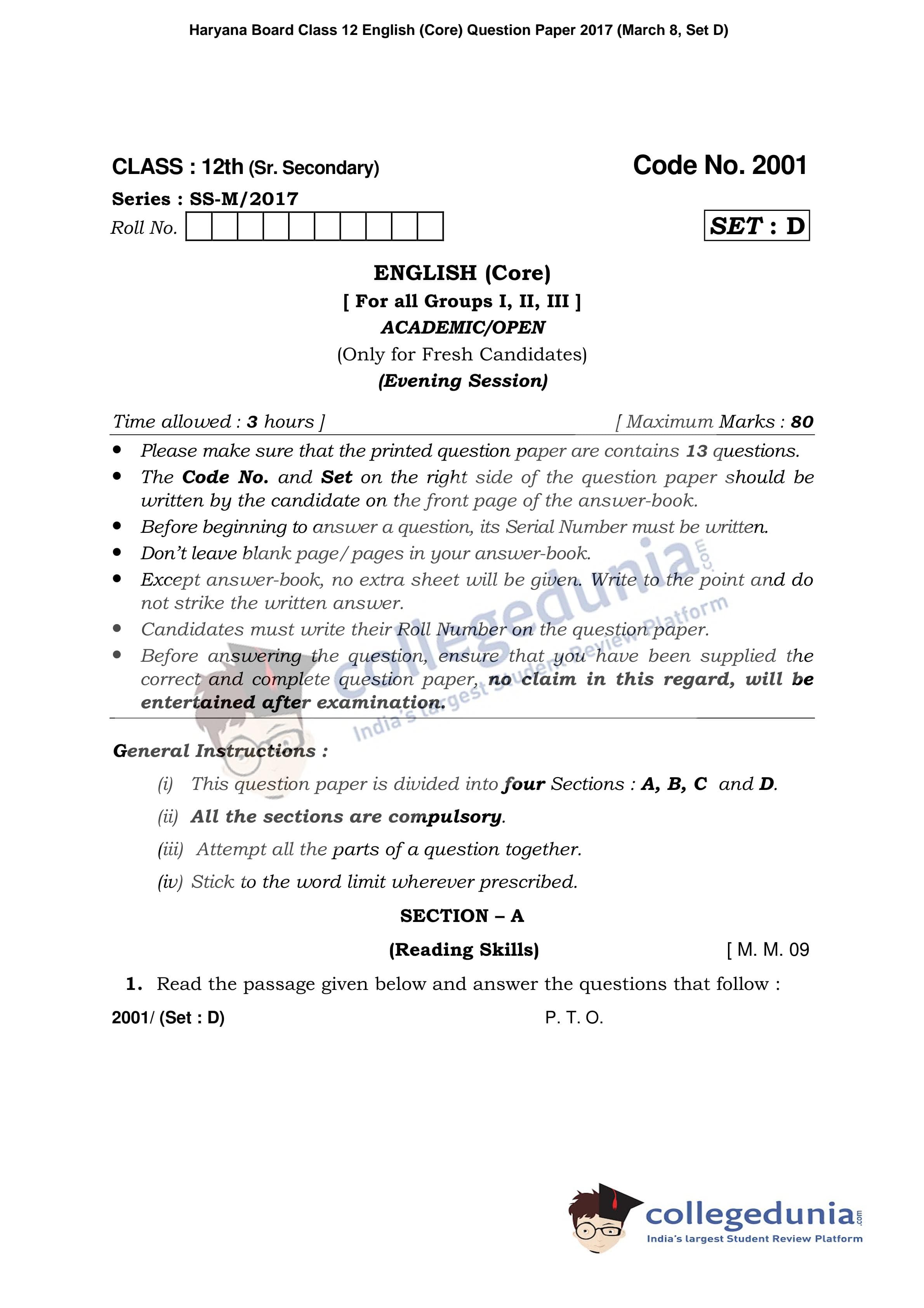 HBSE Class 12 English (Core) Set D Question Paper 2017 with Answer Key (March 8)