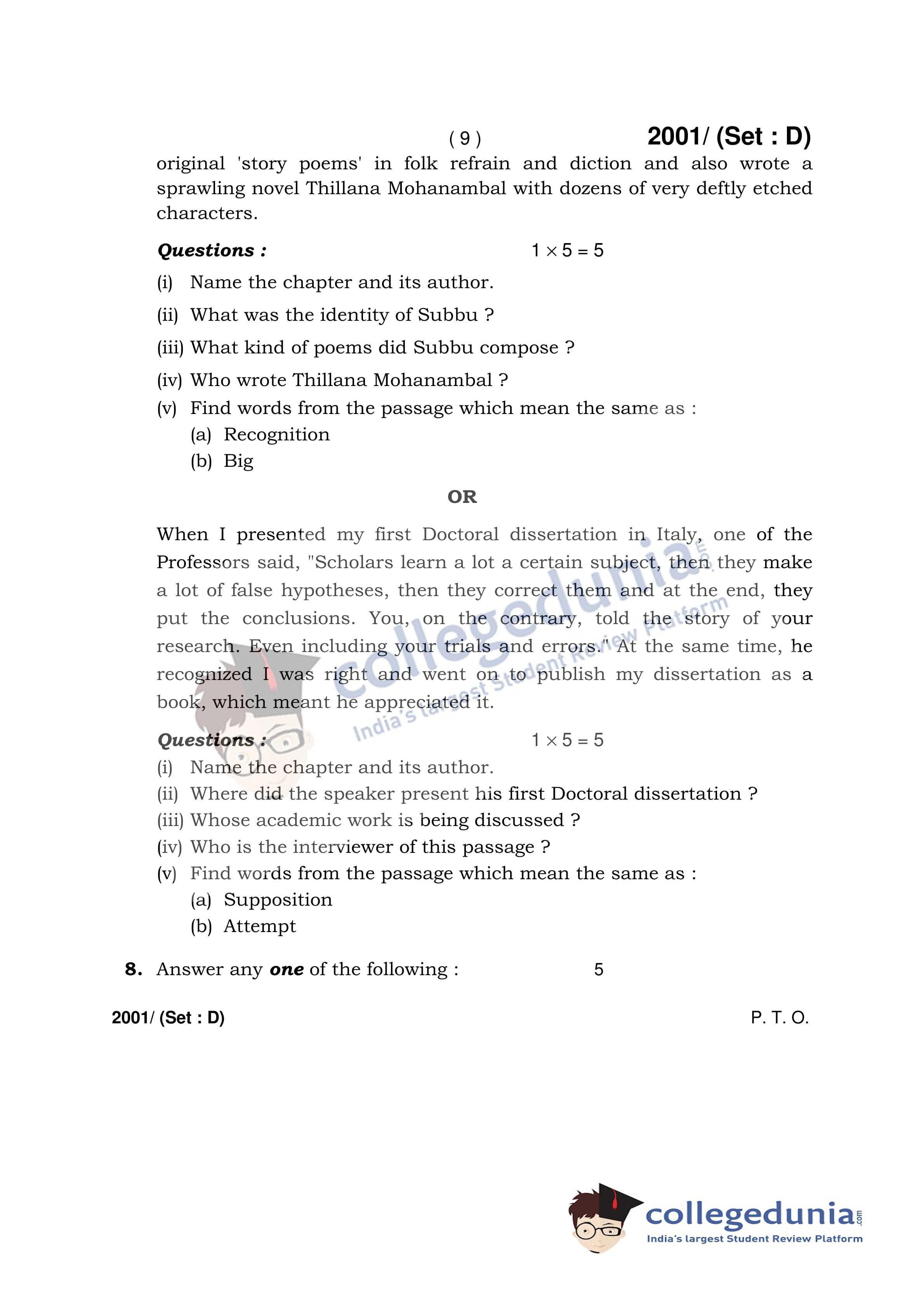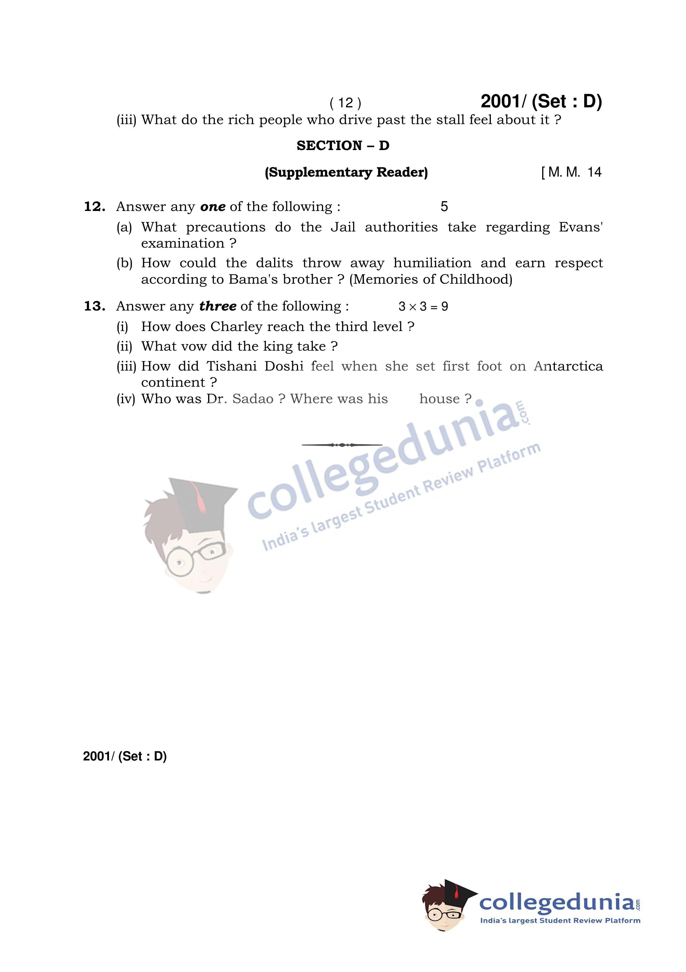 HBSE Class 12 English (Core) Question Paper 2017 with Answer Key Set D is available for download. The exam was conducted by the Board of School Education Haryana on March 8, 2017 in the Afternoon Session 2 PM to 4:30 PM. The medium of paper was English. The question paper comprised a total of 13 questions.